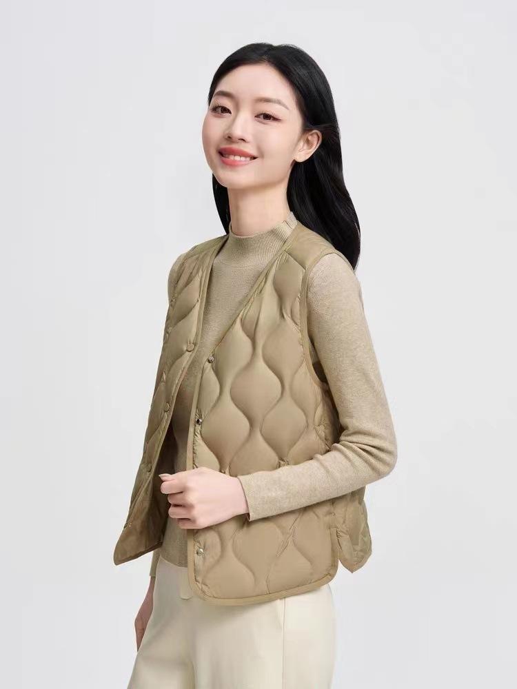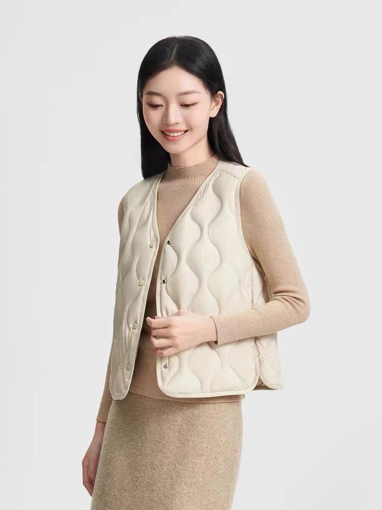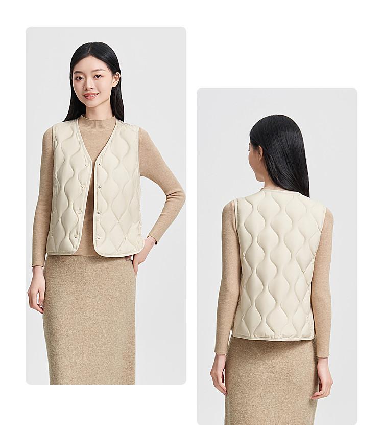 Chaleco de Plumas Invierno 2024 Nuevo Estilo Corto 90 Plumón de Pato Blanco Chaleco Ligero de Cuello en V para Mujer Forro de Chaleco de Plumas