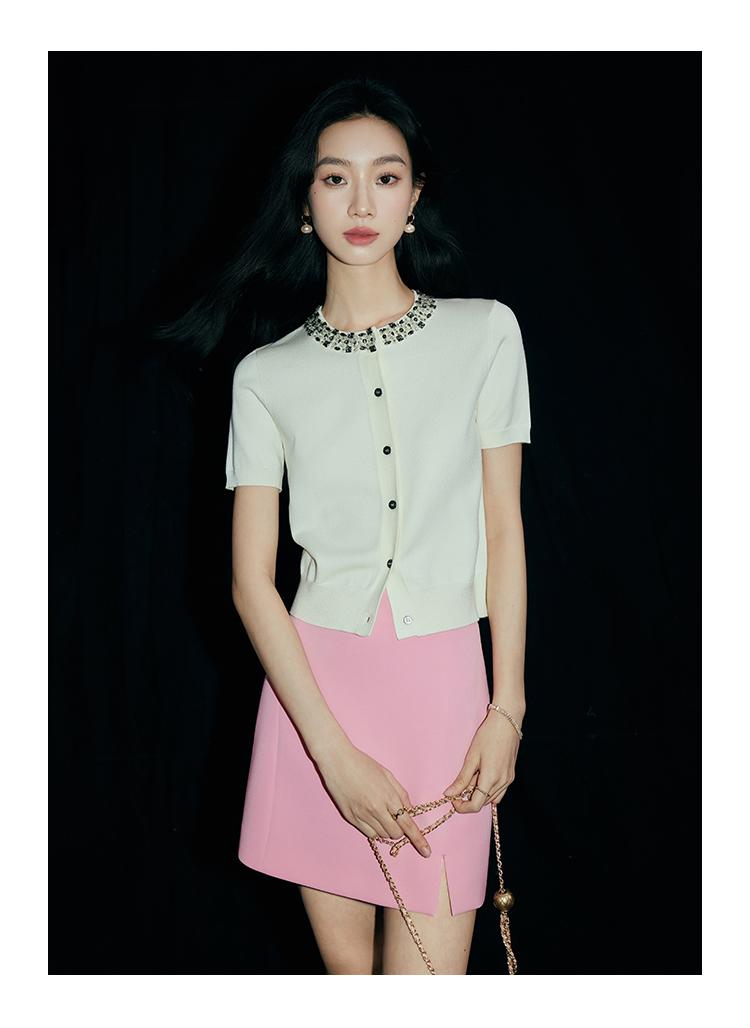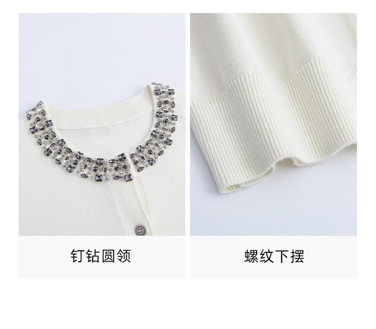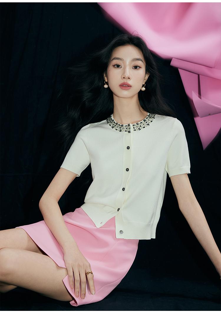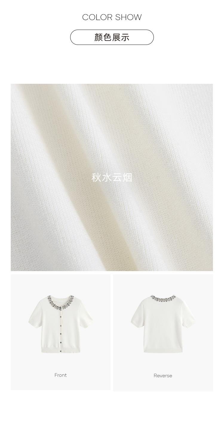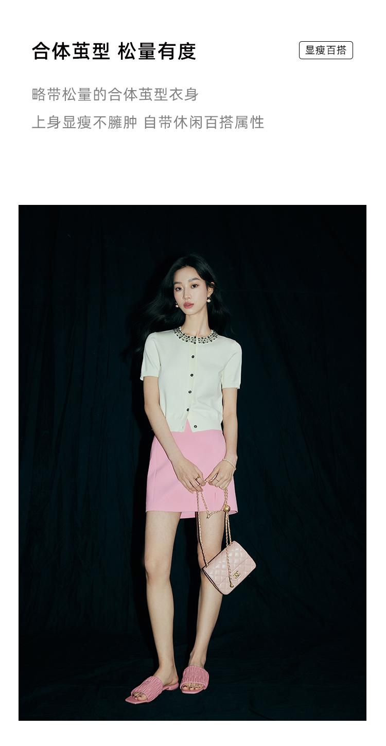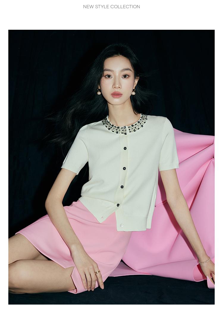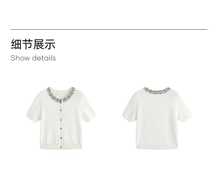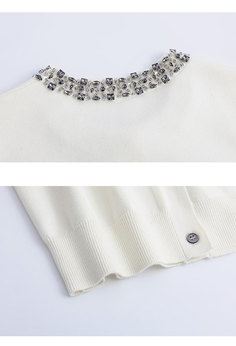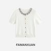 [Serie Diamante Estrella] Cárdigan de Punto con Cuentas Chanel Blancas para Mujer 2025 Nuevo Top de Manga Corta de Moda Francesa