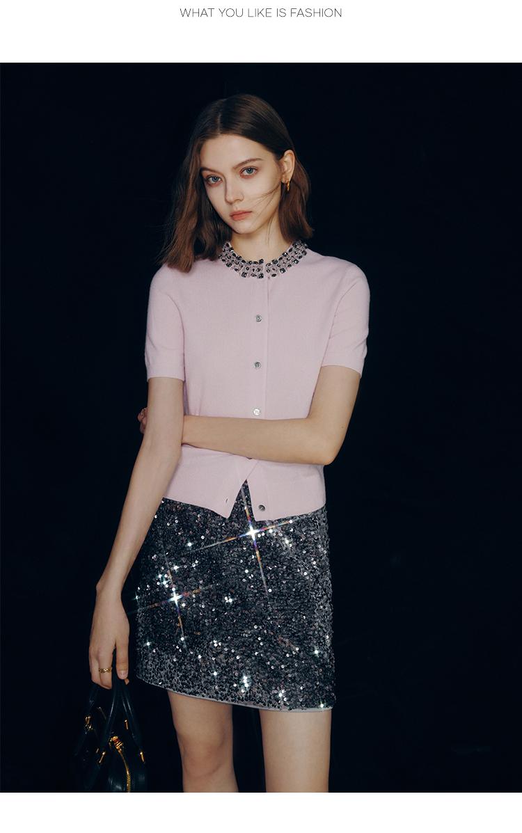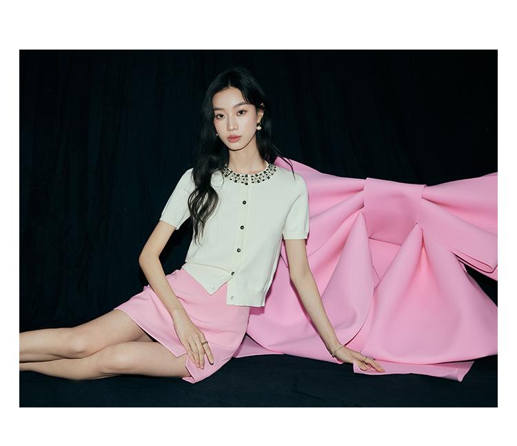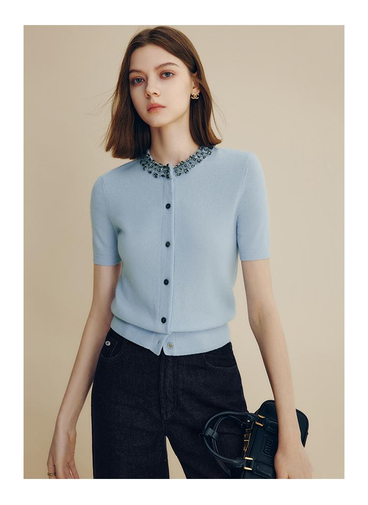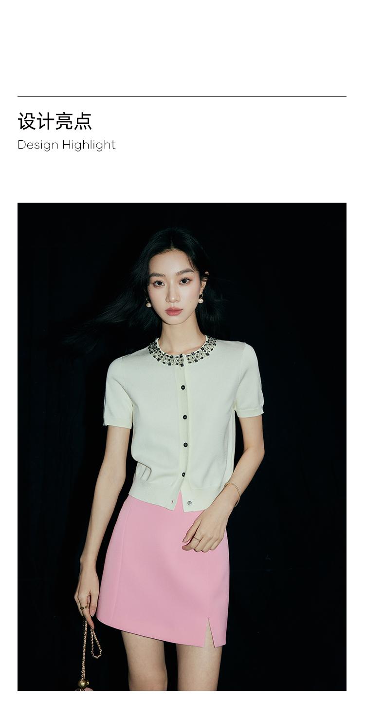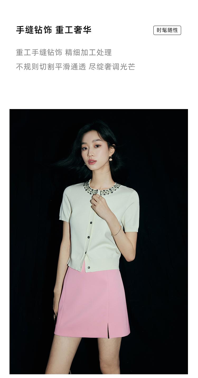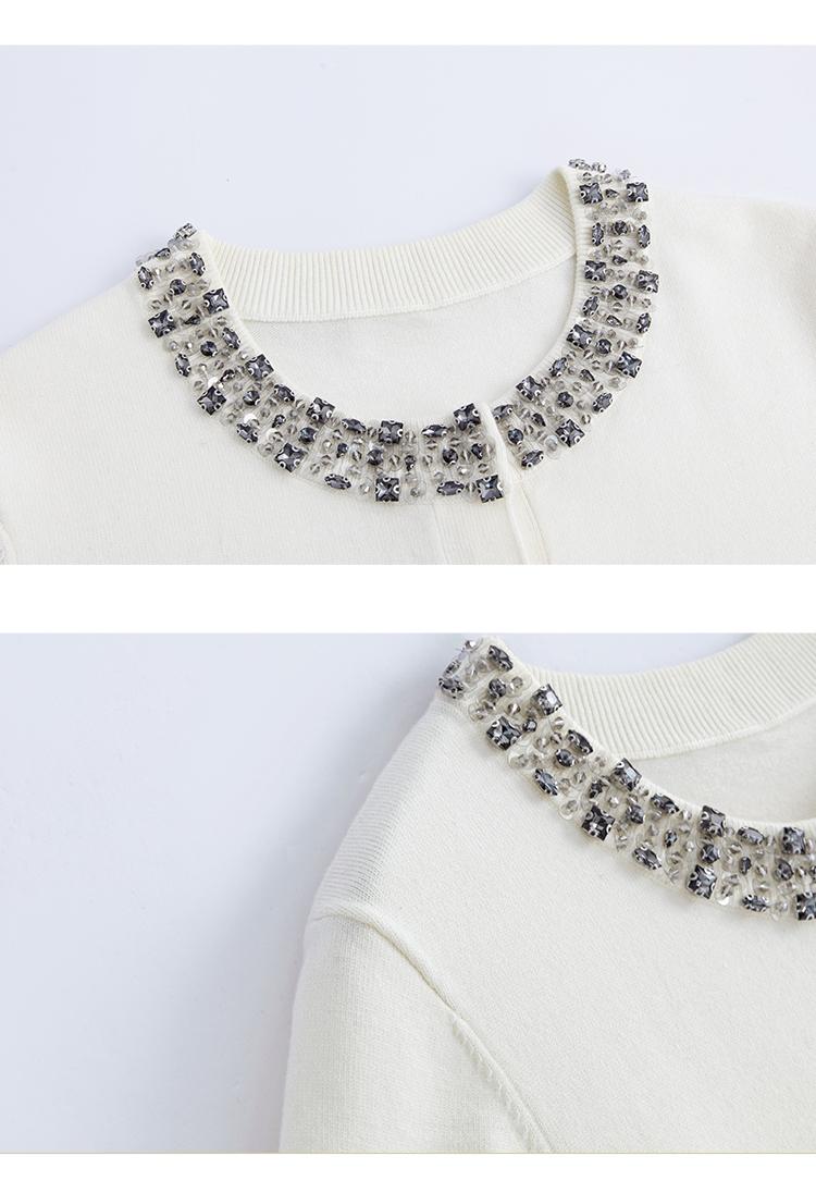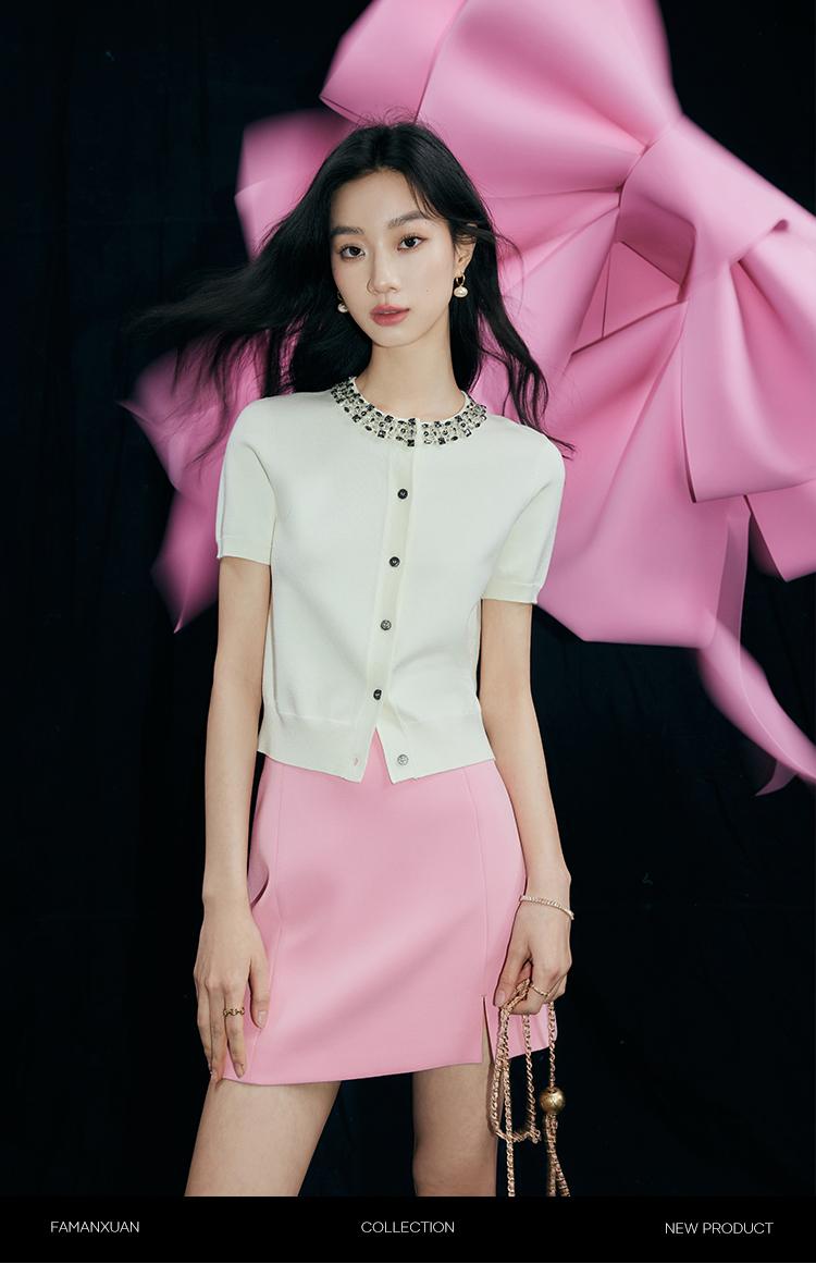[Serie Diamante Estrella] Cárdigan de Punto con Cuentas Chanel Blancas para Mujer 2025 Nuevo Top de Manga Corta de Moda Francesa