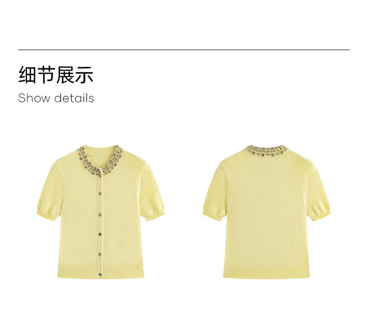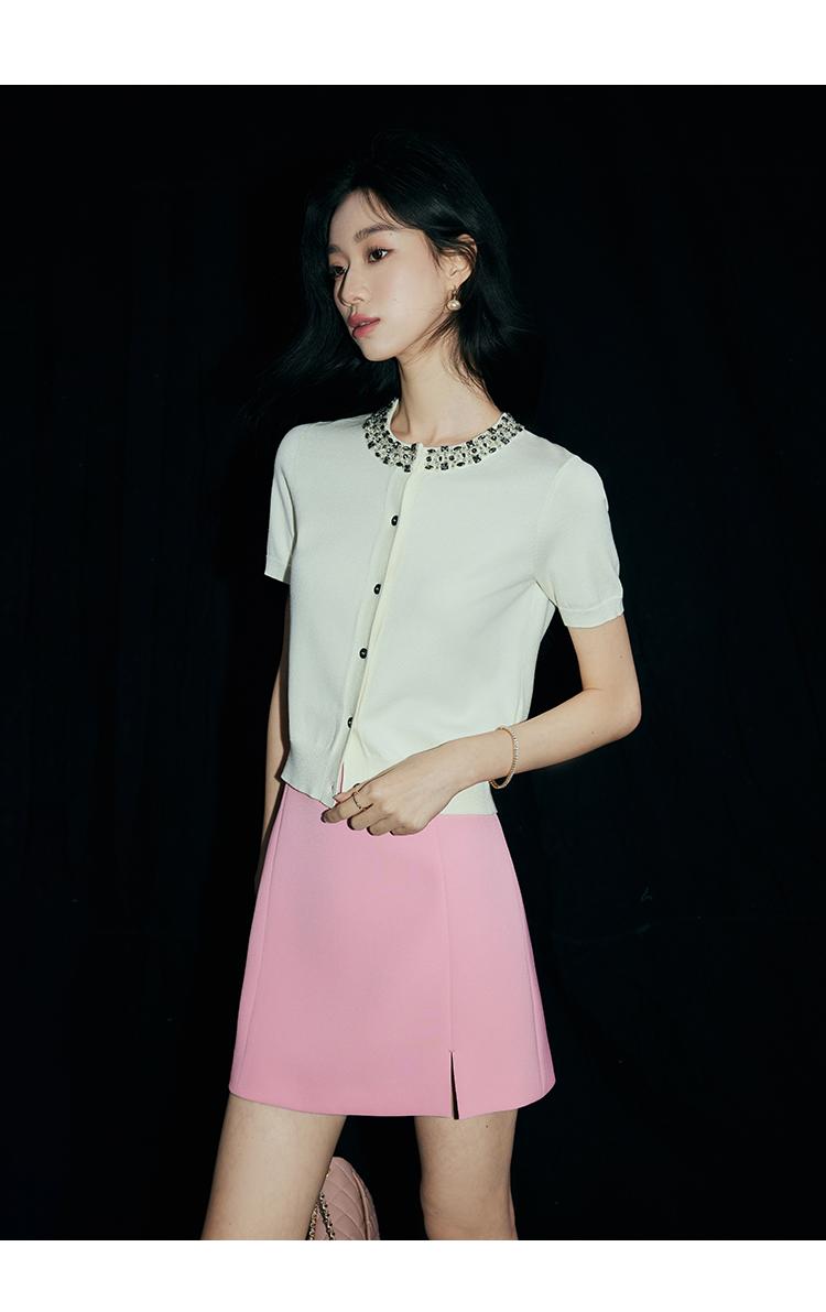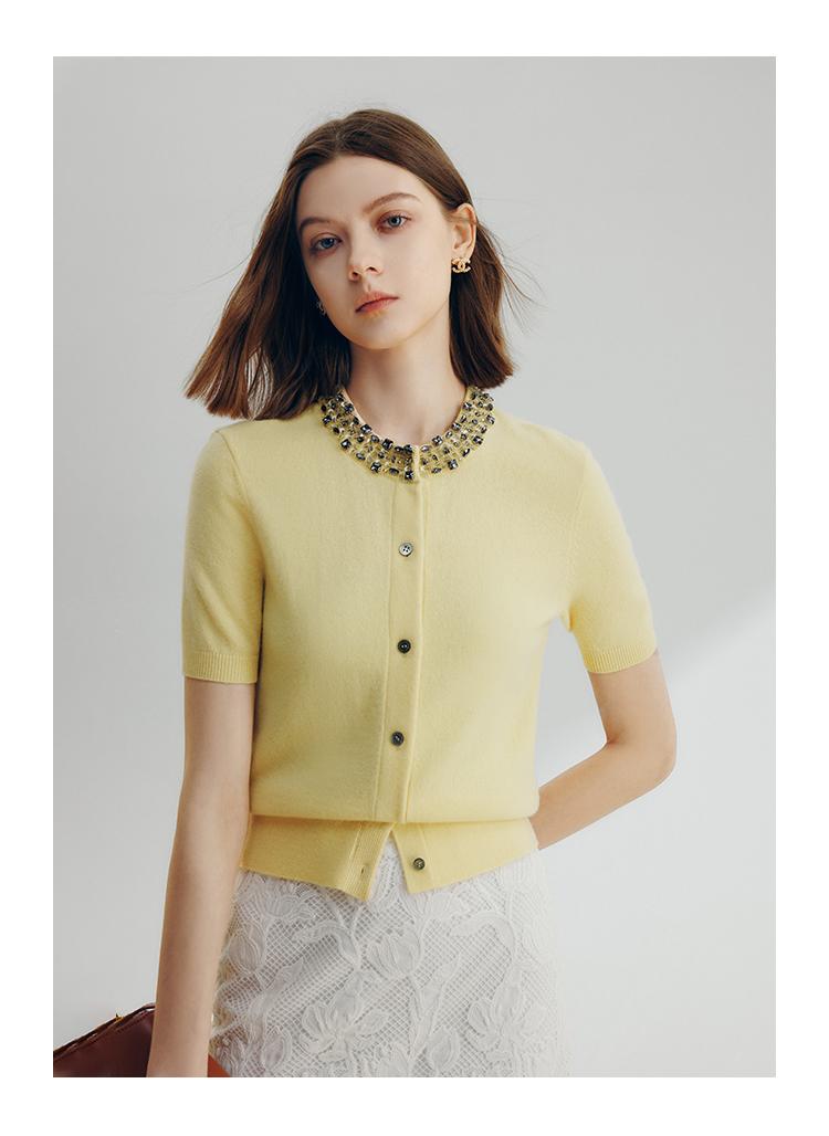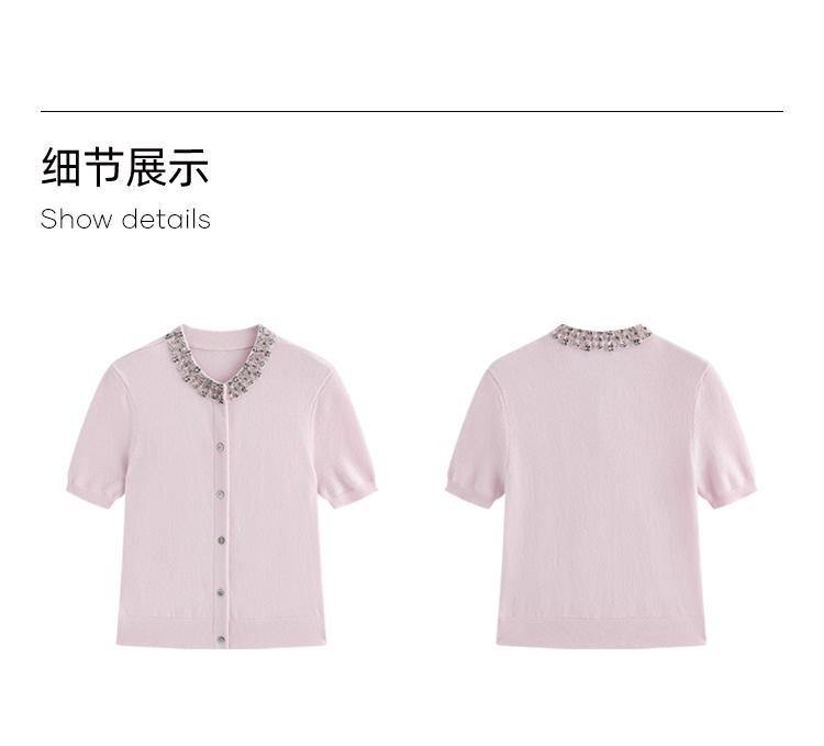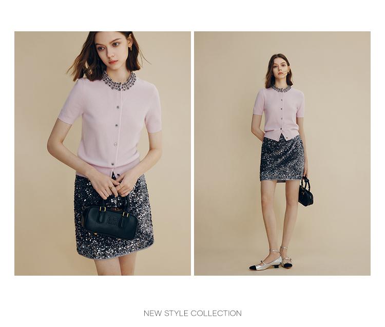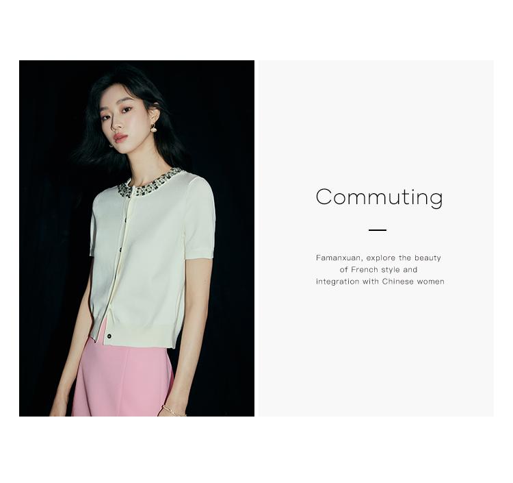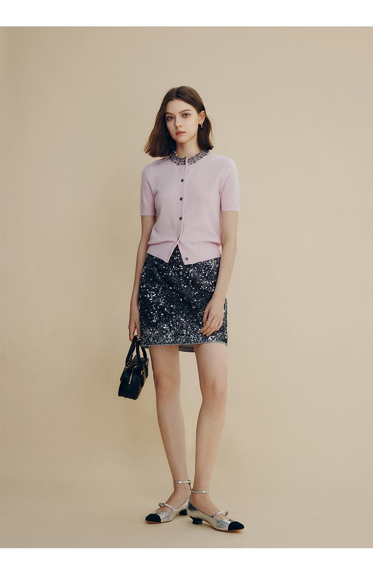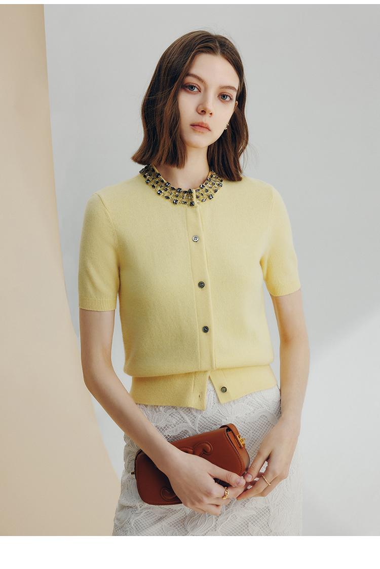 [Serie Diamante Estrella] Cárdigan de Punto con Cuentas Chanel Blancas para Mujer 2025 Nuevo Top de Manga Corta de Moda Francesa
