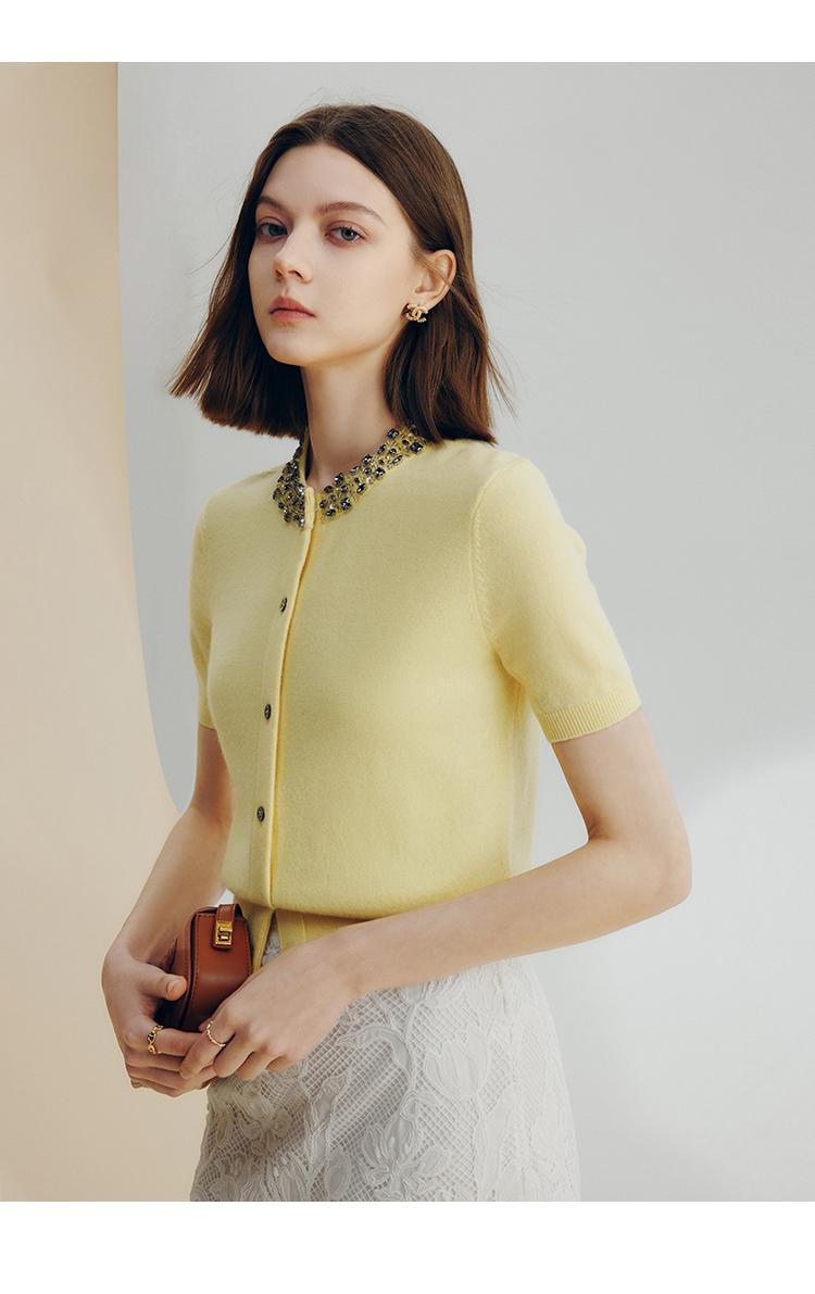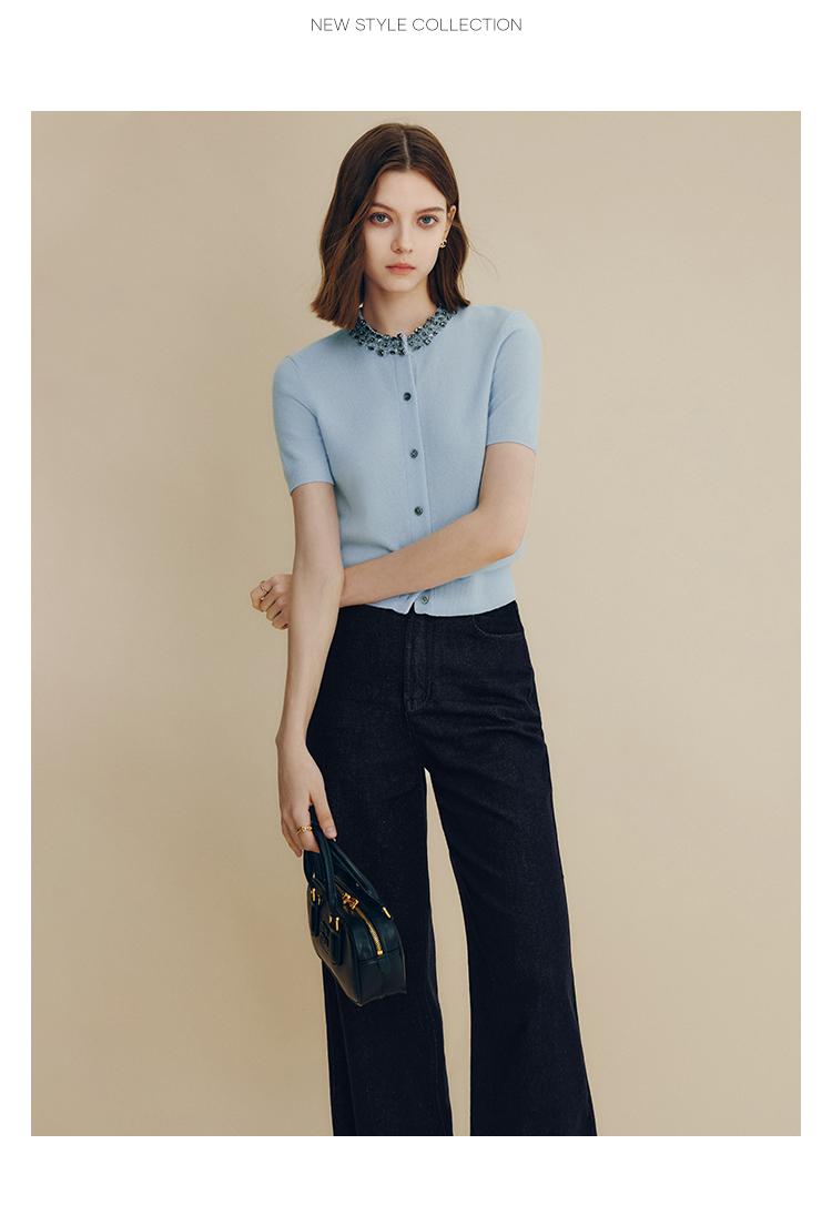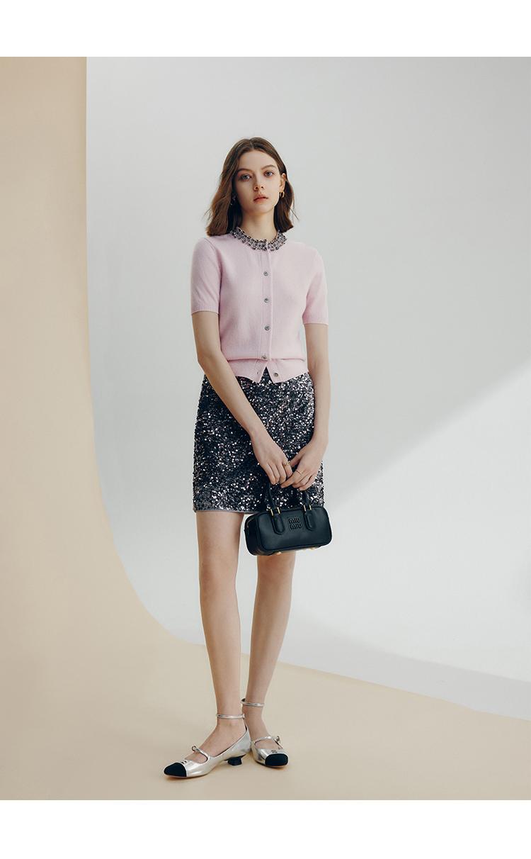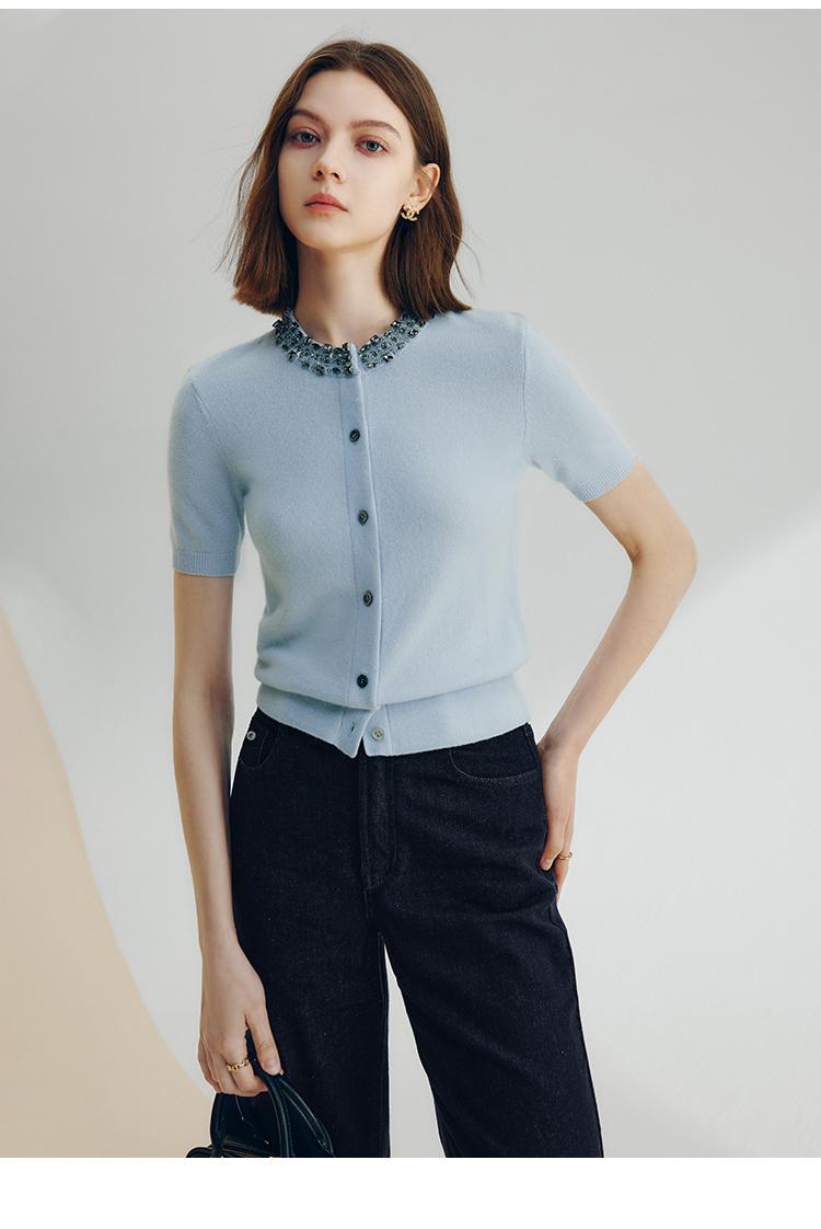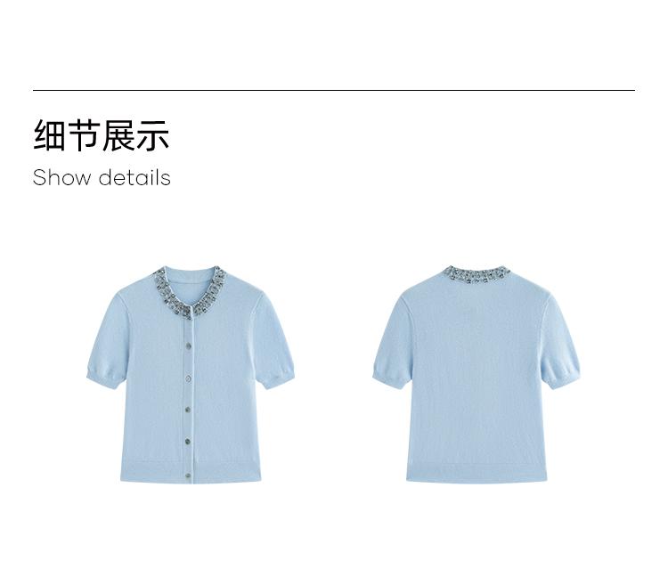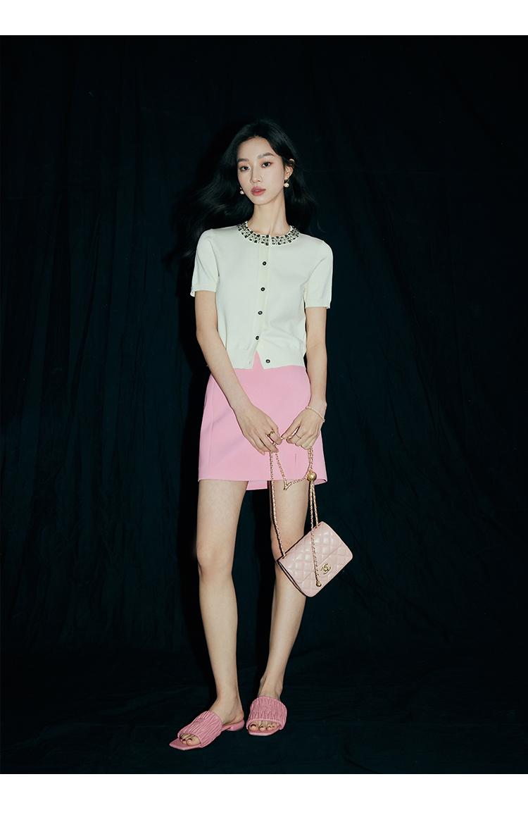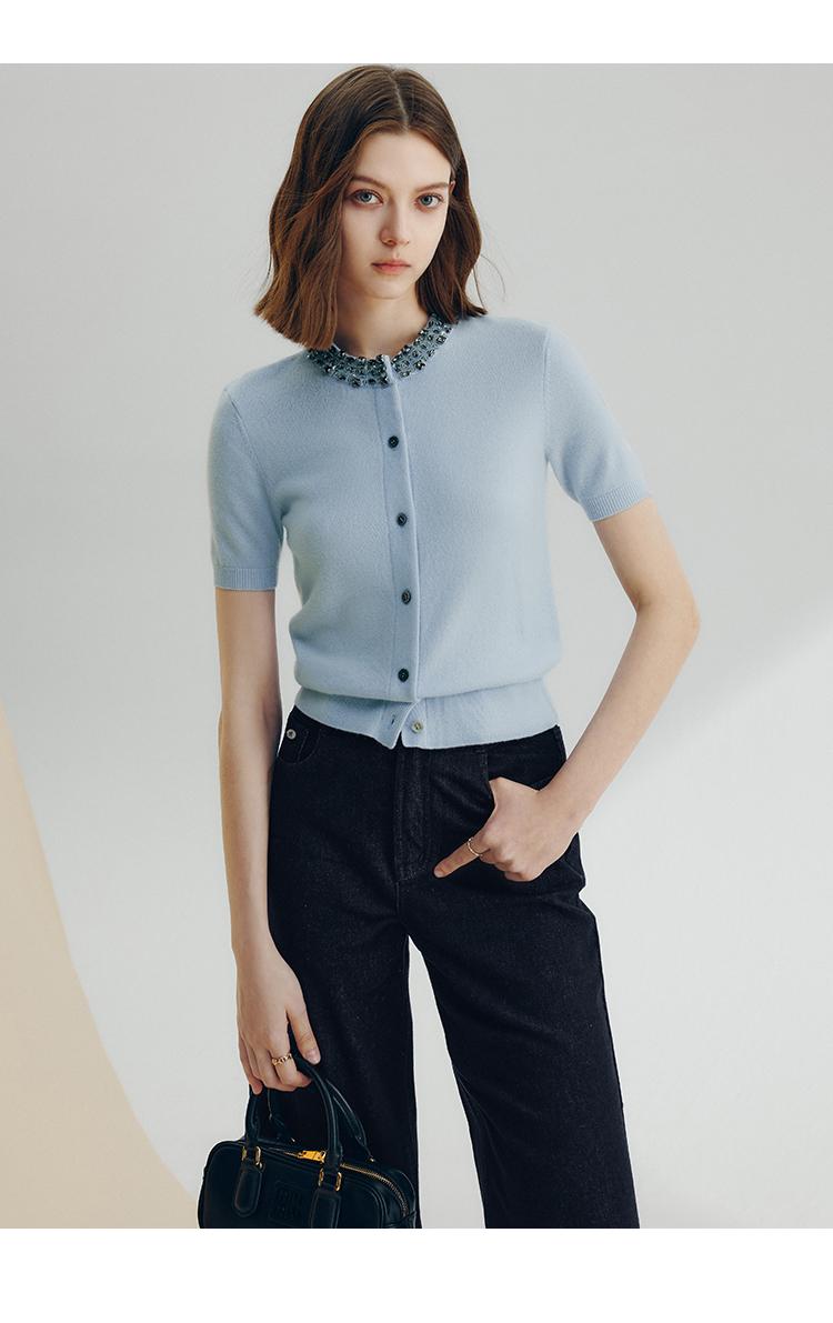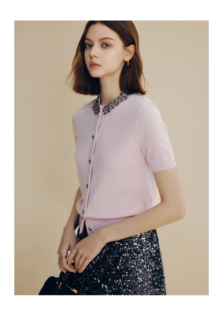 [Serie Diamante Estrella] Cárdigan de Punto con Cuentas Chanel Blancas para Mujer 2025 Nuevo Top de Manga Corta de Moda Francesa