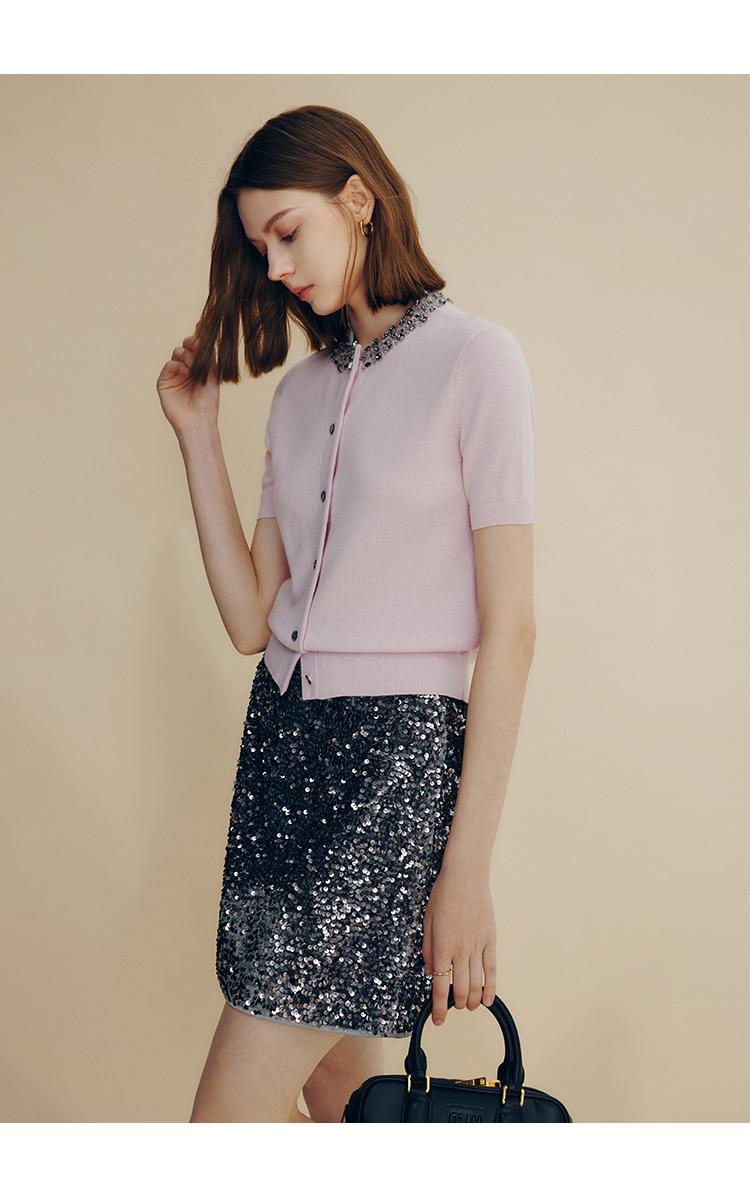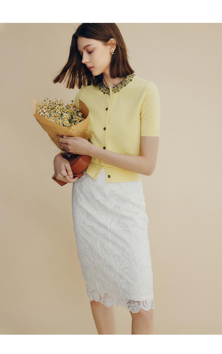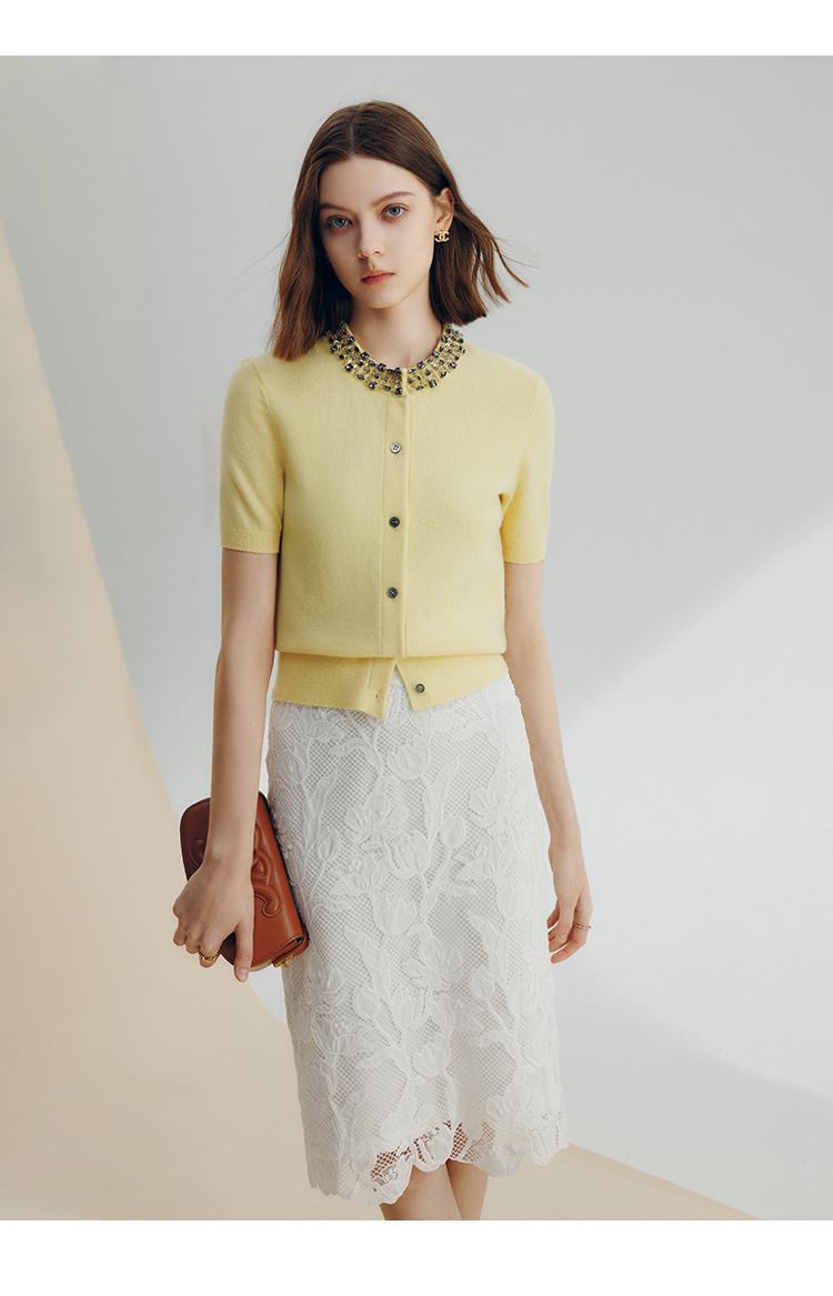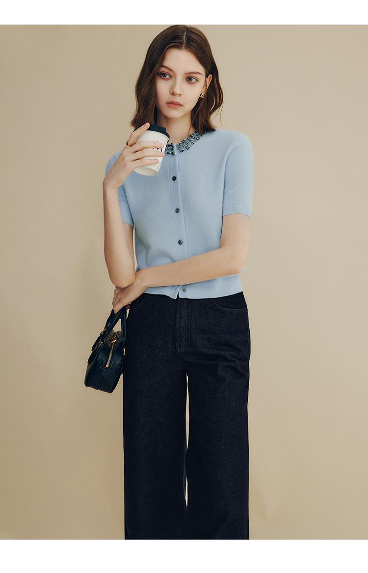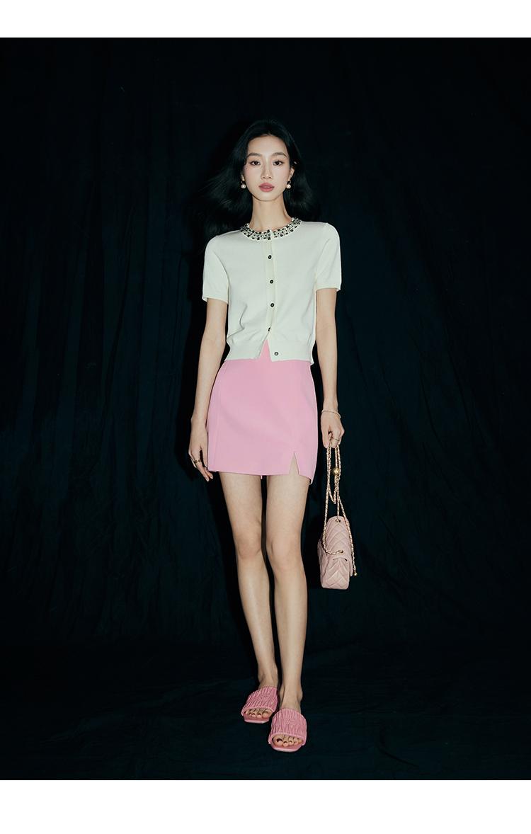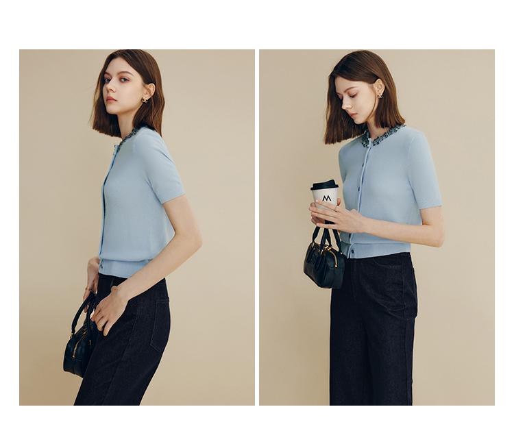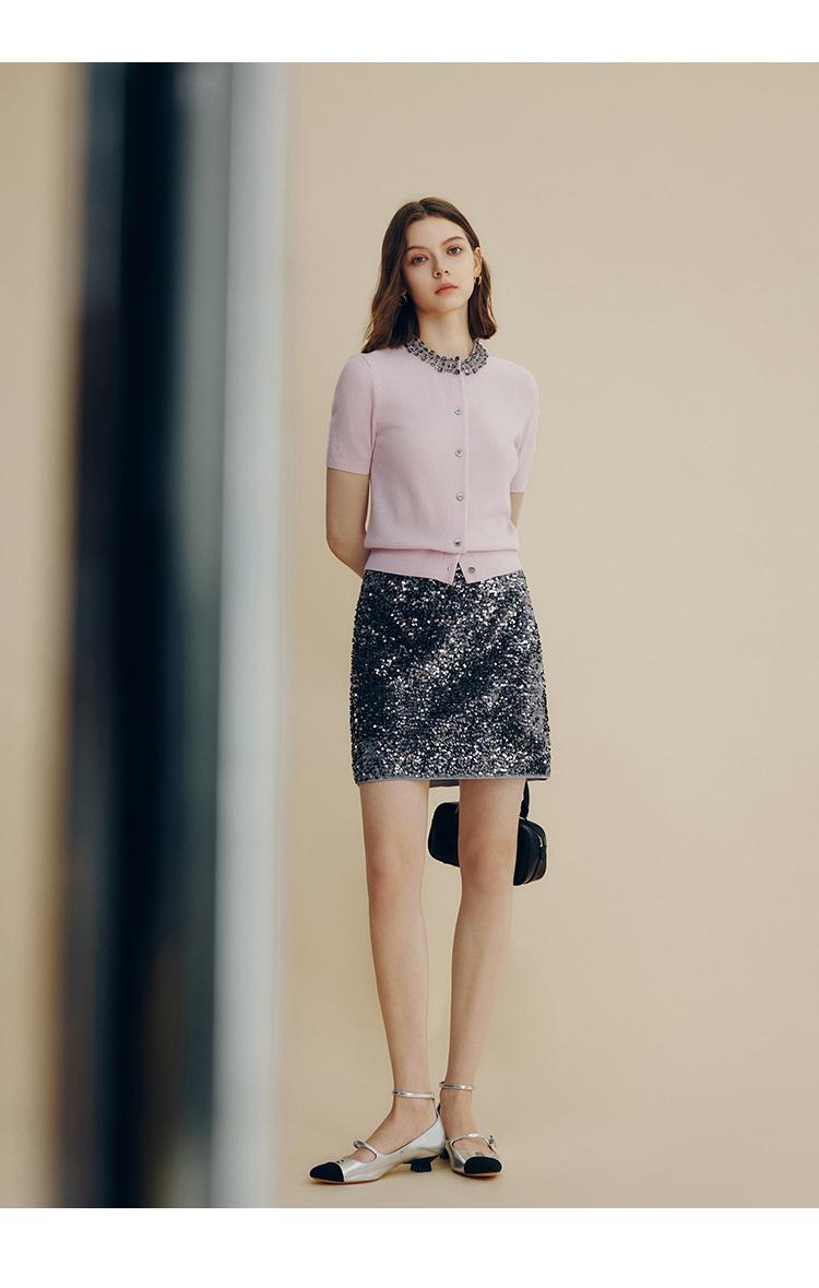 [Serie Diamante Estrella] Cárdigan de Punto con Cuentas Chanel Blancas para Mujer 2025 Nuevo Top de Manga Corta de Moda Francesa