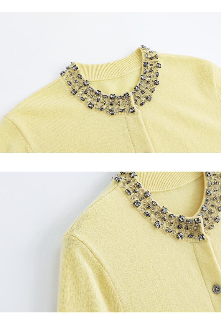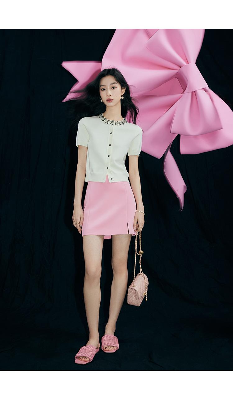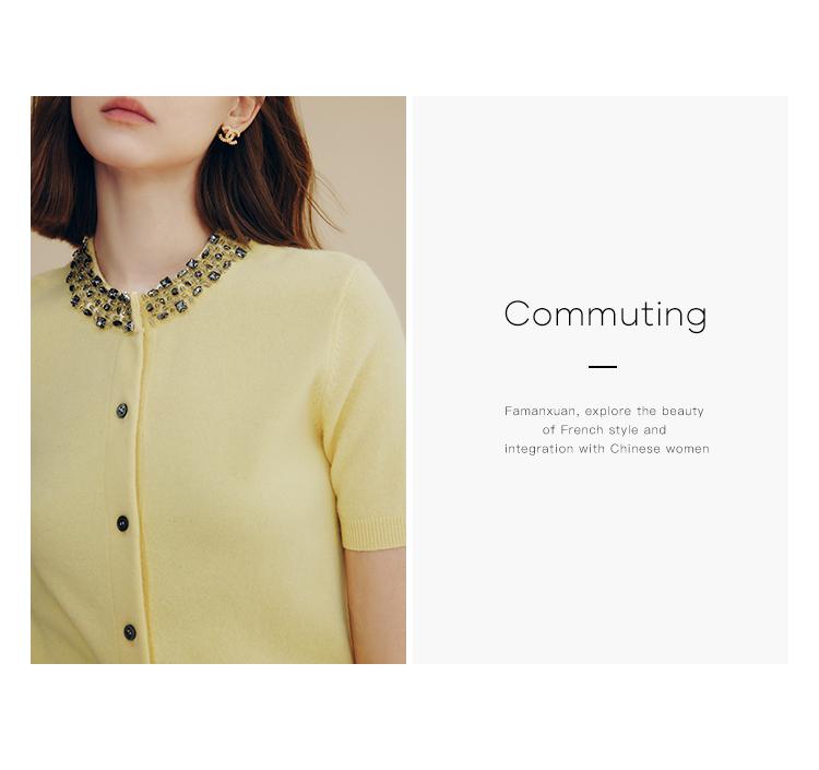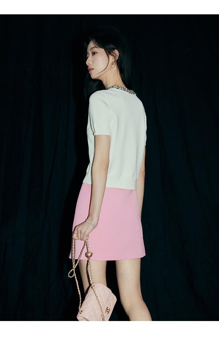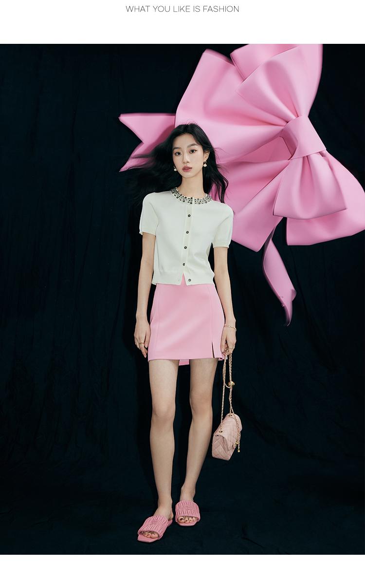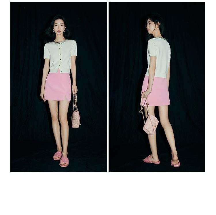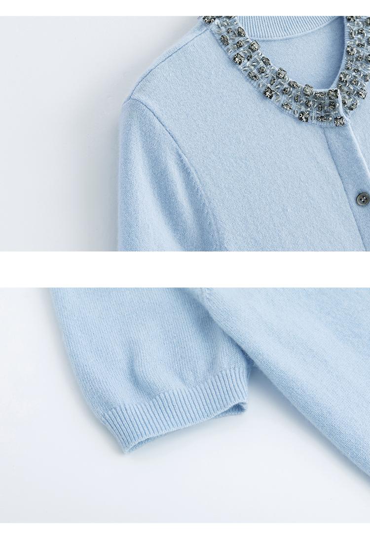 [Serie Diamante Estrella] Cárdigan de Punto con Cuentas Chanel Blancas para Mujer 2025 Nuevo Top de Manga Corta de Moda Francesa