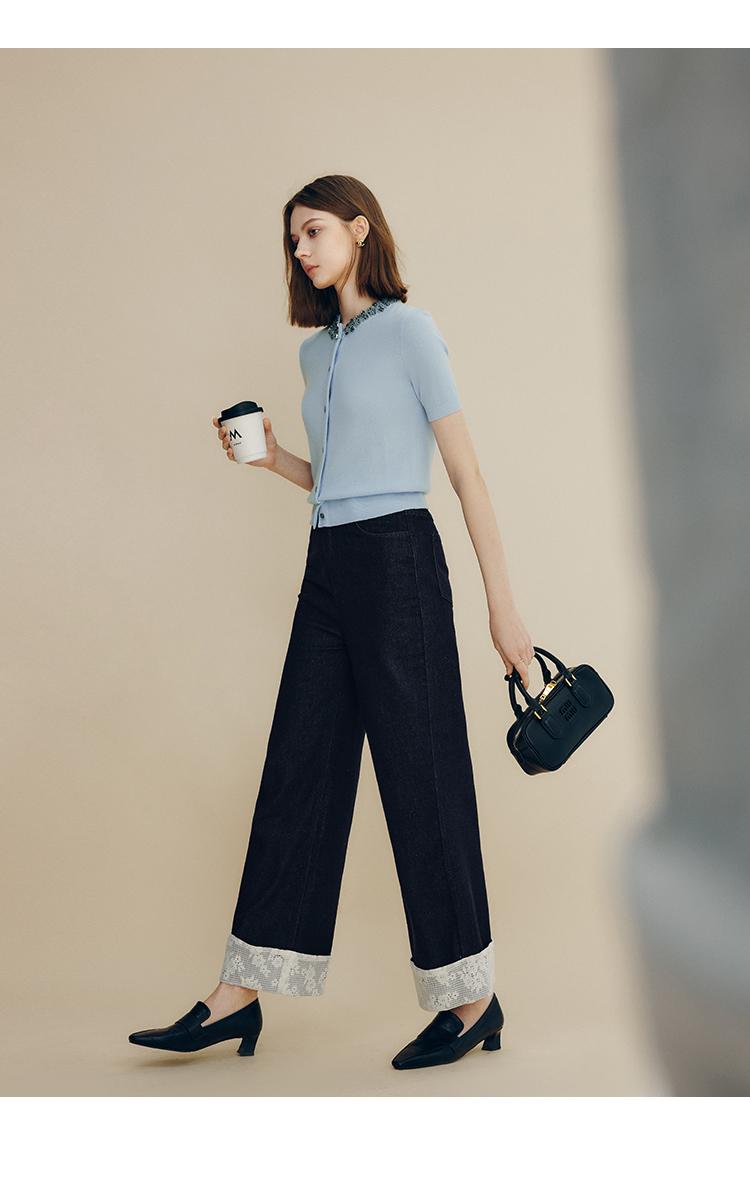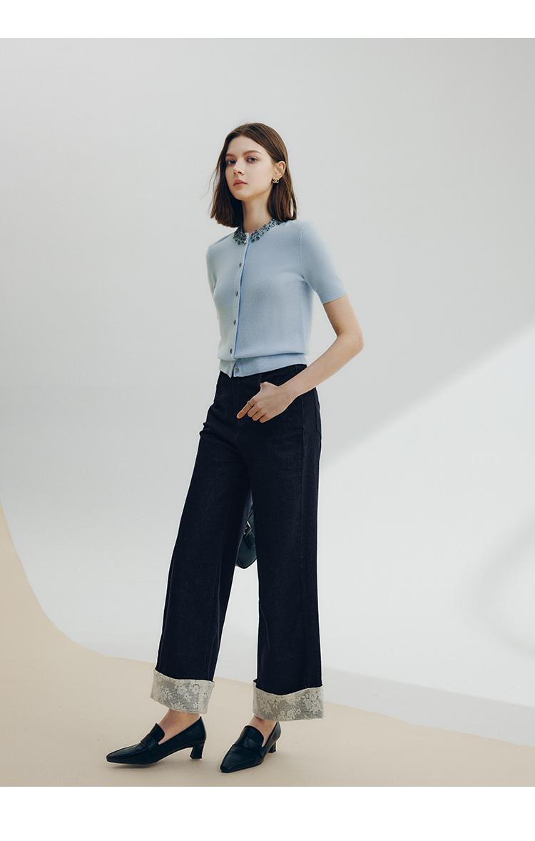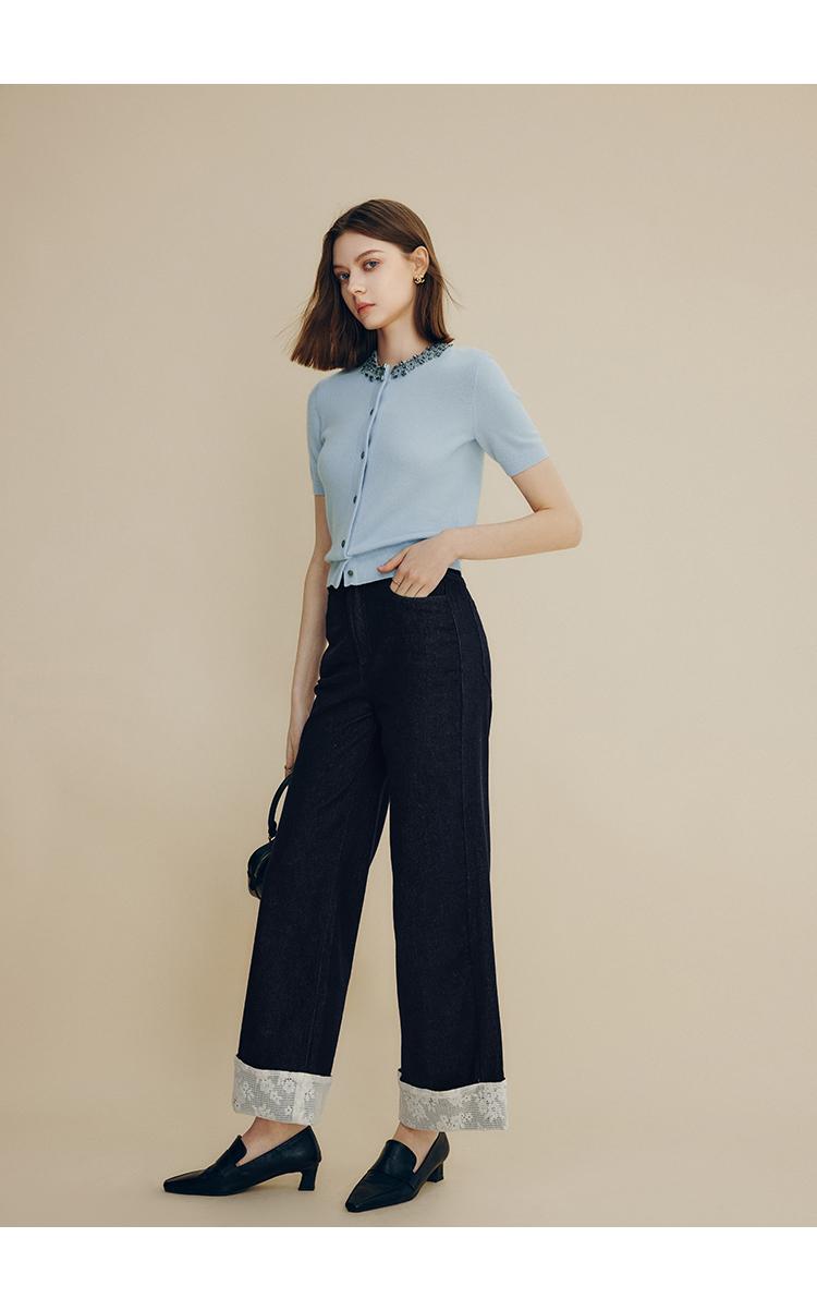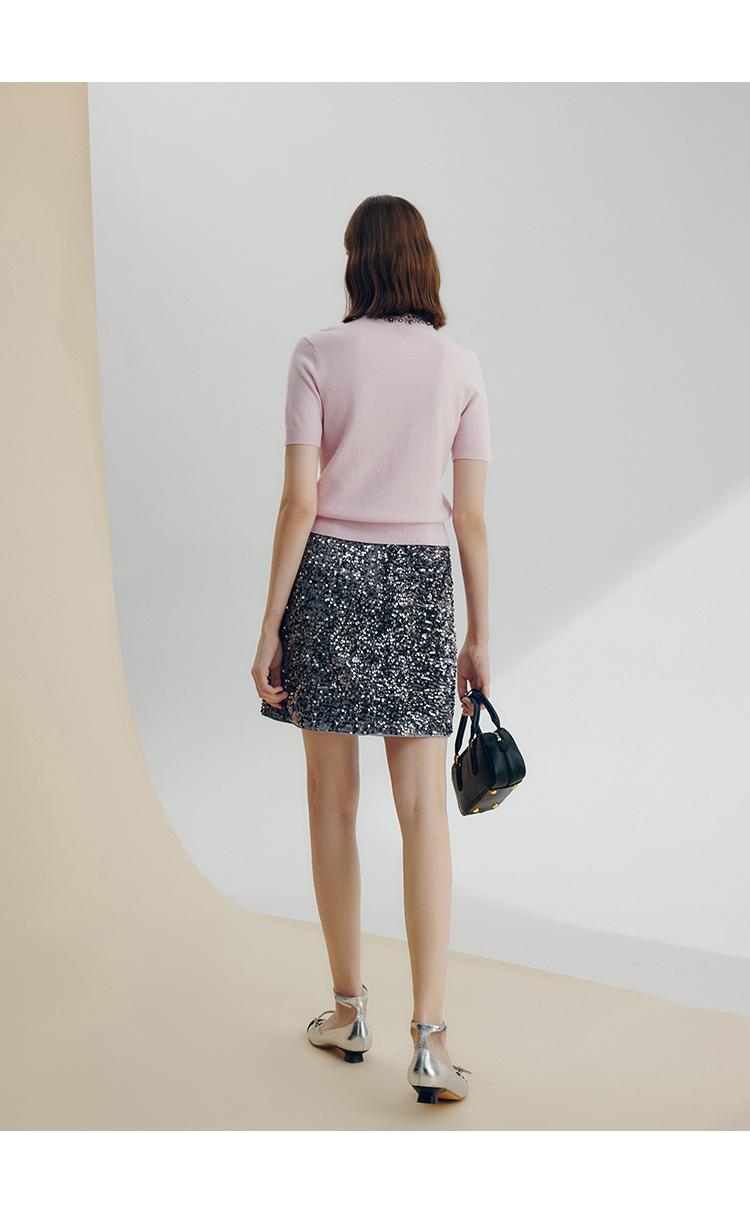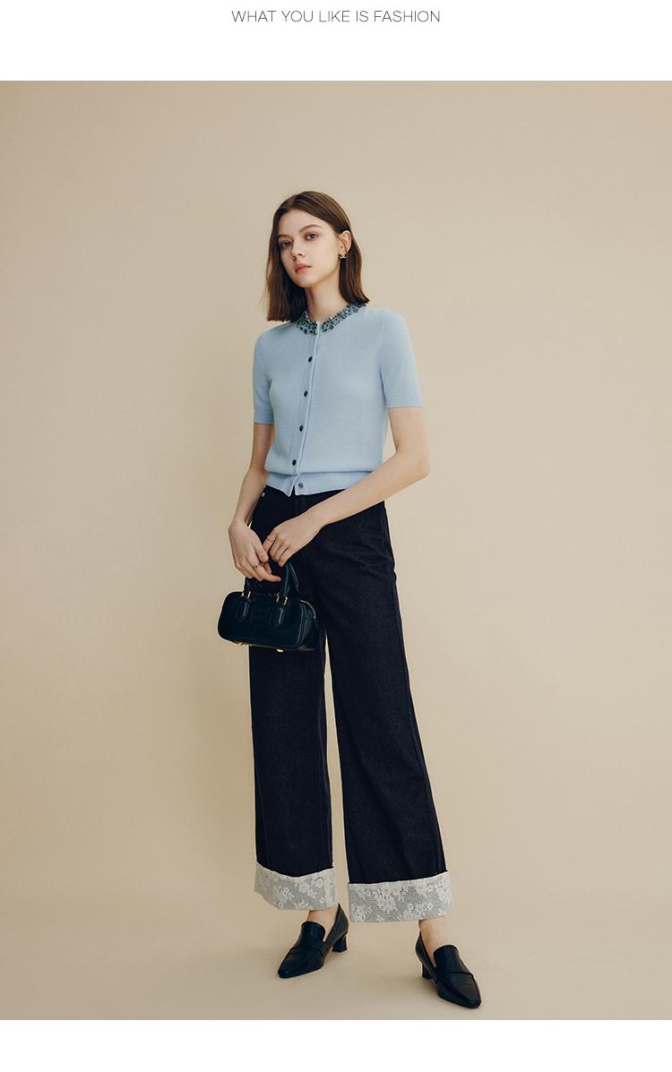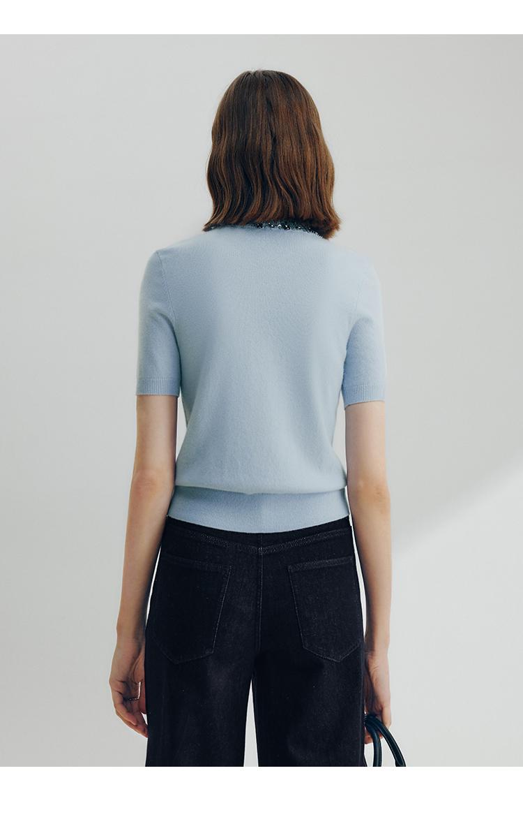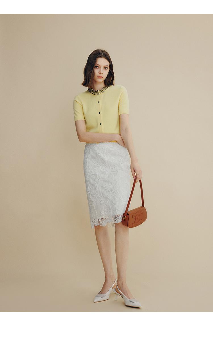 [Serie Diamante Estrella] Cárdigan de Punto con Cuentas Chanel Blancas para Mujer 2025 Nuevo Top de Manga Corta de Moda Francesa