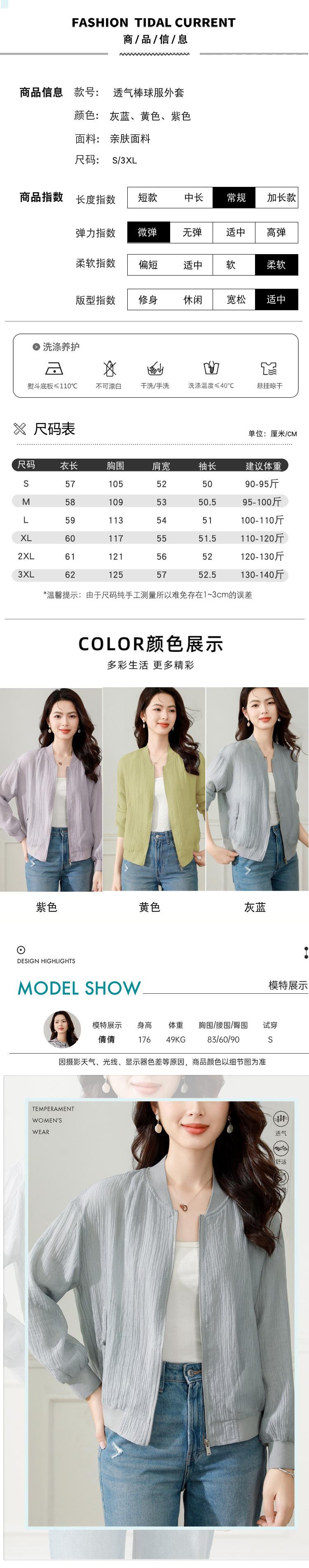 Ropa de Protección Solar para Disparo Real Ligera Transpirable Chaqueta de Traje de Béisbol para Mujer Verano Casual Simple Suelta Slim Sombreado Top