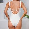 Traje de baño de una pieza para mujer, color sólido, almohadillas de pecho desmontables