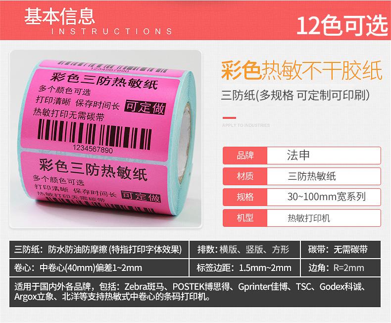 Colorful three-proof thermal label paper self-adhesive