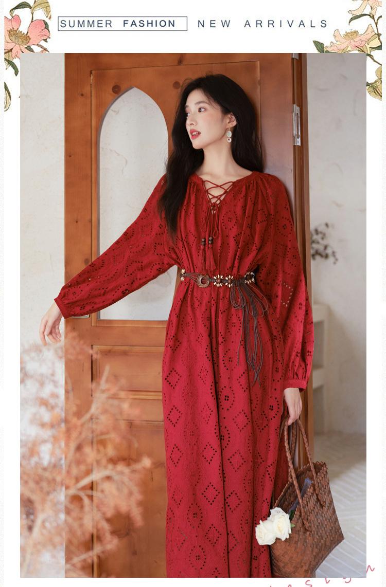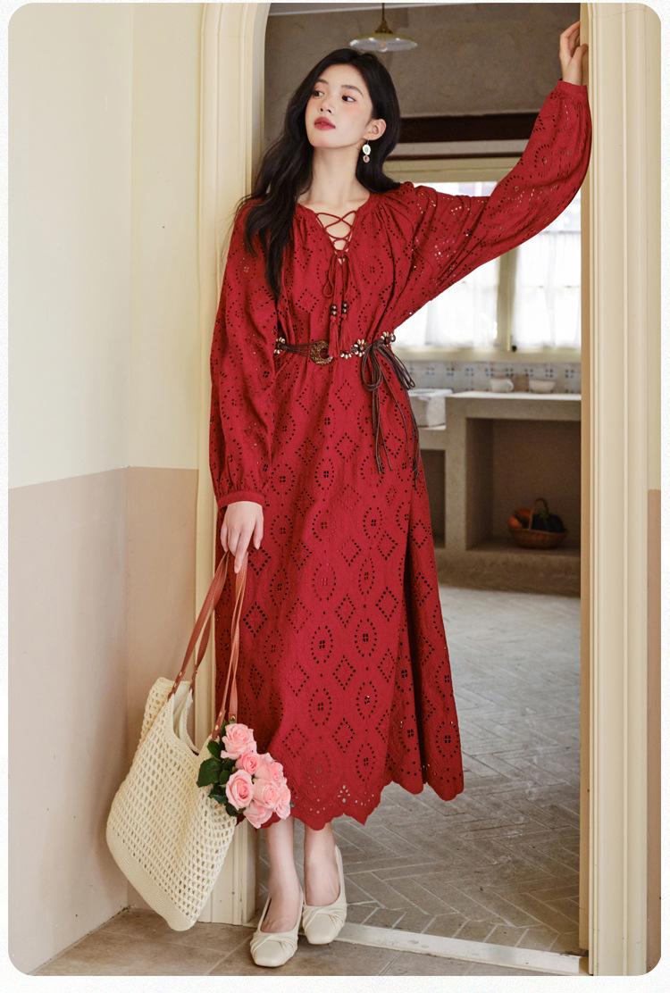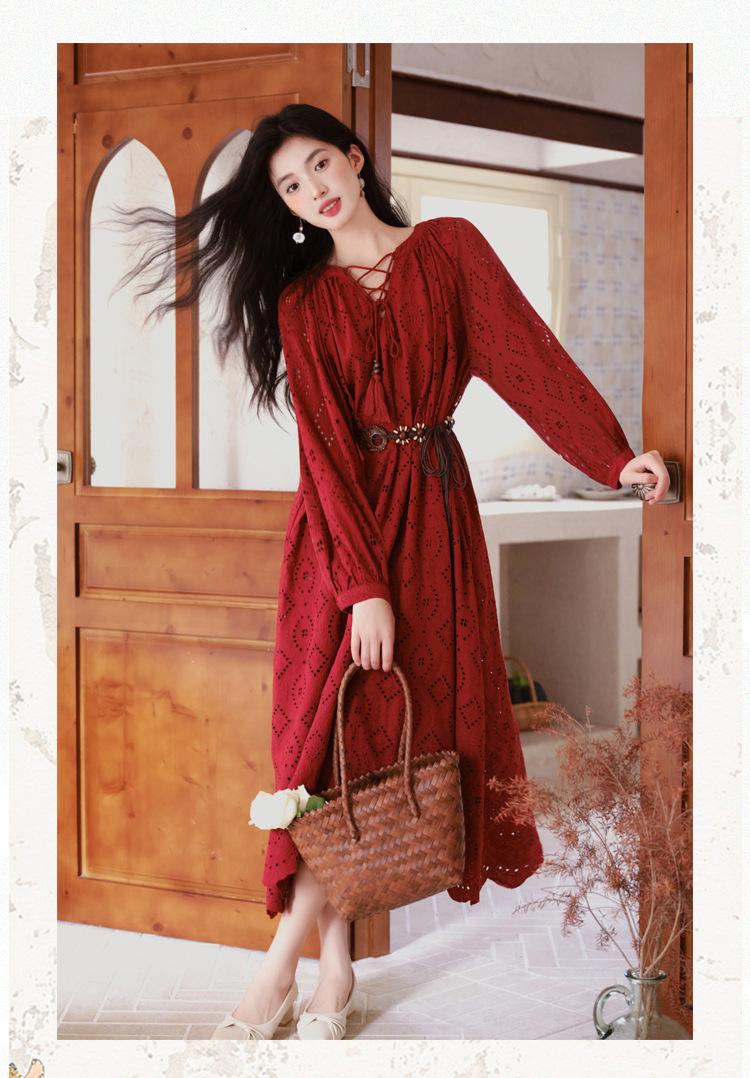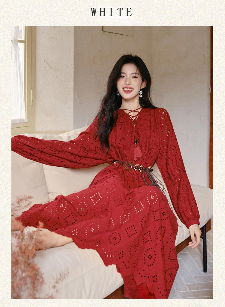 Otoño 2024 Nuevo Vestido de Manga Larga con Flecos y Colgante de Picos Hueco Moda para Mujer Vestido Ajustado