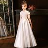 Vestido Blanco Infantil, Vestido de Lentejuelas Francés para Actuación de Piano, Elegante Vestido de Pequeña Anfitriona, Vestido Largo de Manga Corta