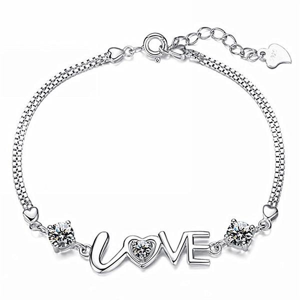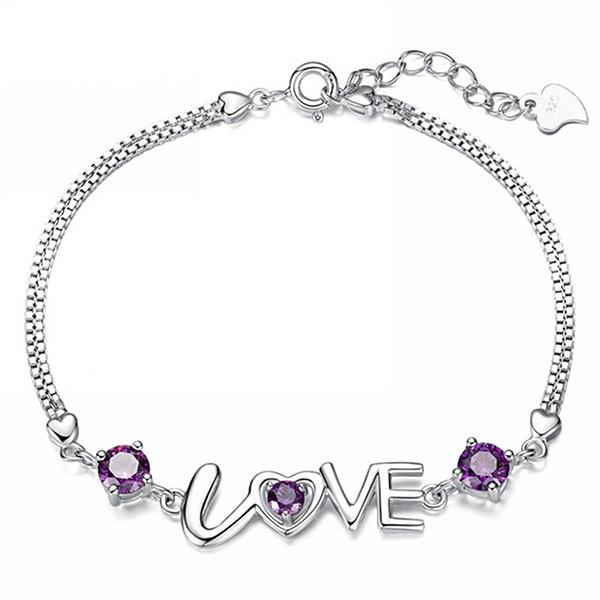 Joyería de Plata Amor Romántico Pulsera Plateada Mujeres aman Pulsera Corazón a Corazón Doble Diamante Venta al por Mayor de Fábrica