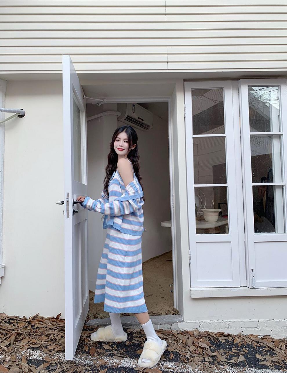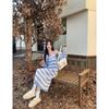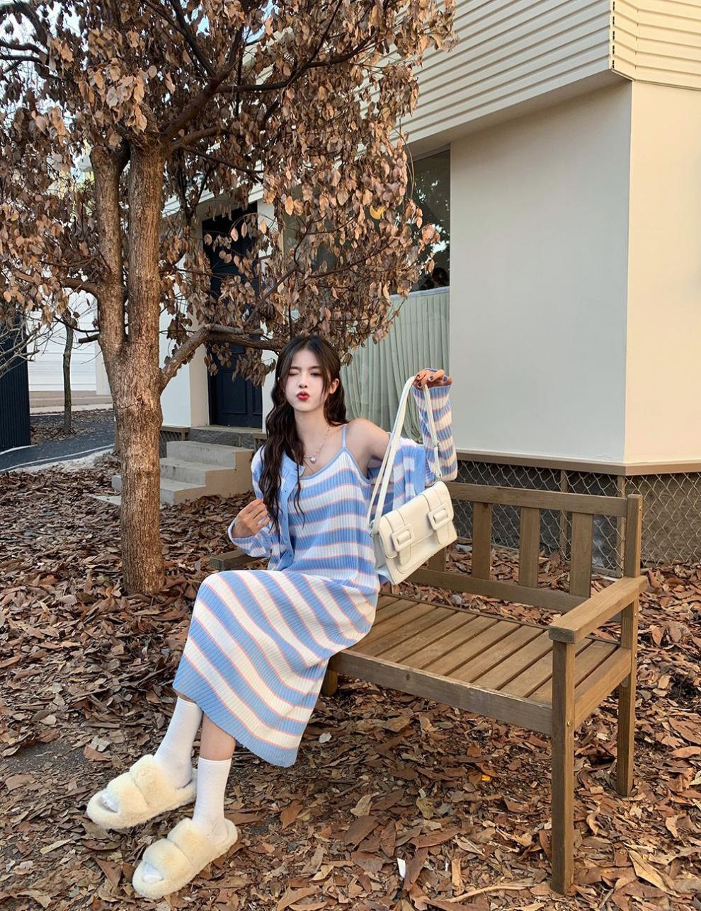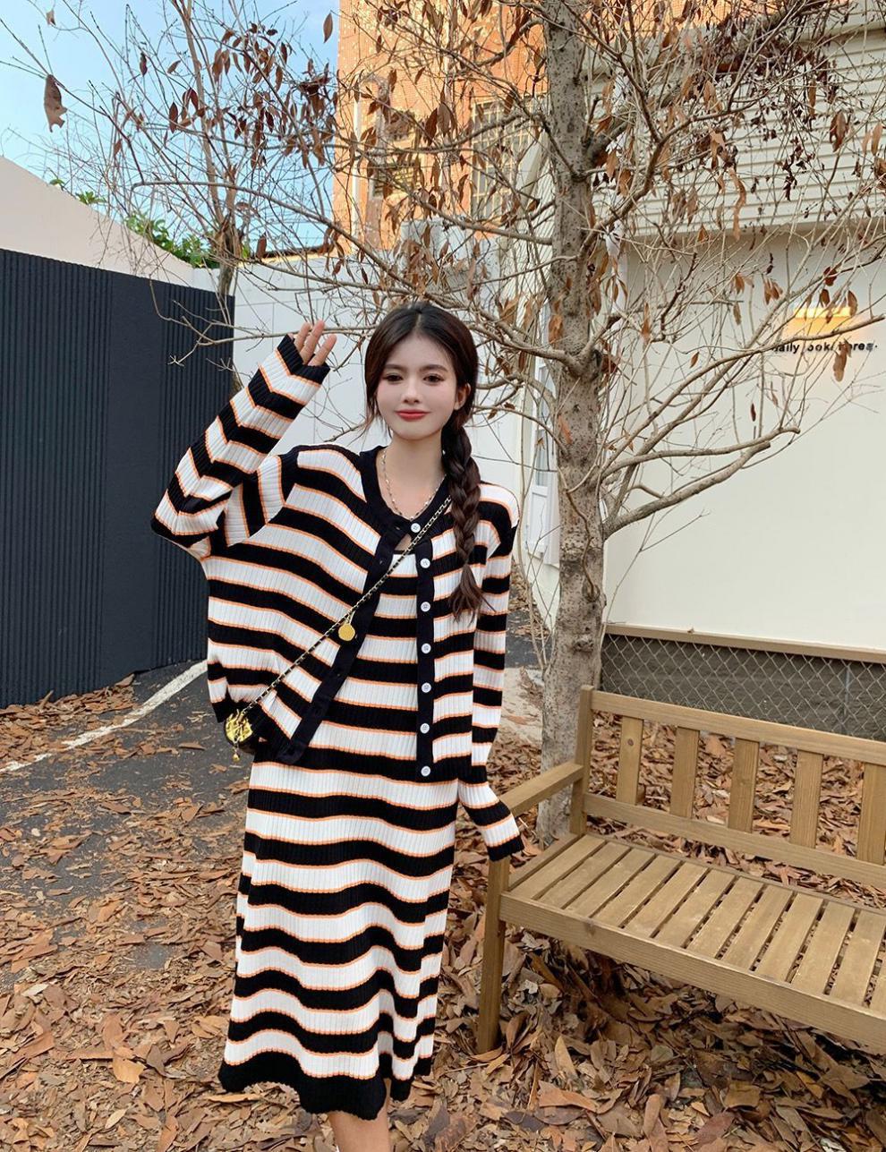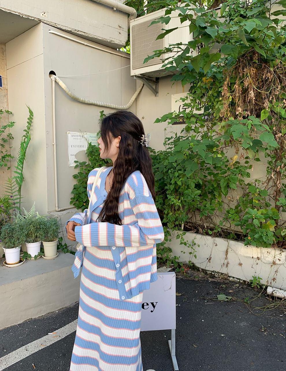 Popular transfronterizo traje a rayas vestido con tirantes cárdigan de punto conjunto de dos piezas 2023 nuevo adelgazante versátil