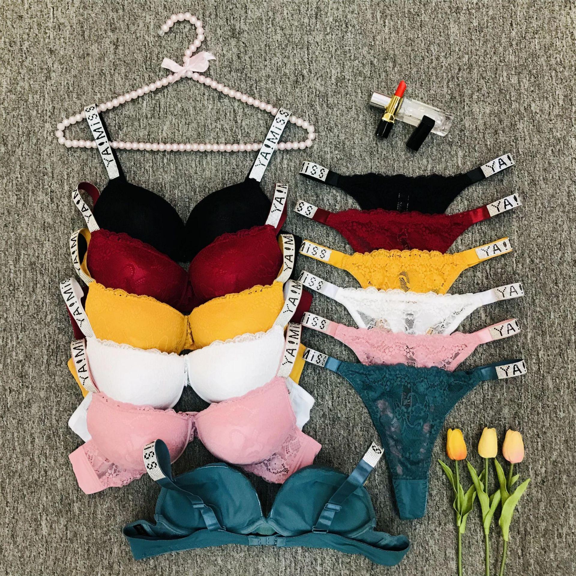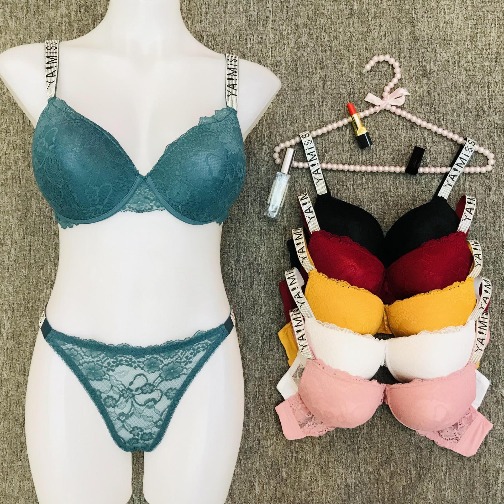 Hermoso Set de Brasier de Espalda para Mujer, Talla Grande Push-Up Ajustable de Encaje, Comercio Exterior Transfronterizo Copa Moldeada Gruesa