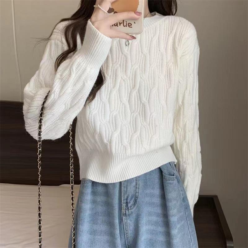 Suéter de otoño e invierno de manga corta y larga 2023 Nuevo estilo perezoso jersey top pequeño prenda exterior que combina con todo