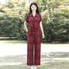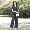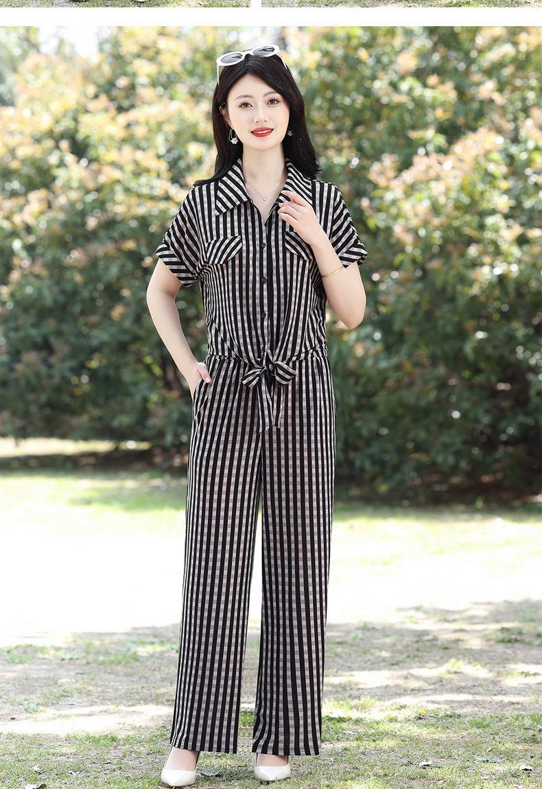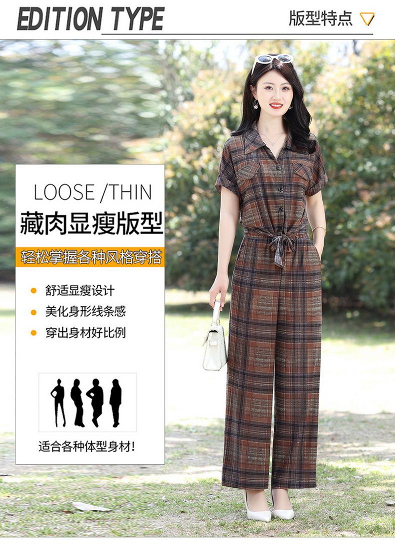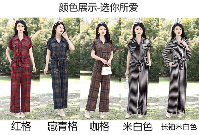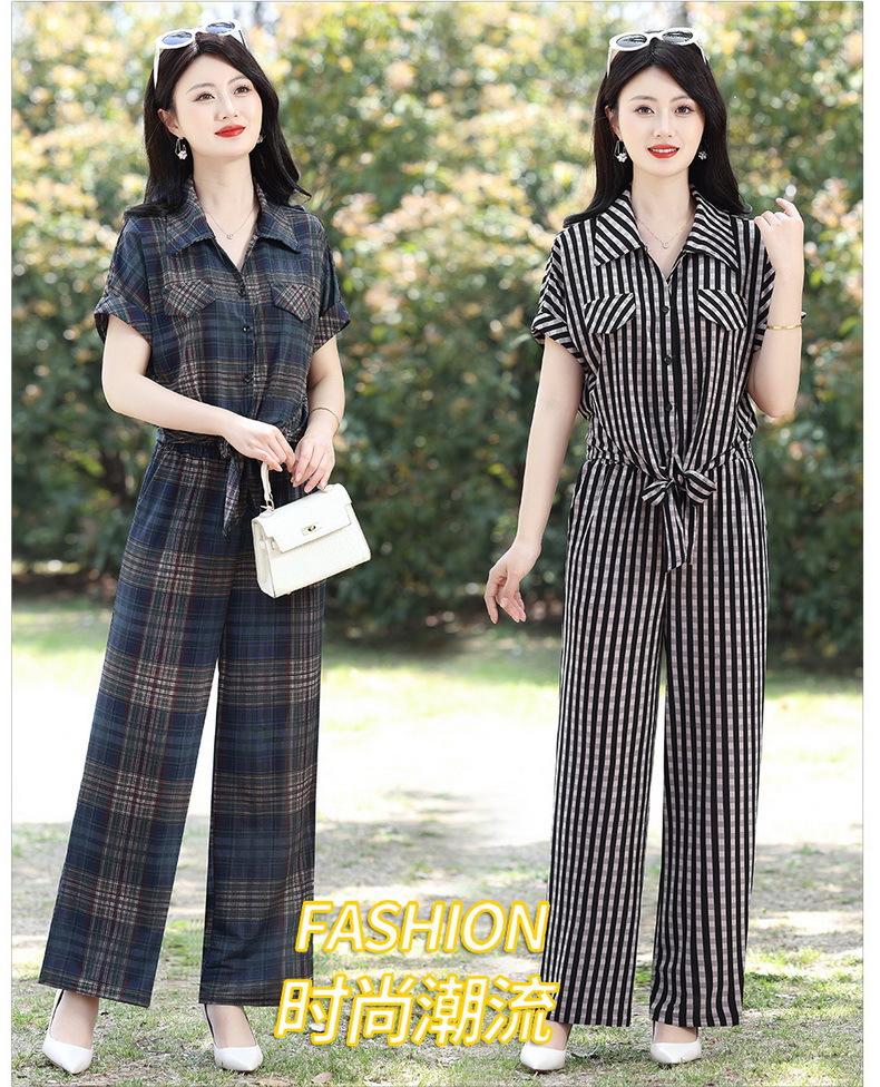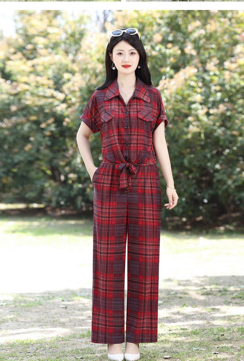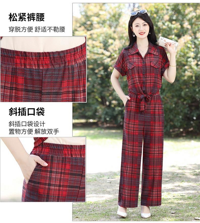 Traje de Moda de Verano para Madre Conjunto de Dos Piezas para Mujer 2025 Nuevo Elegante Camisa de Cuadros de Manga Corta Top Pantalones de Pierna Ancha