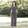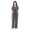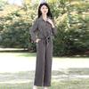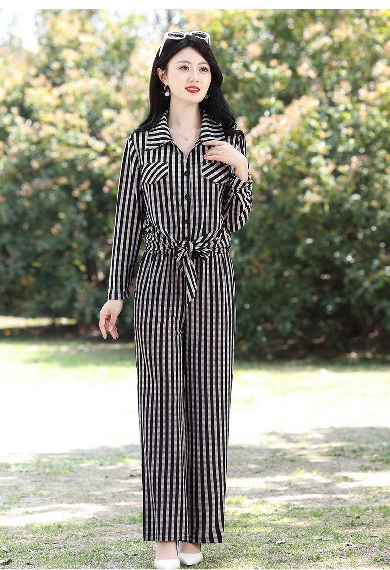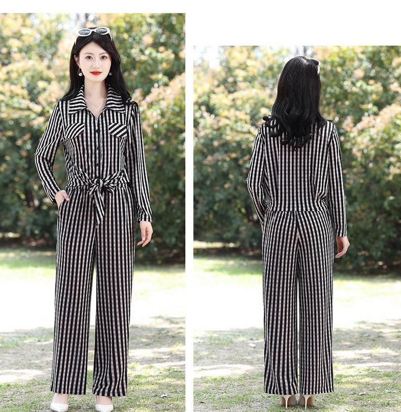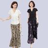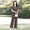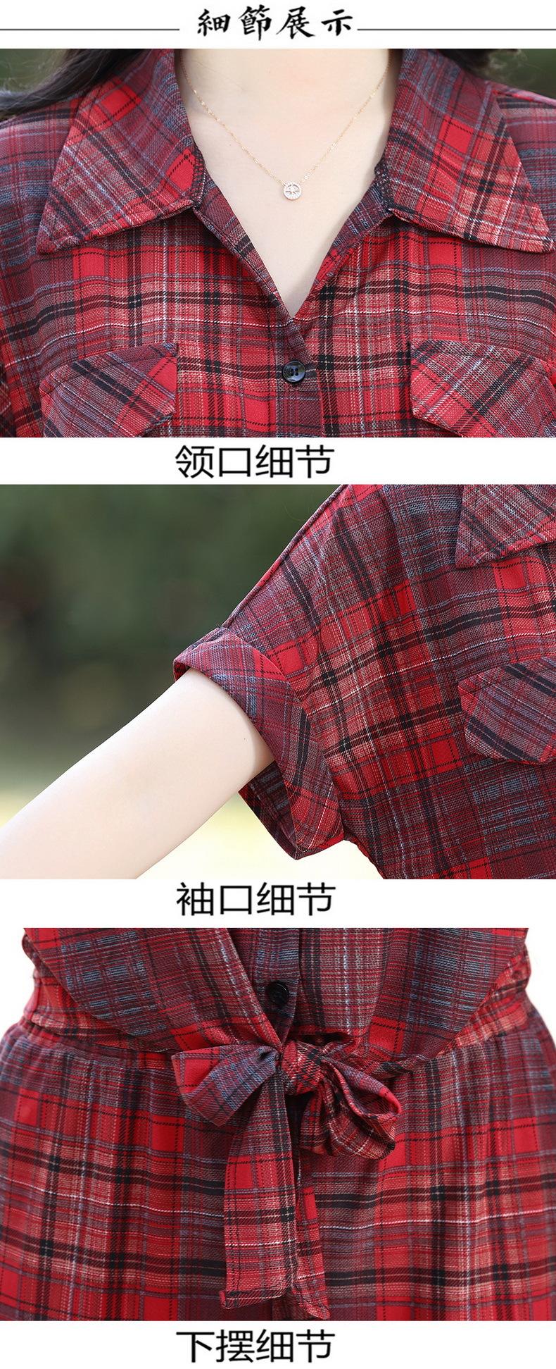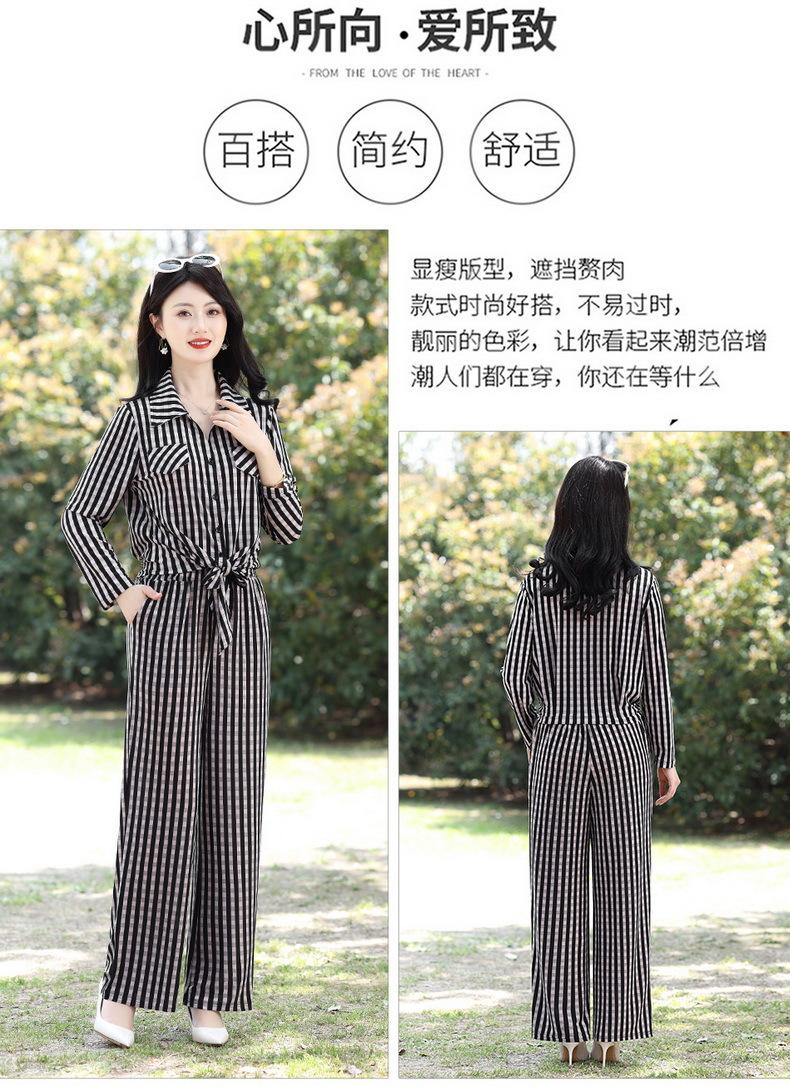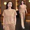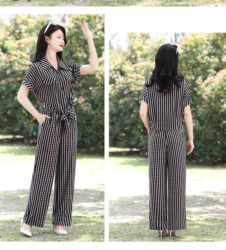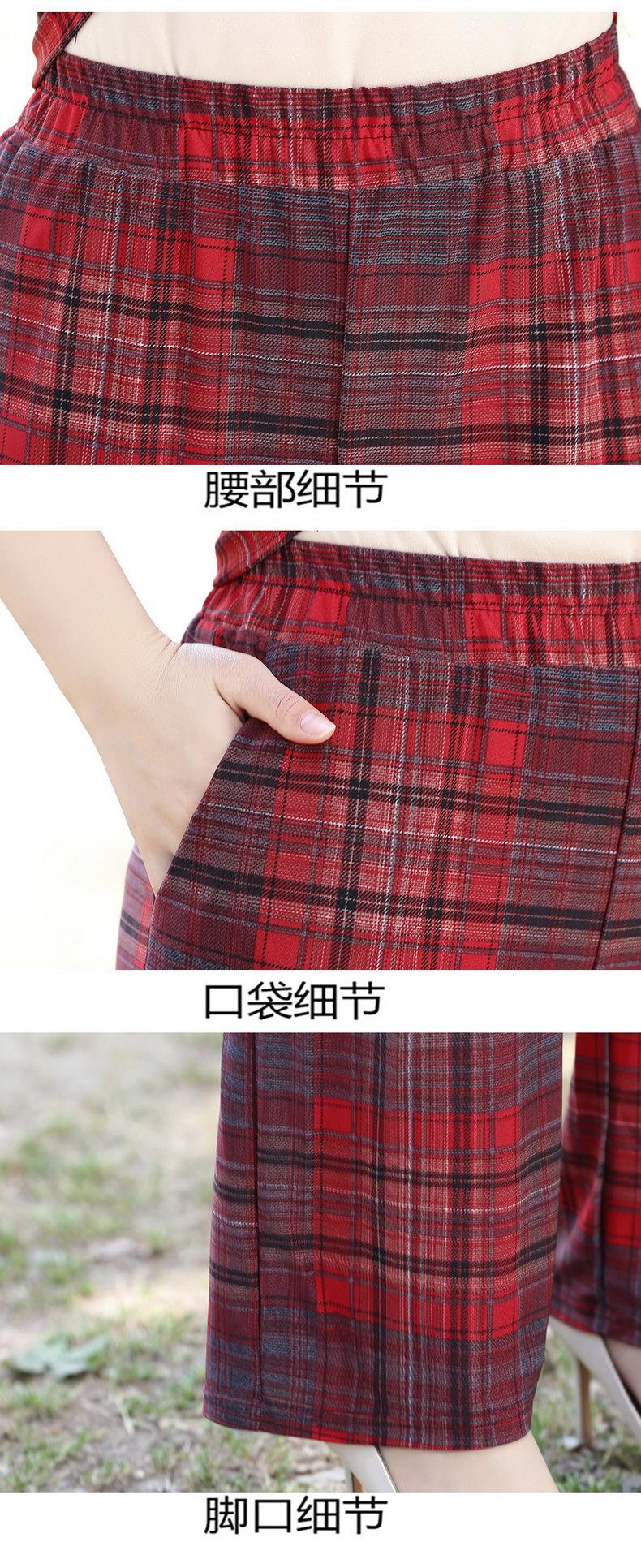 Traje de Moda de Verano para Madre Conjunto de Dos Piezas para Mujer 2025 Nuevo Elegante Camisa de Cuadros de Manga Corta Top Pantalones de Pierna Ancha