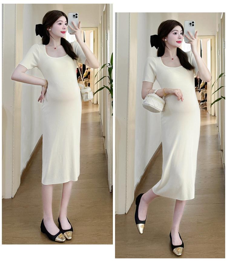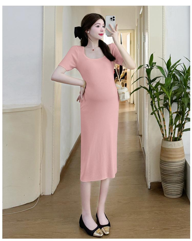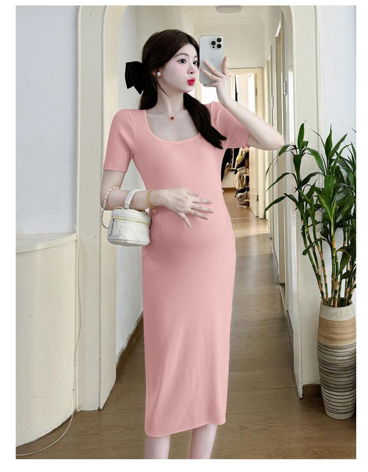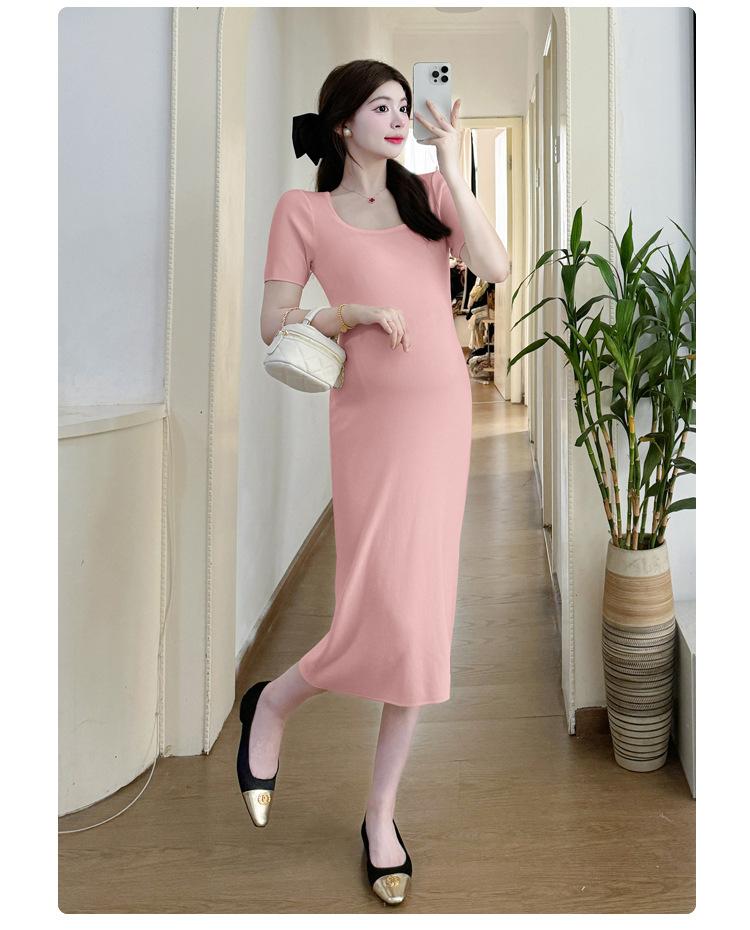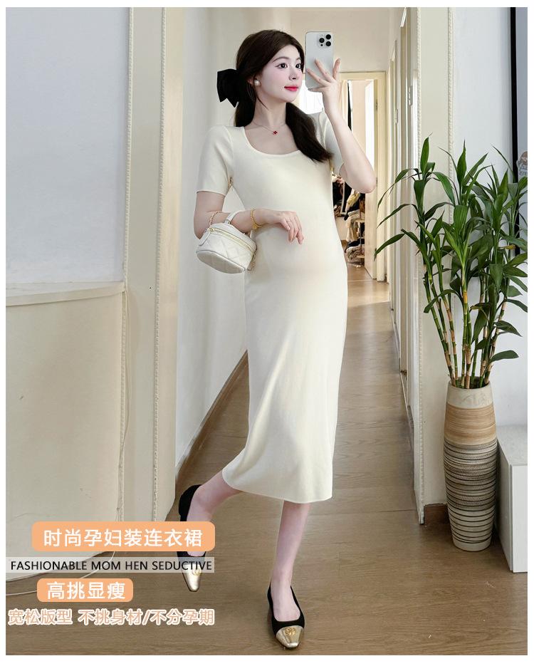 Vestido de Maternidad Verano Nuevo Dulce Moda Reductor de Edad Cintura Simple Delgado Mamá Caliente Talla Grande Vestido de Maternidad