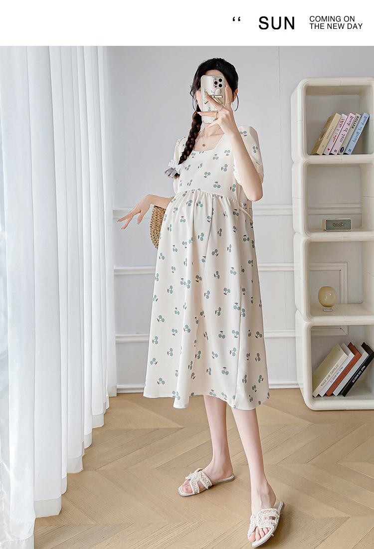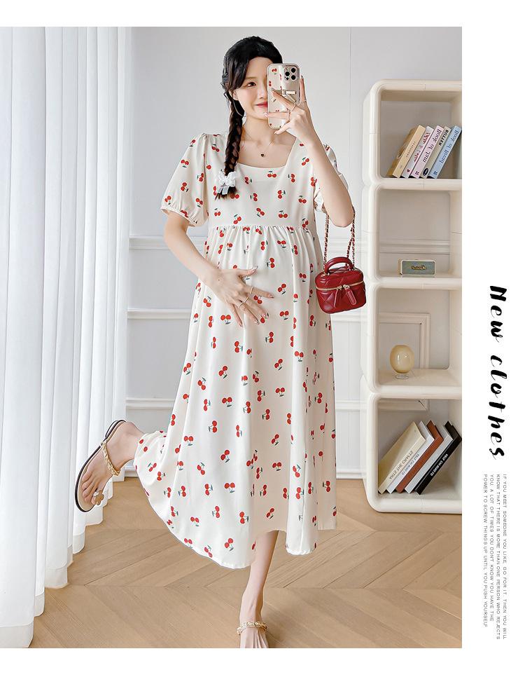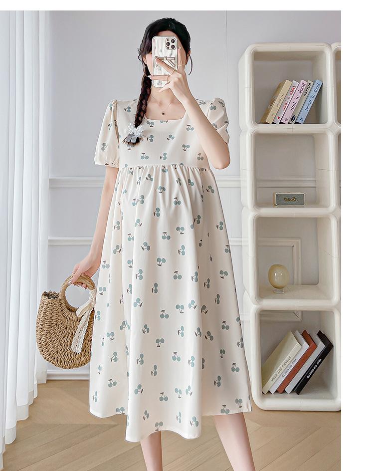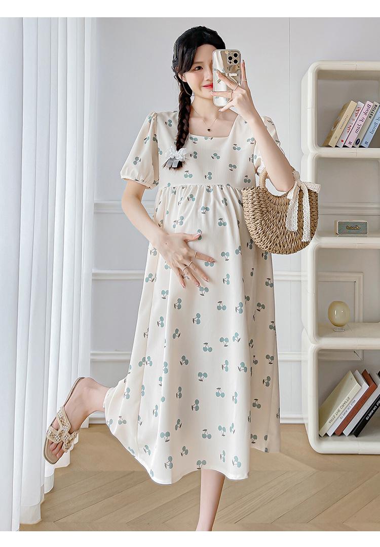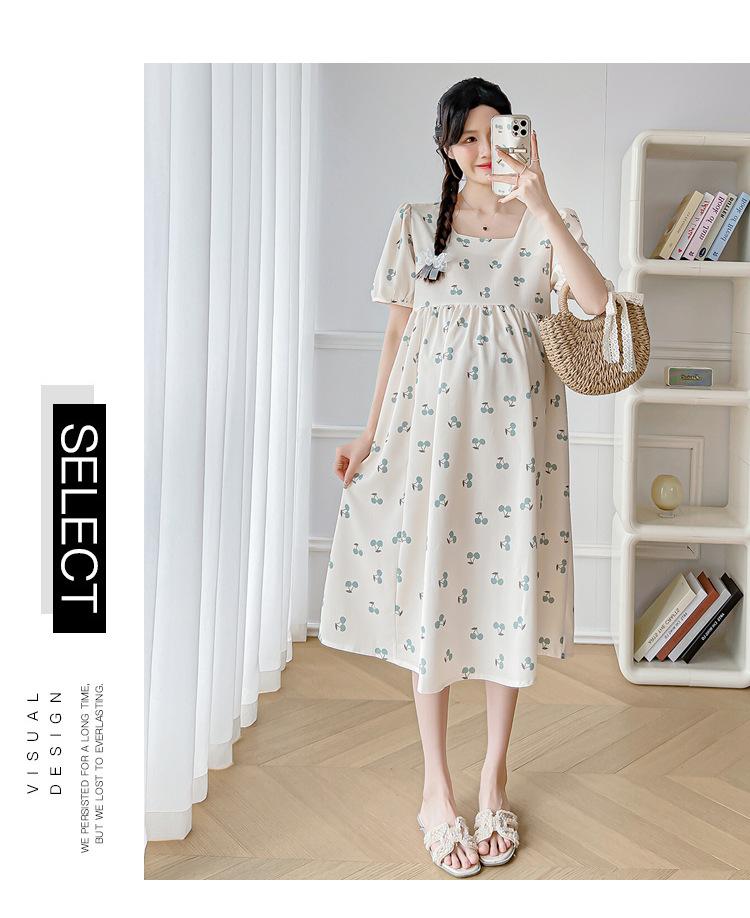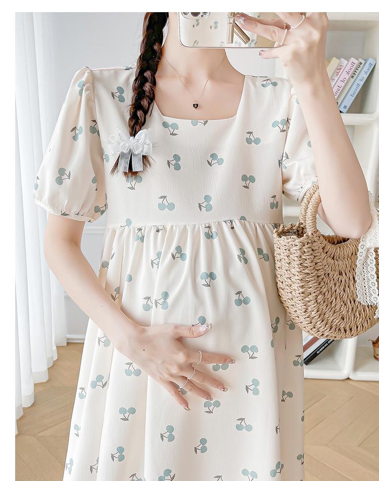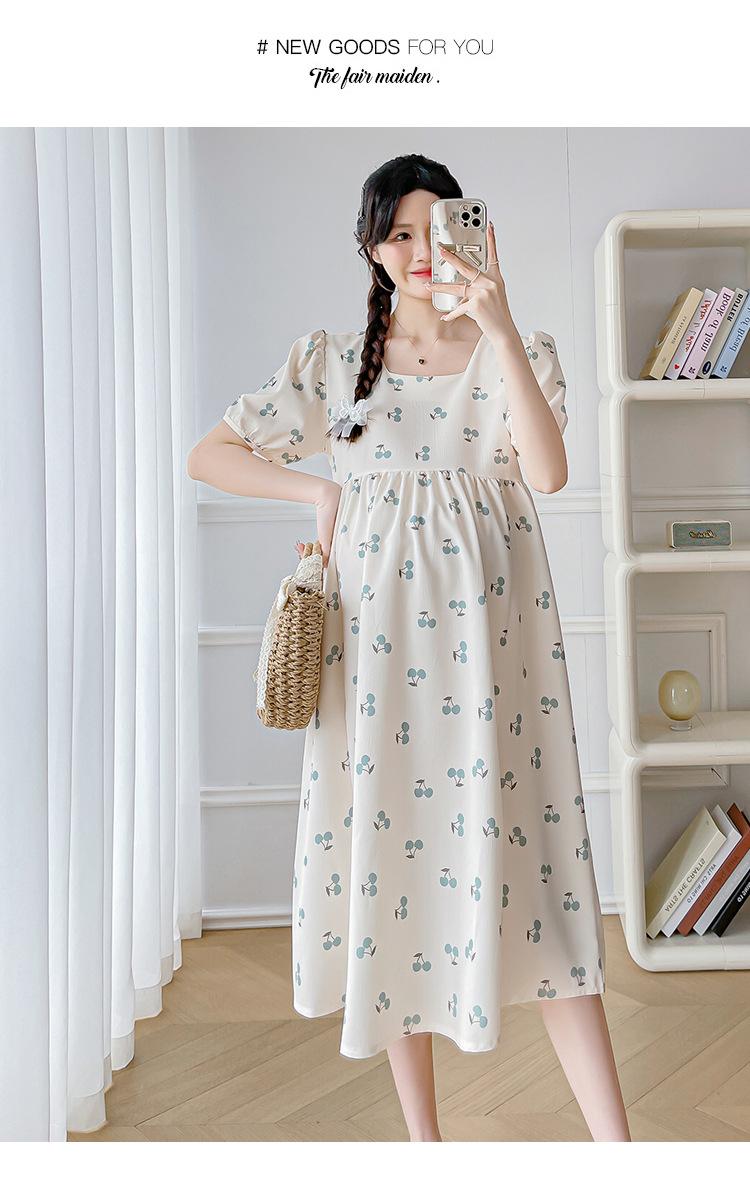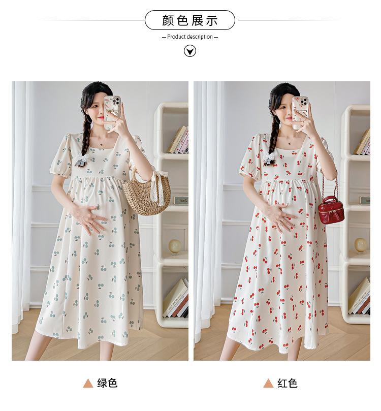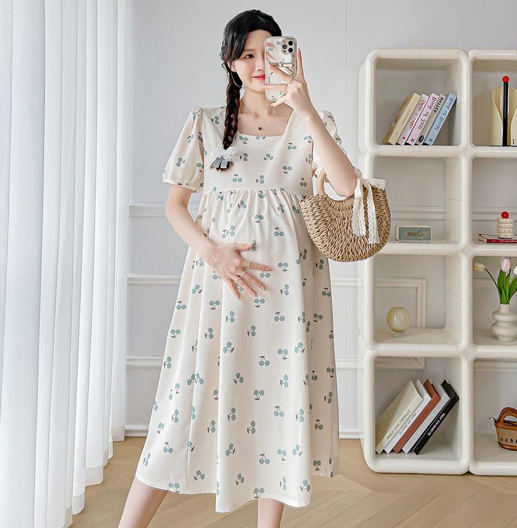 Vestido de Maternidad Verano Nueva Moda Fresco Cuello Cuadrado Media Longitud Suelto Cubre Vientre Talla Grande Vestido de Maternidad