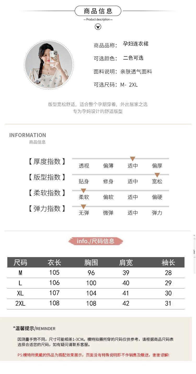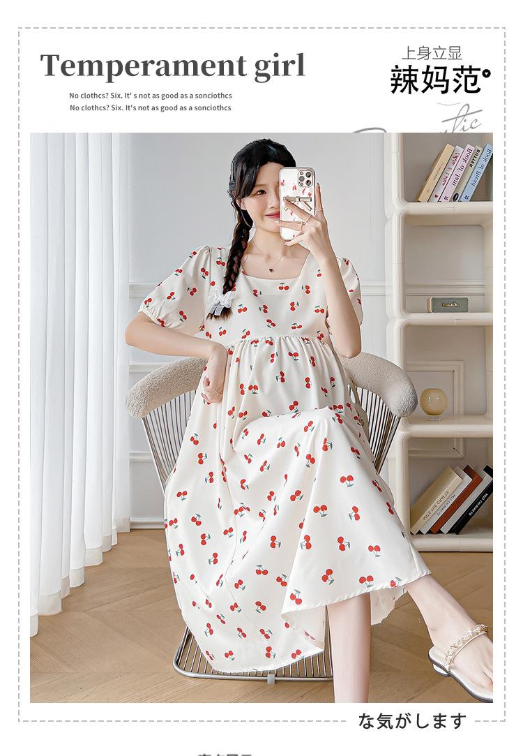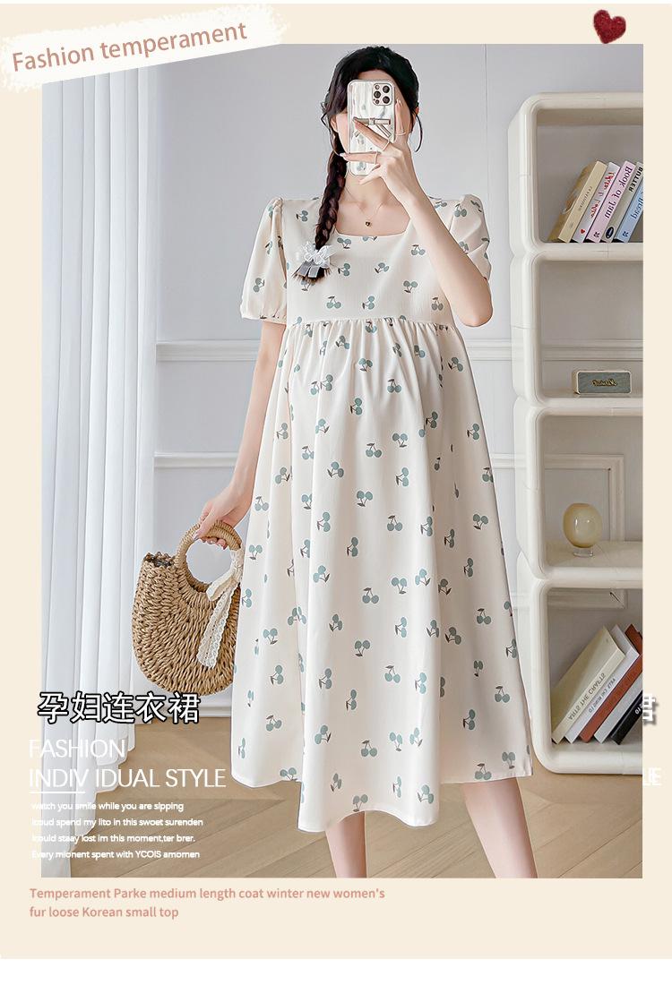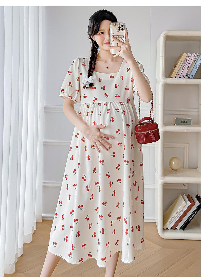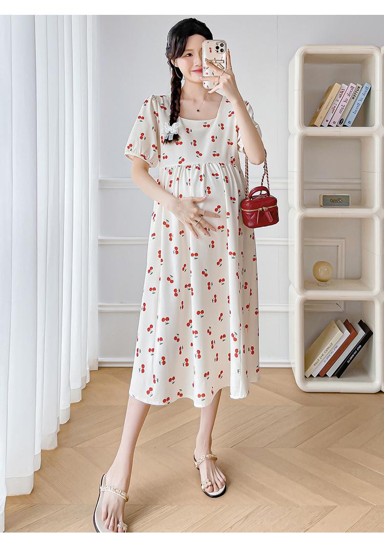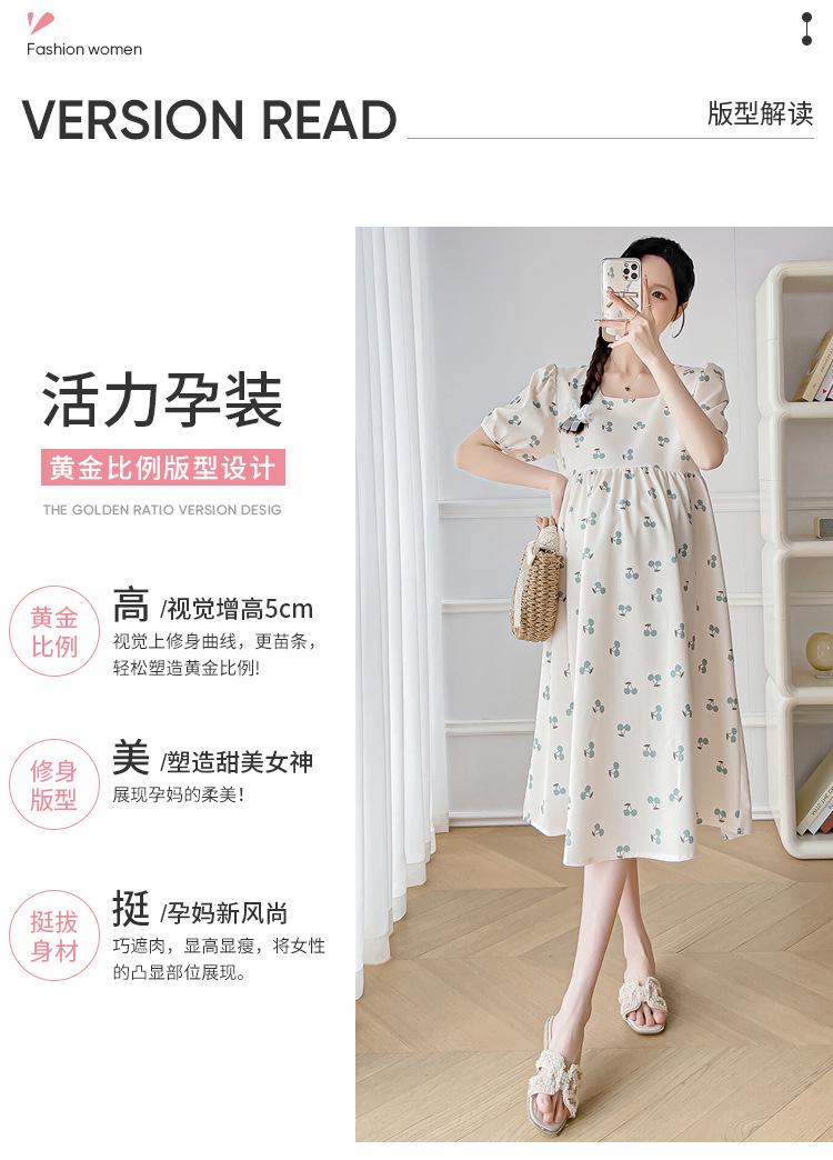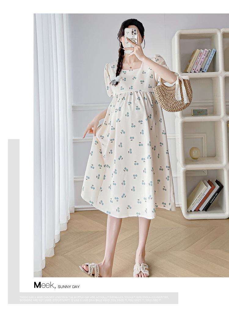 Vestido de Maternidad Verano Nueva Moda Fresco Cuello Cuadrado Media Longitud Suelto Cubre Vientre Talla Grande Vestido de Maternidad