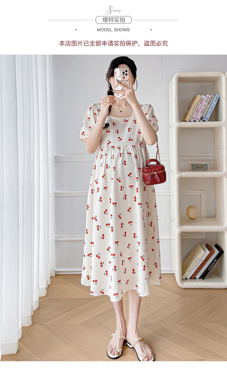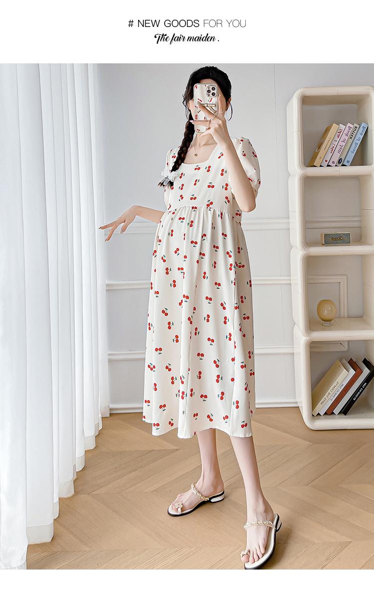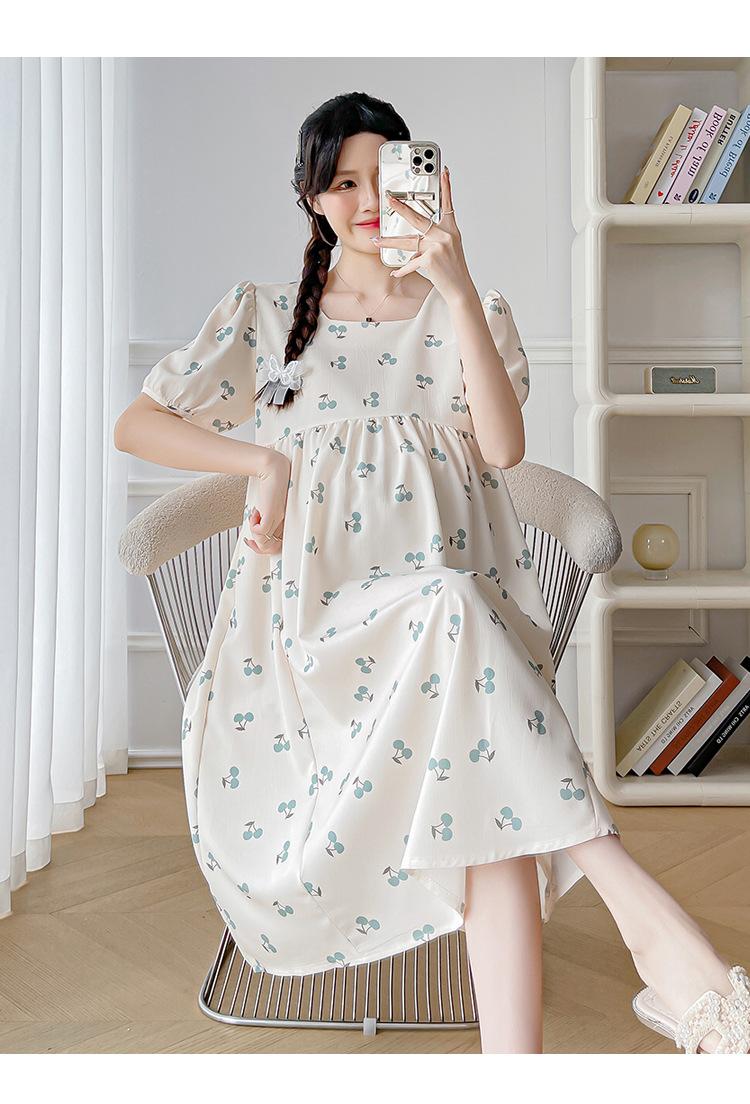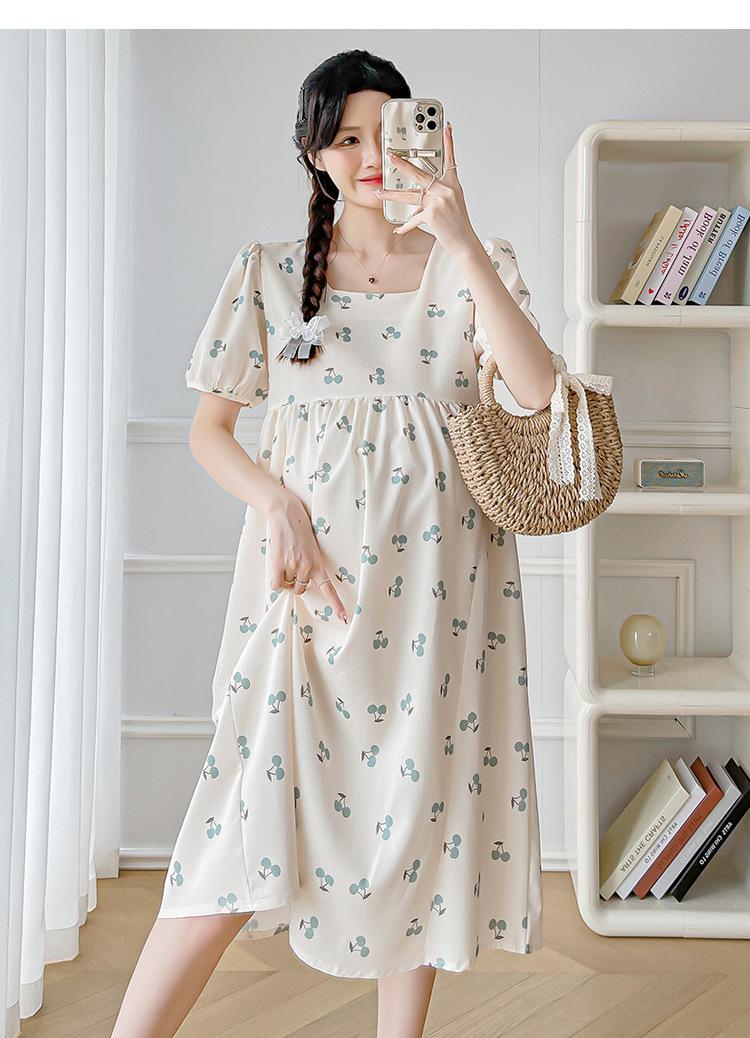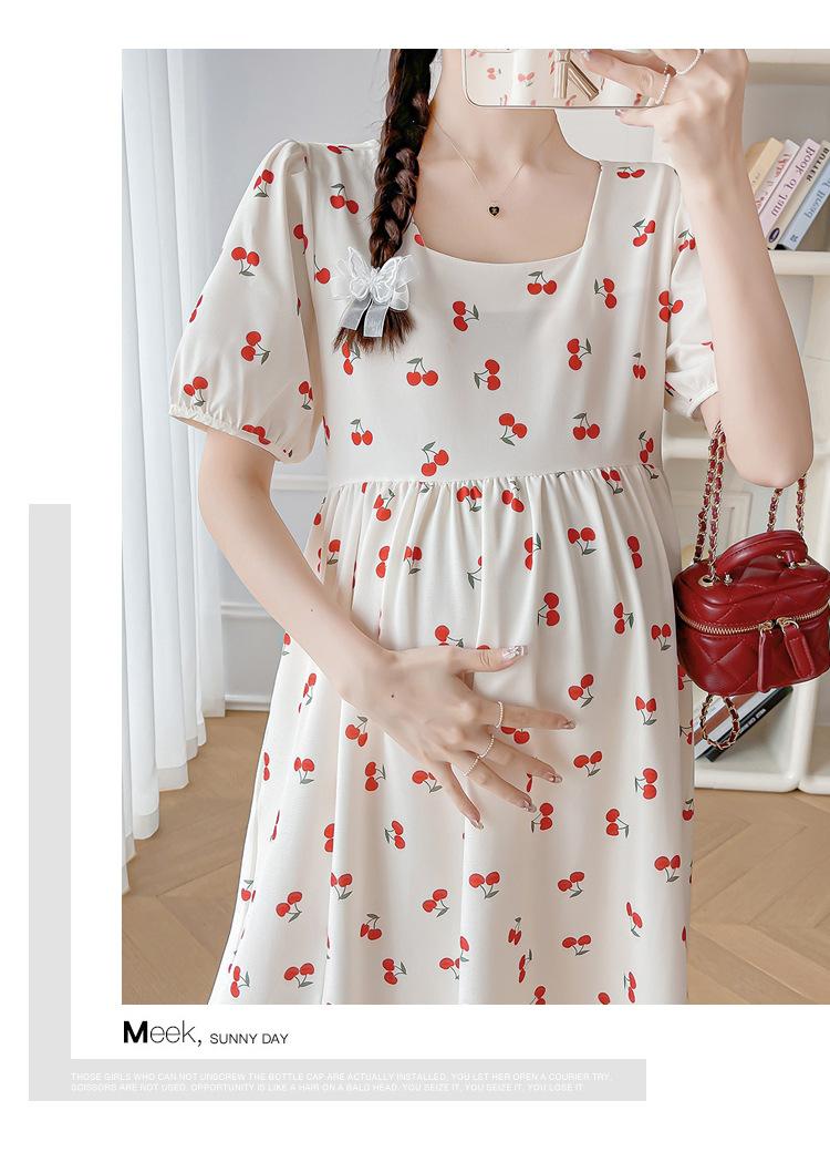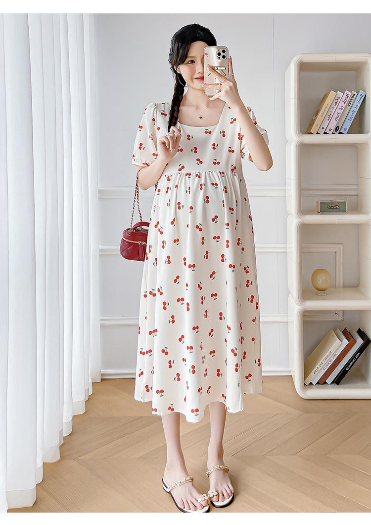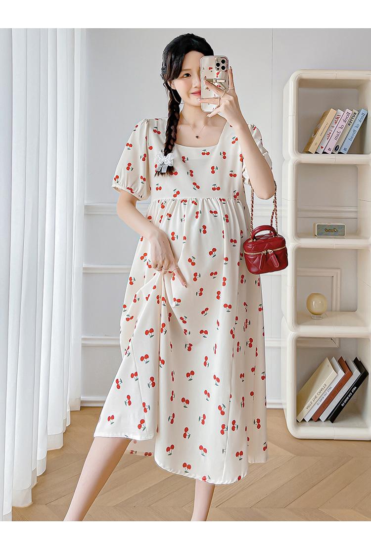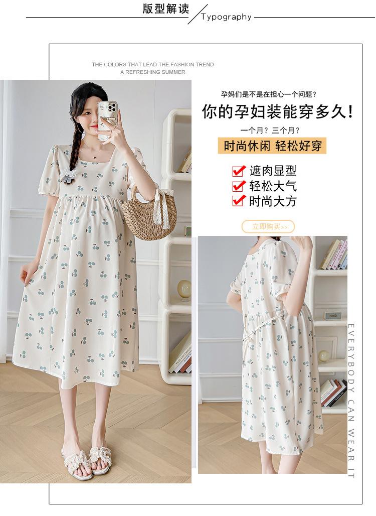 Vestido de Maternidad Verano Nueva Moda Fresco Cuello Cuadrado Media Longitud Suelto Cubre Vientre Talla Grande Vestido de Maternidad