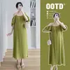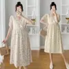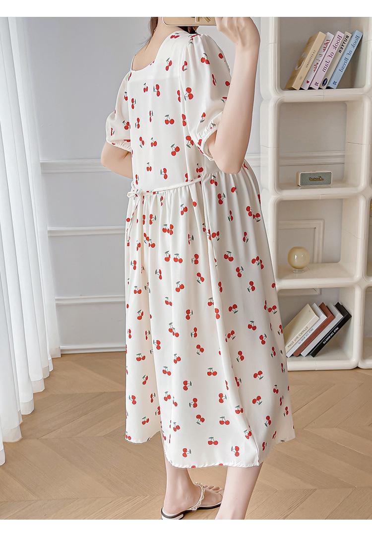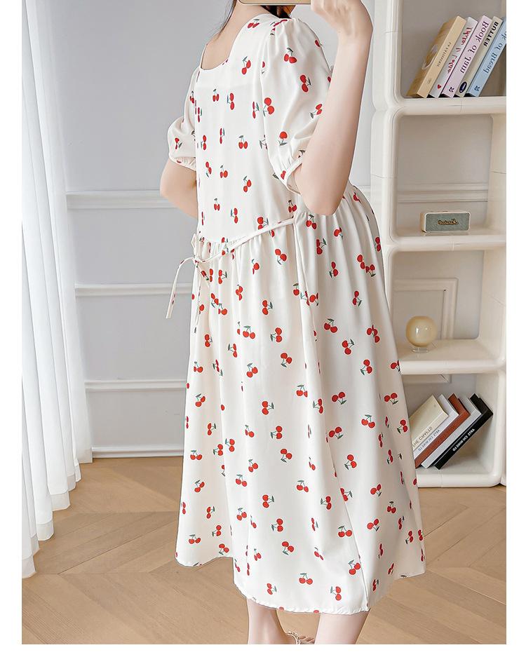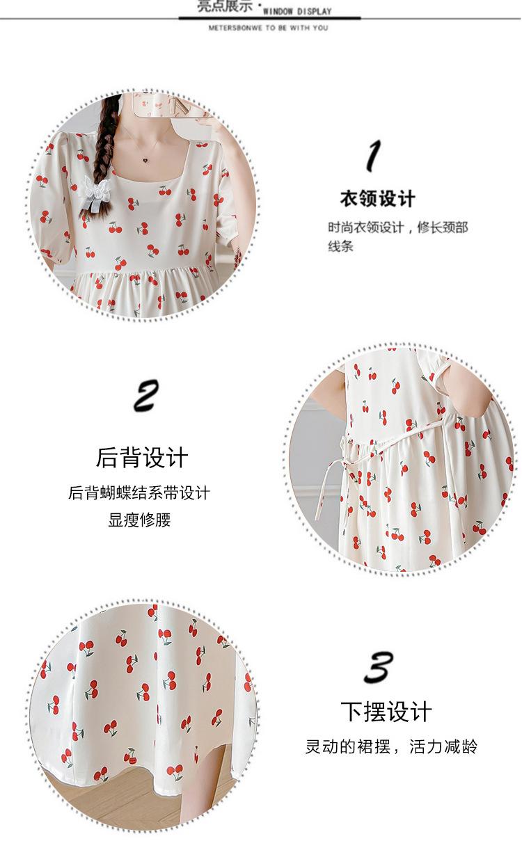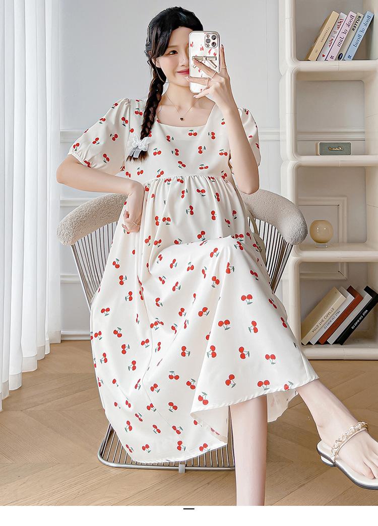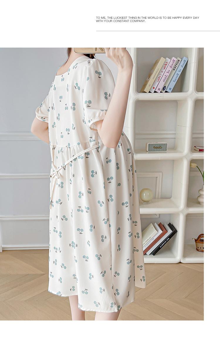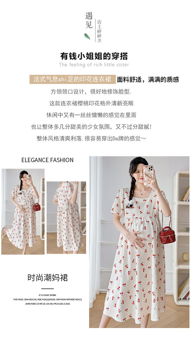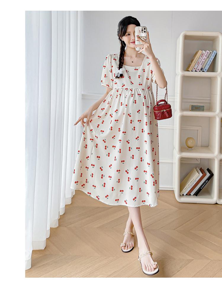 Vestido de Maternidad Verano Nueva Moda Fresco Cuello Cuadrado Media Longitud Suelto Cubre Vientre Talla Grande Vestido de Maternidad