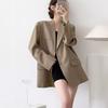 2025 Primavera y Otoño Nuevo Top de Traje Caqui para Mujer Estilo Holgado Sensación Perezosa Casual Top de Traje de Papá