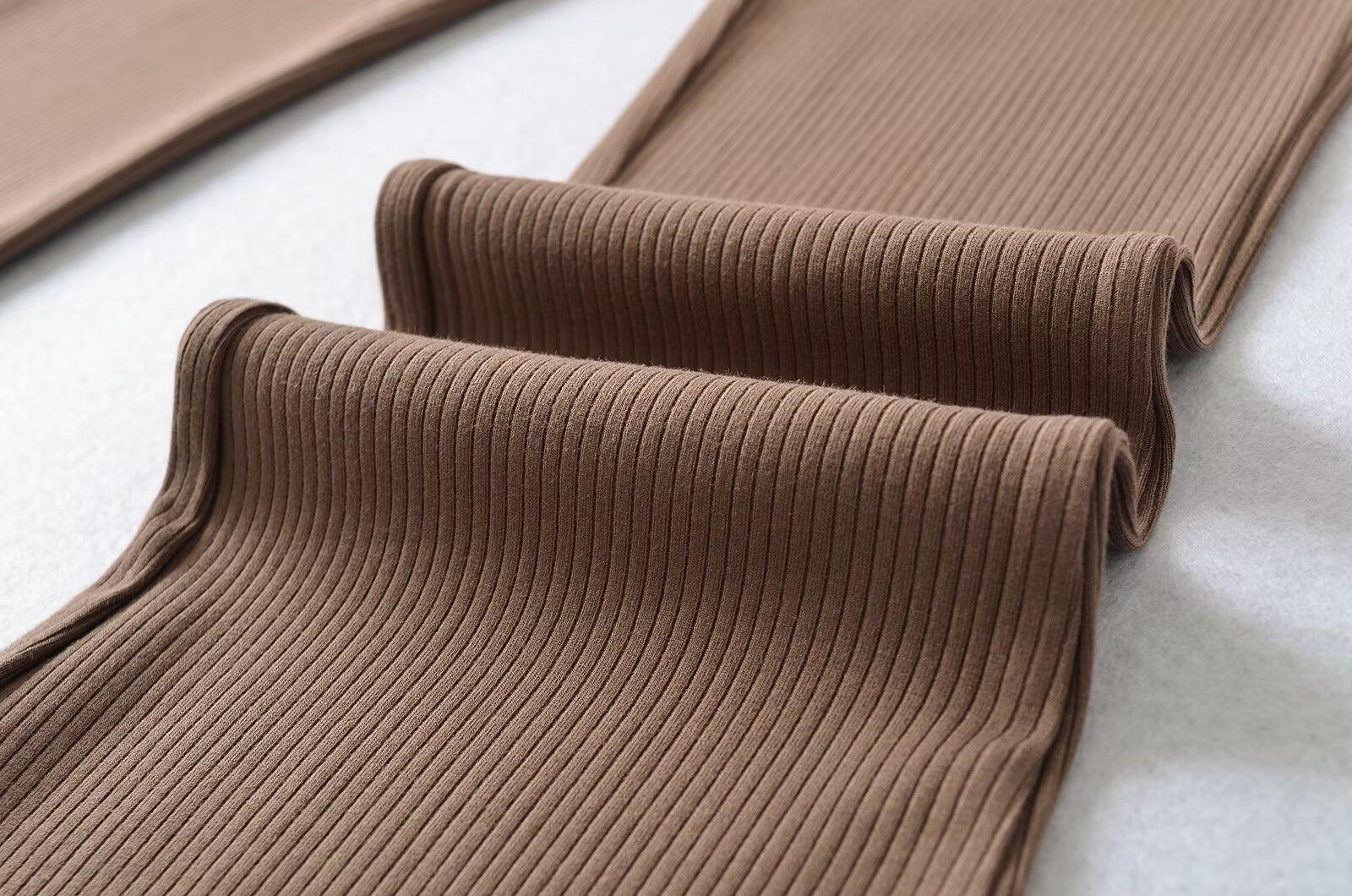 Mocha brown top, Mocha brown pants, Black top, Black pants