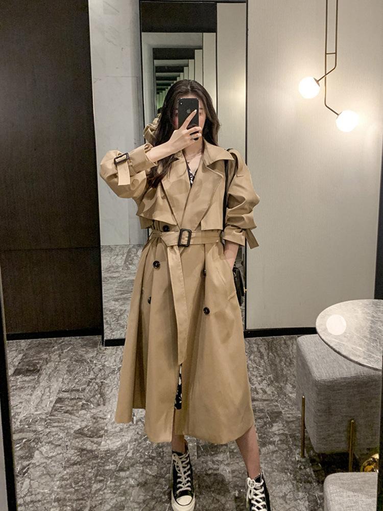 Abrigo Cortavientos para Mujer de Estilo Coreano Nuevo Transfronterizo, Moda Commuter, Largo Medio Sobre la Rodilla, Elegante, para Hombre Pequeño, Ropa de Trabajo