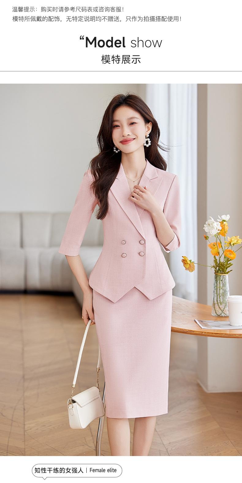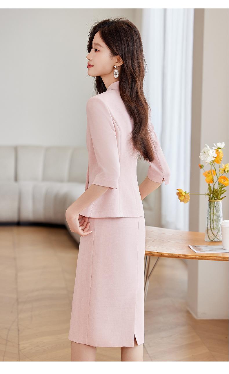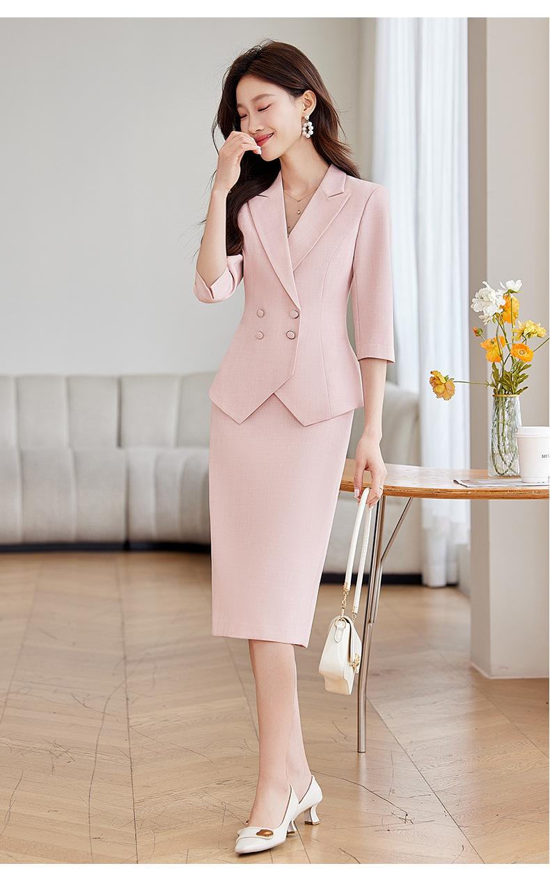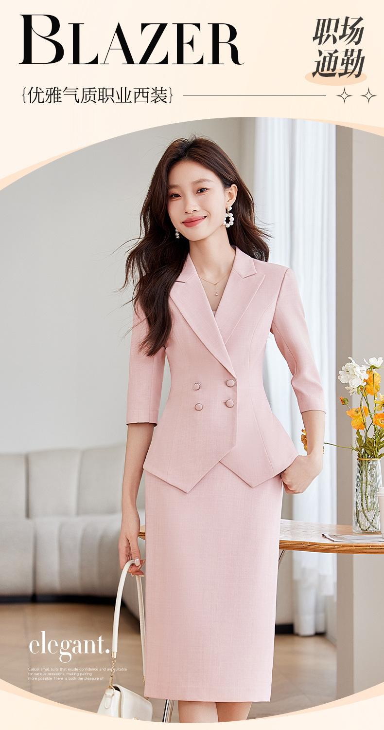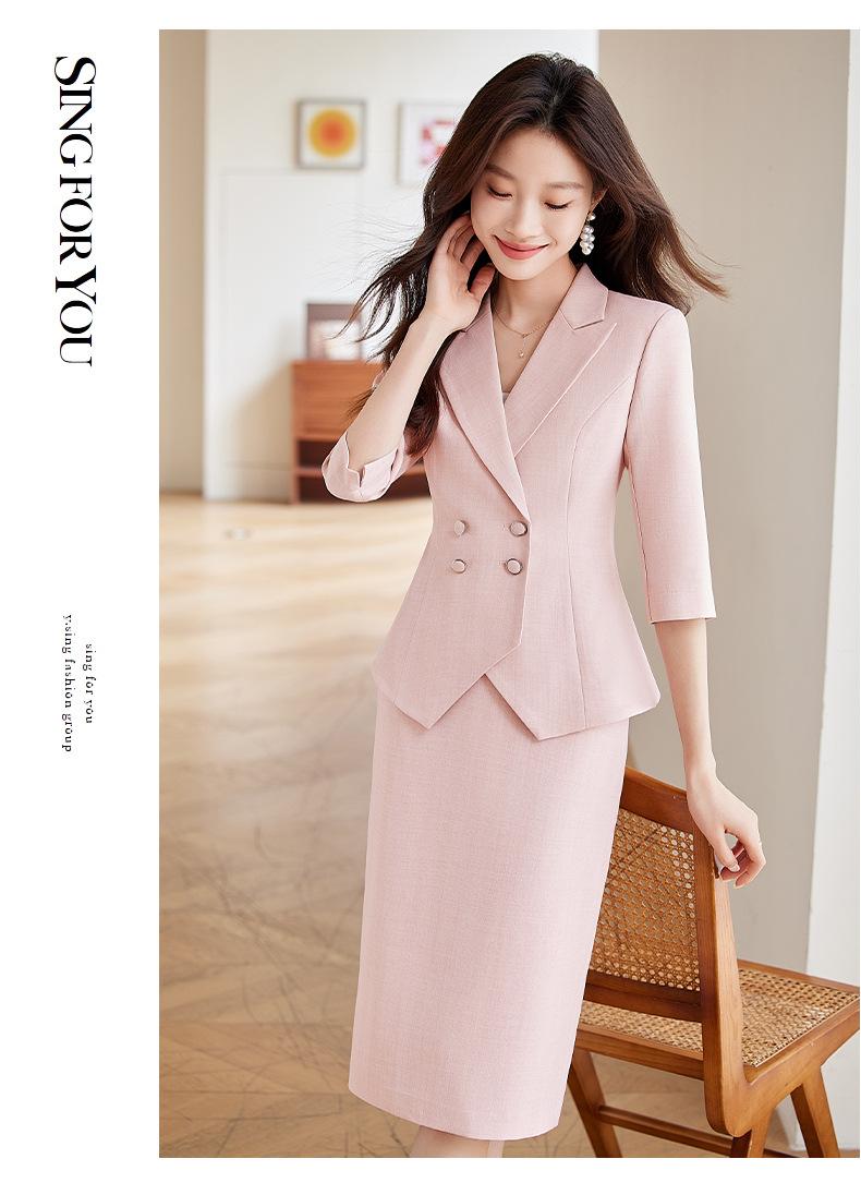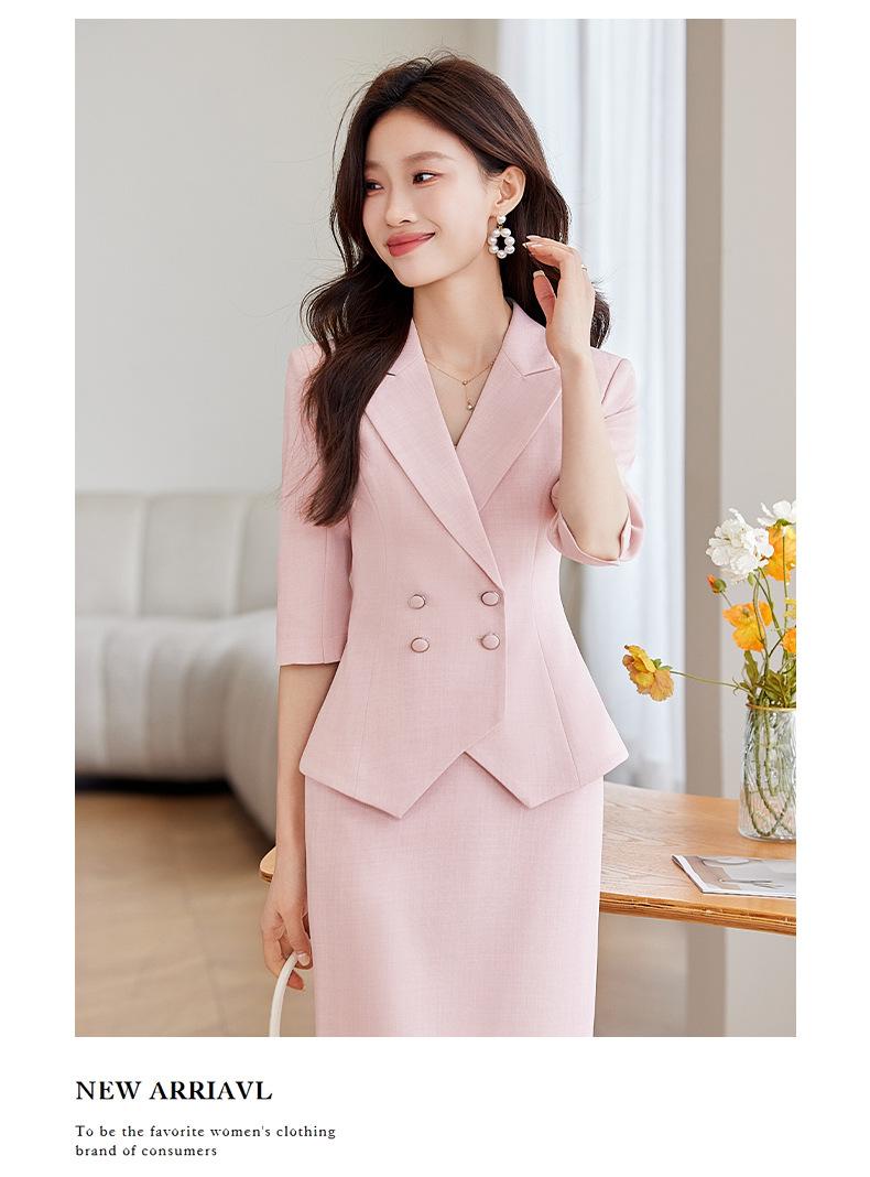 Rosa Manga Siete Puntos Chaqueta Cuello Sastre Traje Pequeño Pantalón Falda Profesional Casual Primavera Verano Otoño Nueva Moda