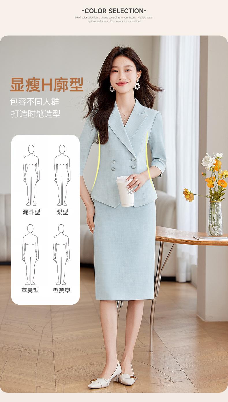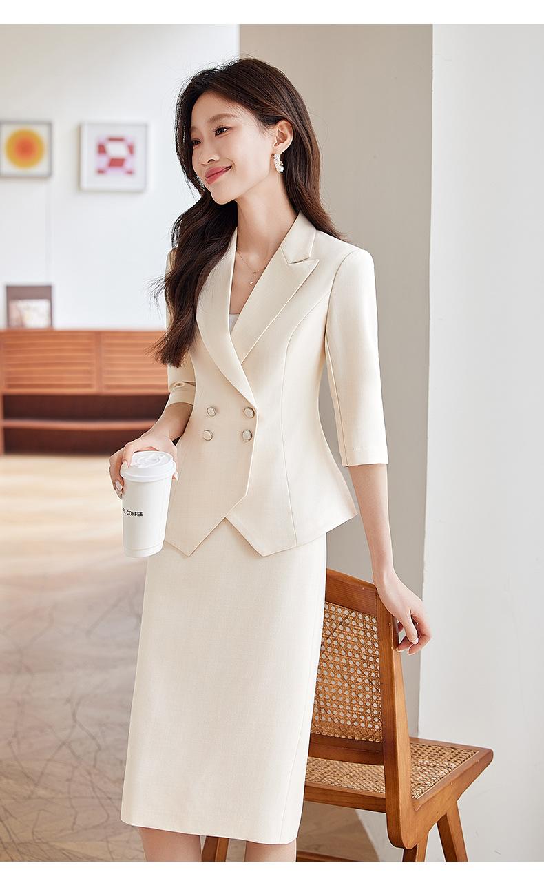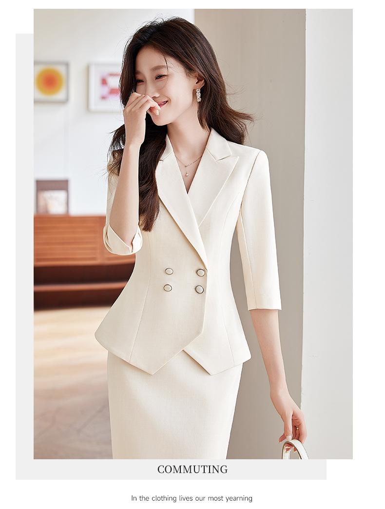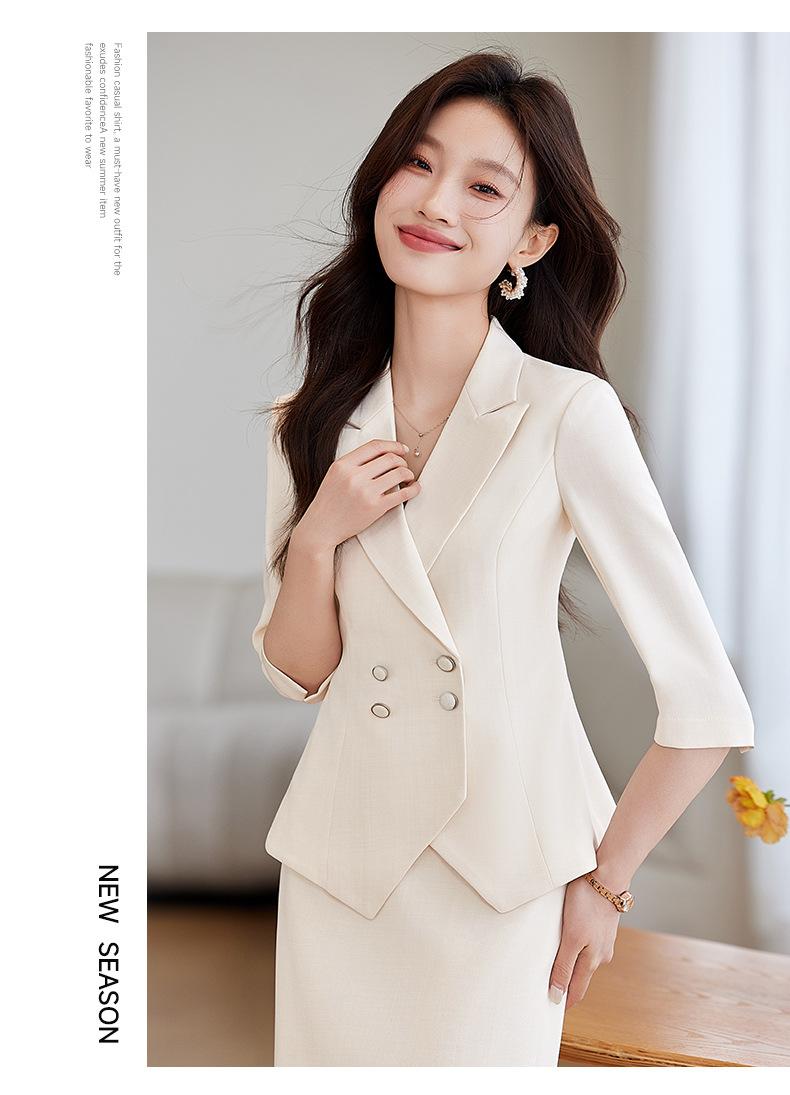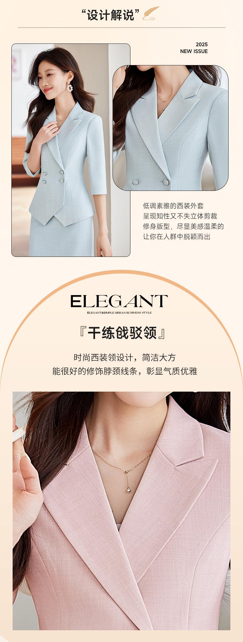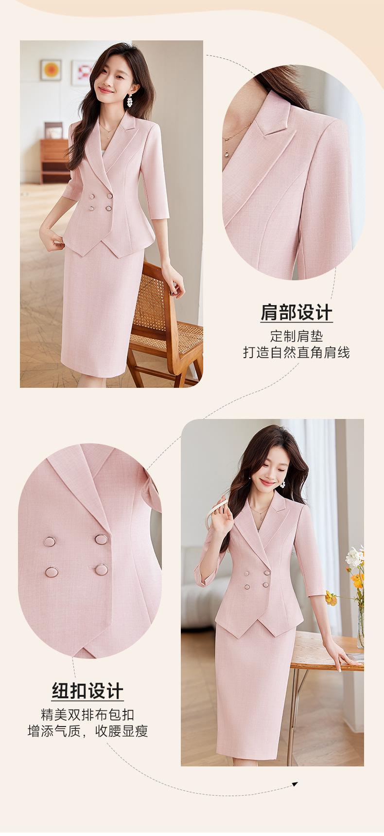 Rosa Manga Siete Puntos Chaqueta Cuello Sastre Traje Pequeño Pantalón Falda Profesional Casual Primavera Verano Otoño Nueva Moda