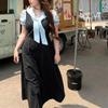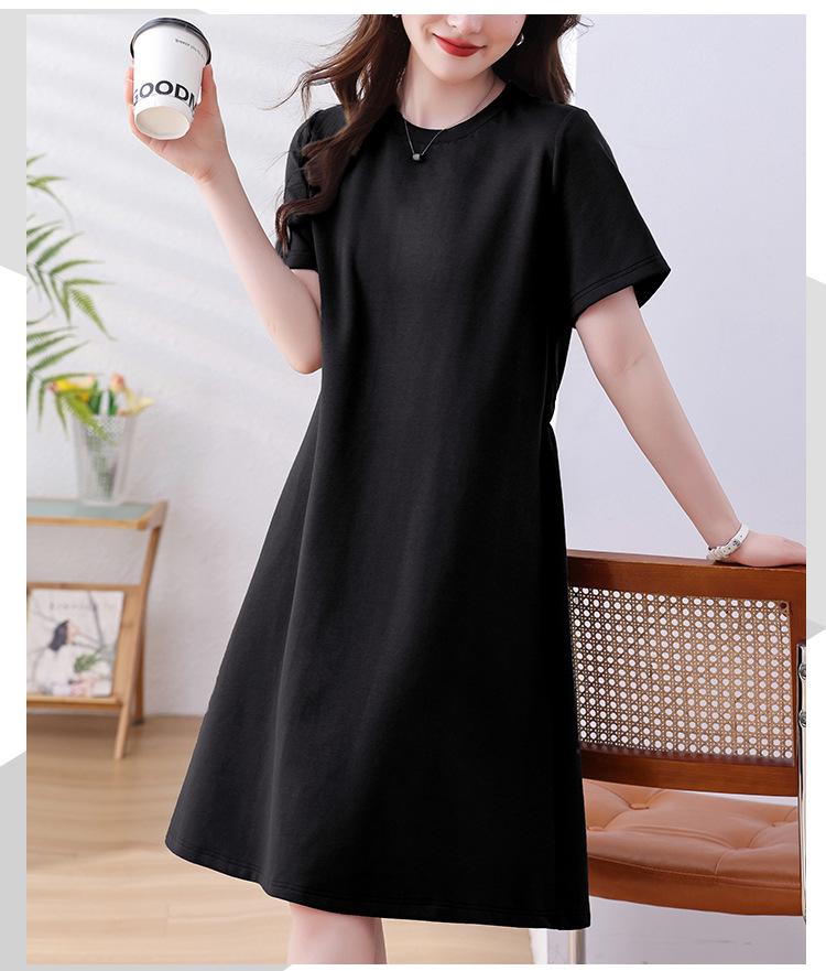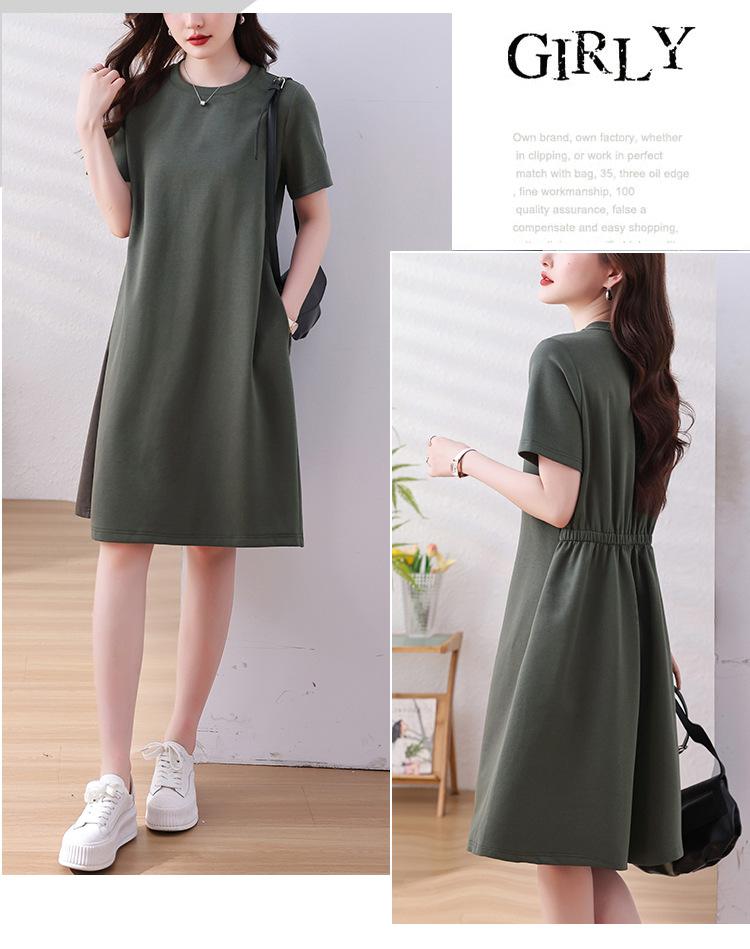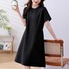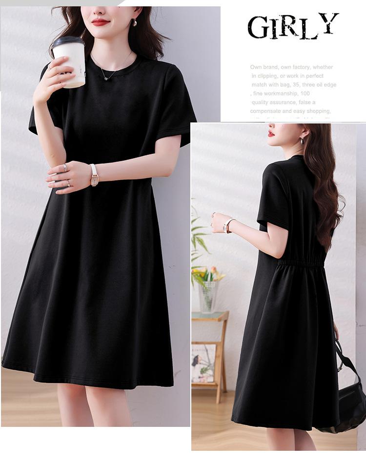 Moda talla grande Vestido elegante Mujer 2025 Verano Nuevo Francés Simple Suelto Cintura Adelgazante Falda línea A