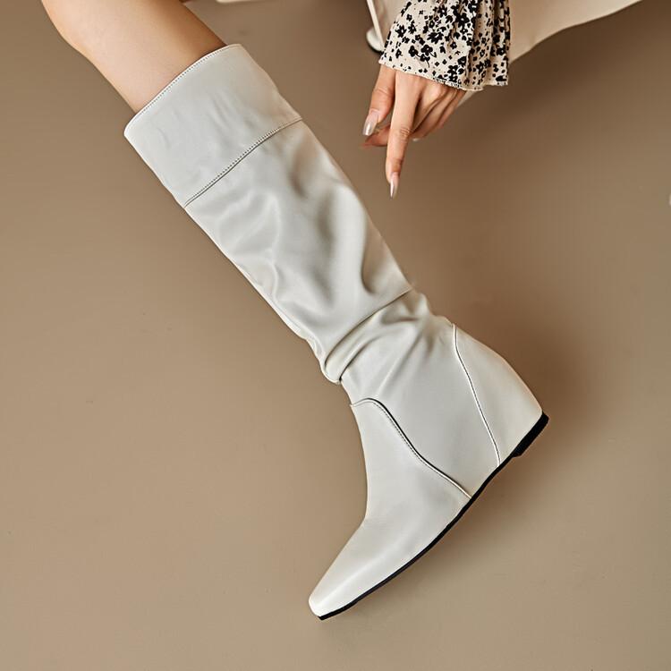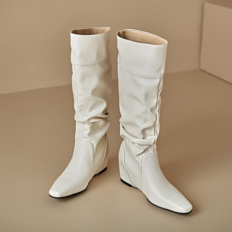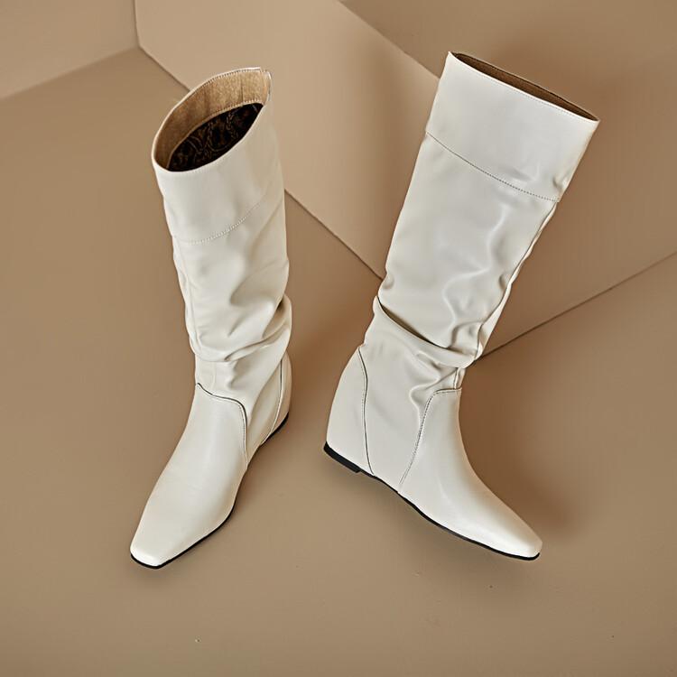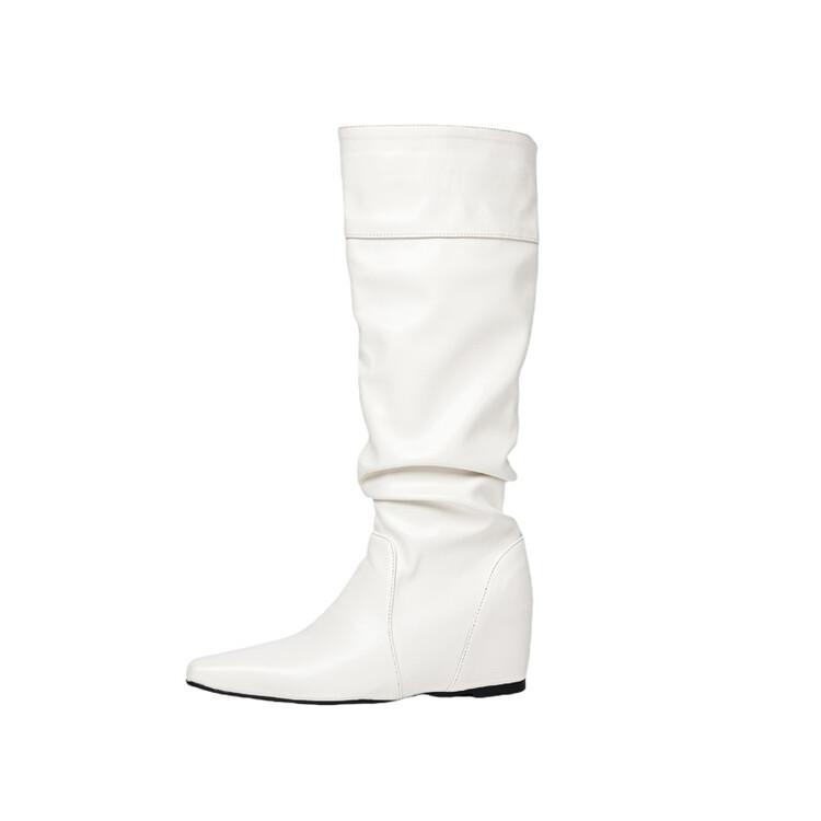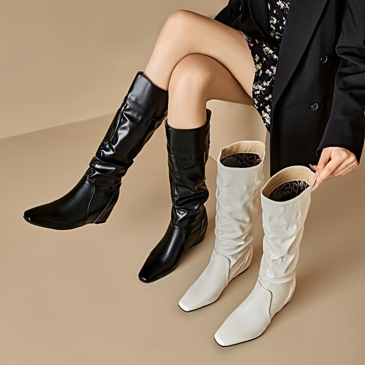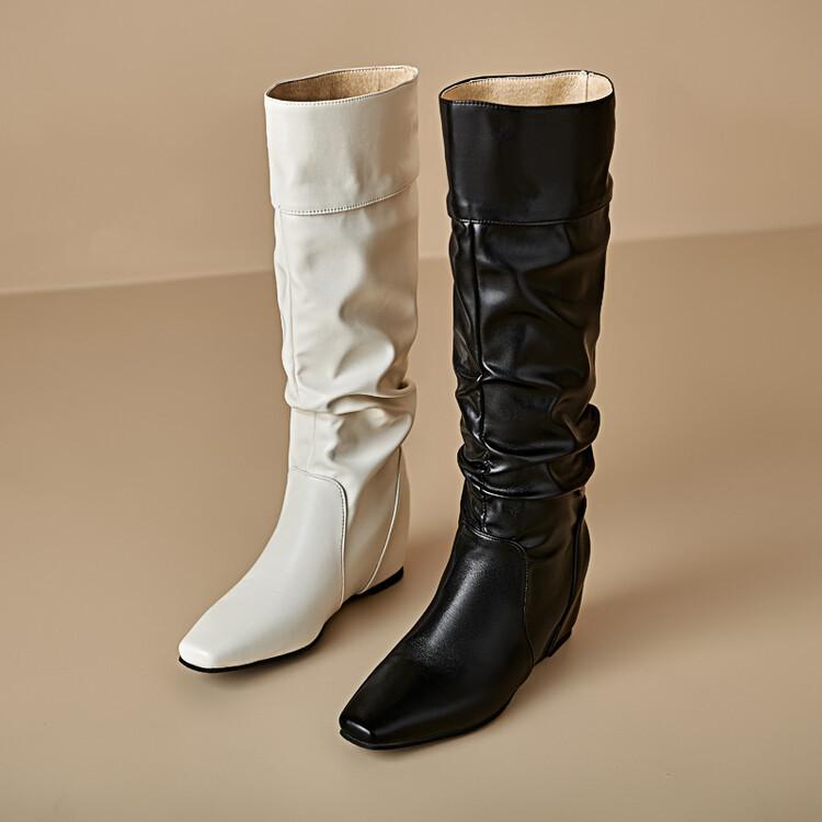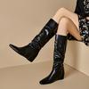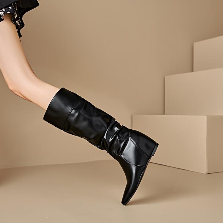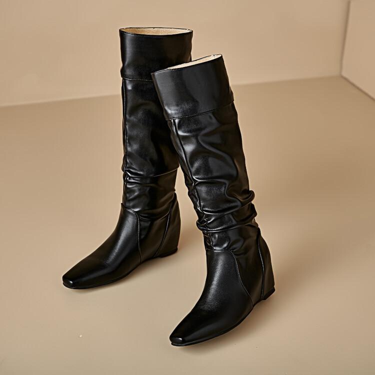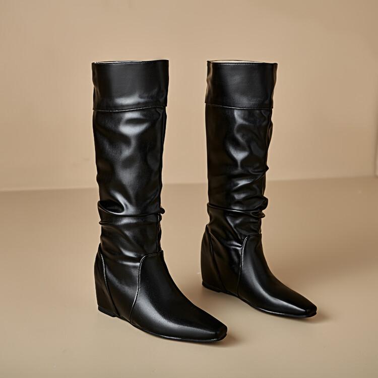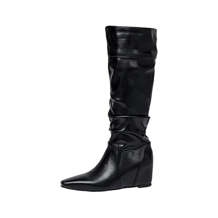 Botas de Mujer Talla 46 Transfronterizas Suela de Goma Cuña Botas Altas Manga Negra Color Sólido Amazon AliExpress Botas de Moda