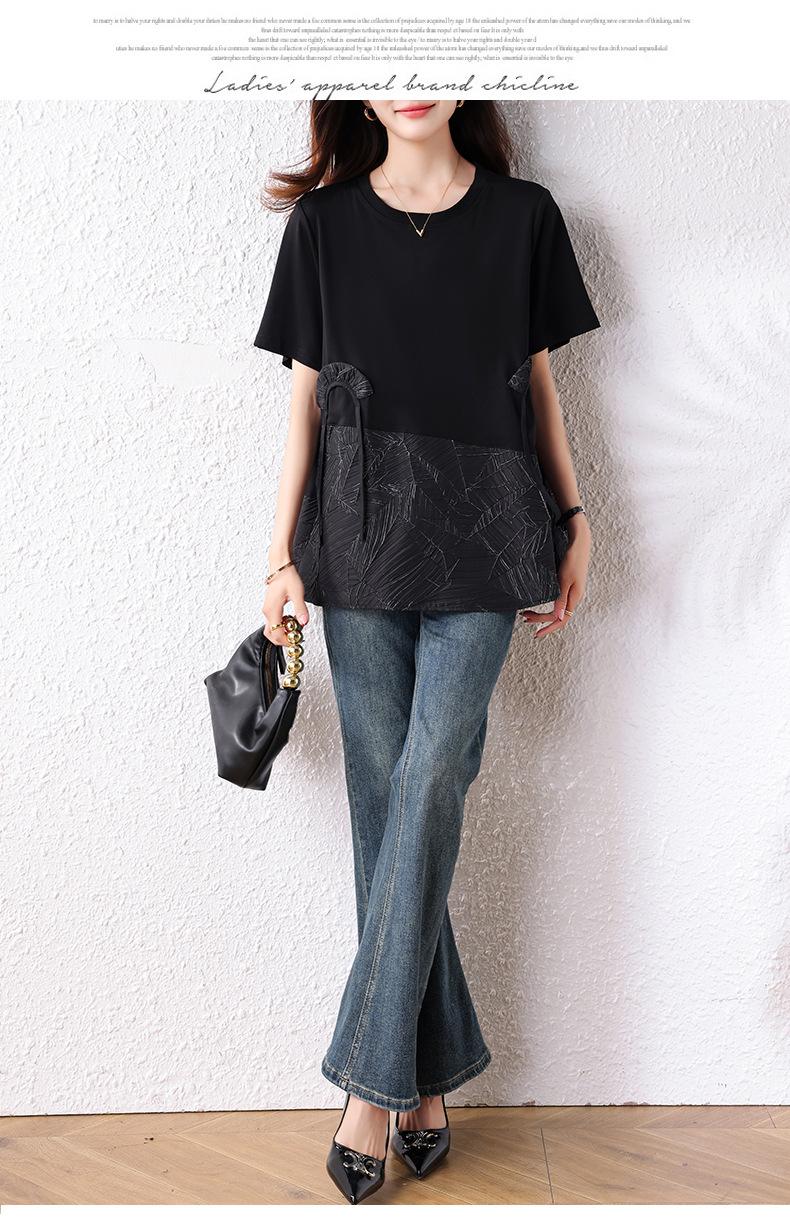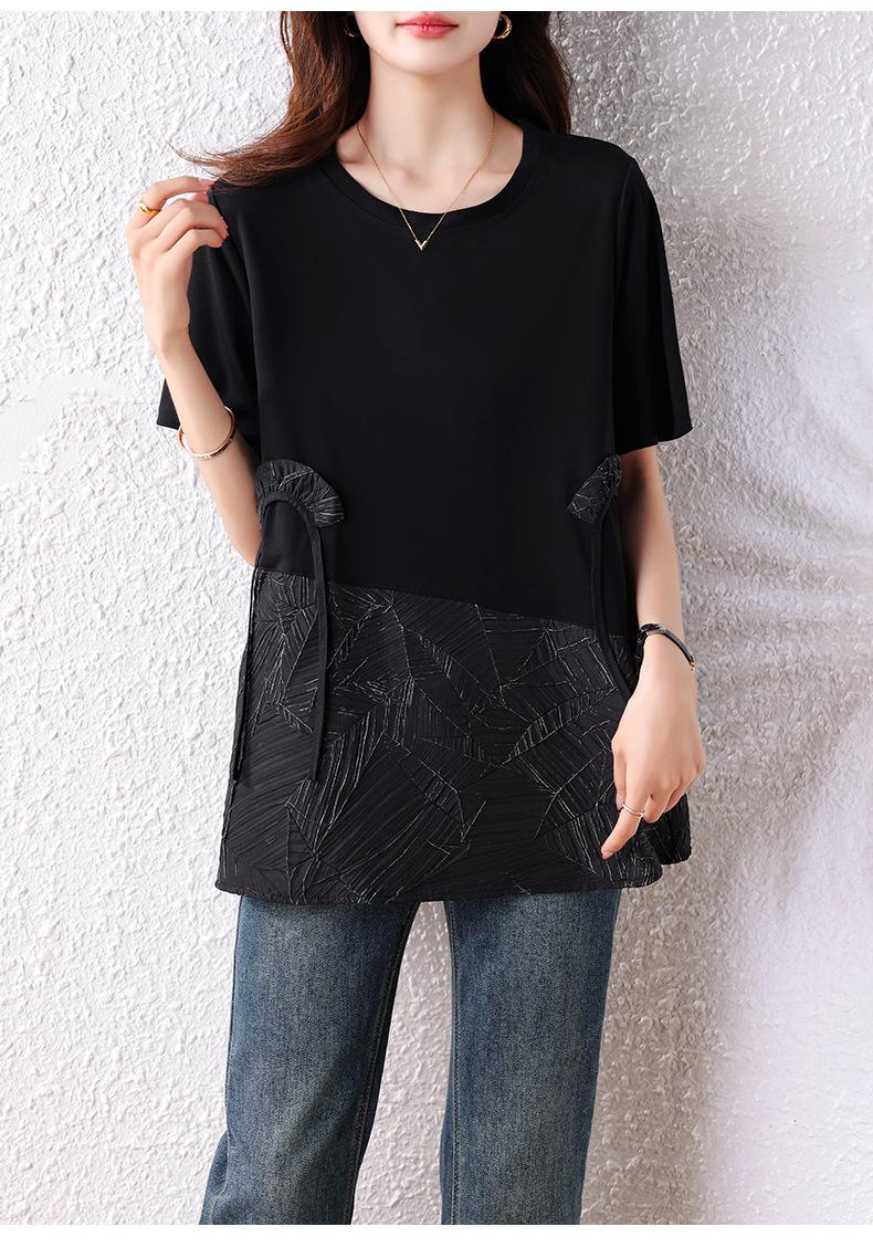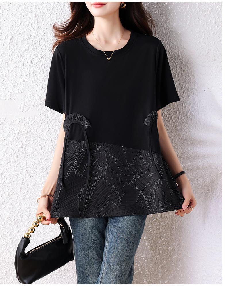 Camisa de estilo extranjero para chica gordita, sencilla, holgada, de moda de verano 2025, top fino de talla grande con temperamento real