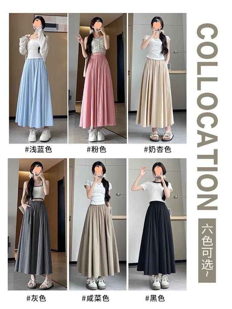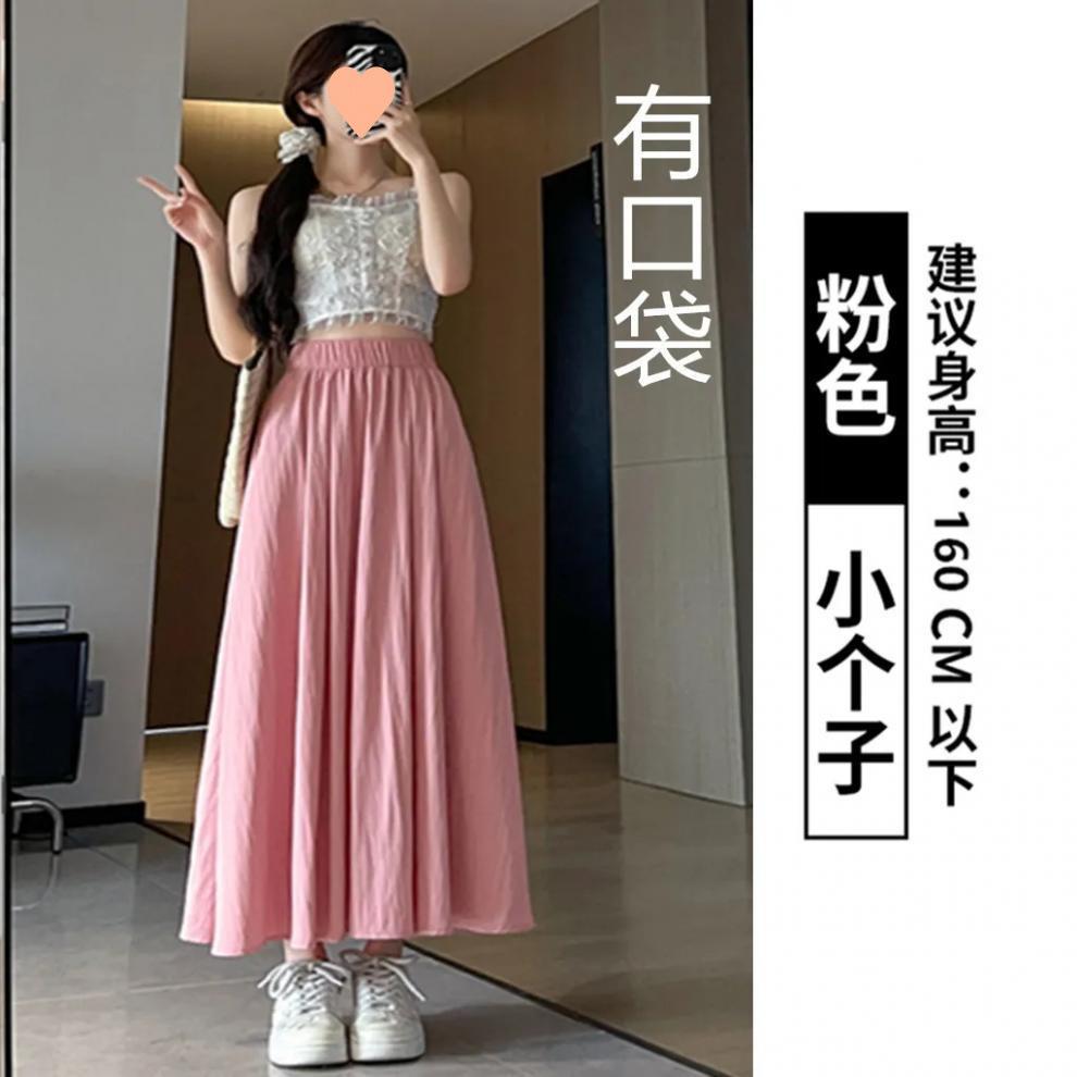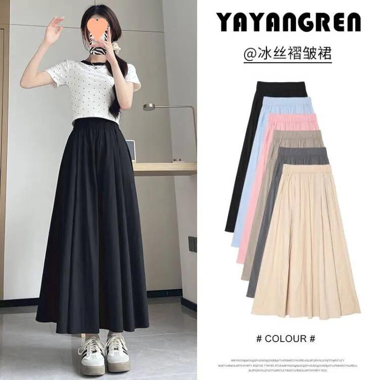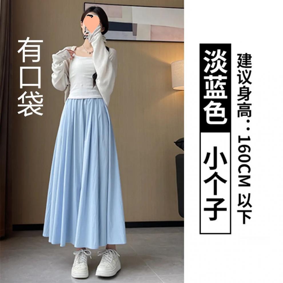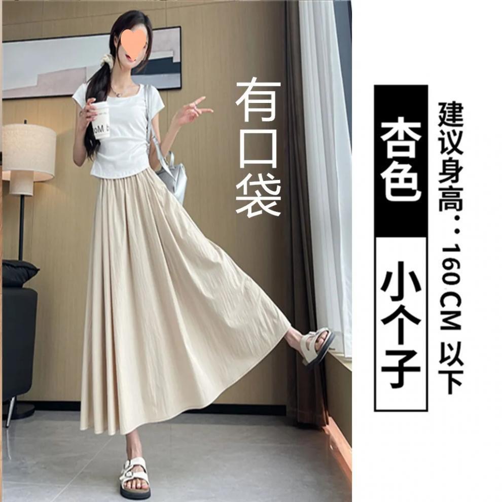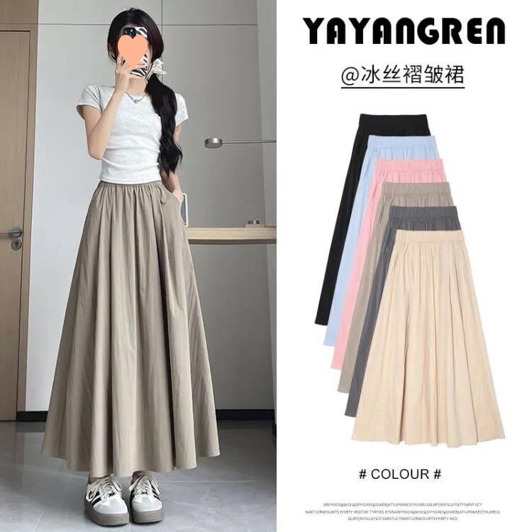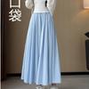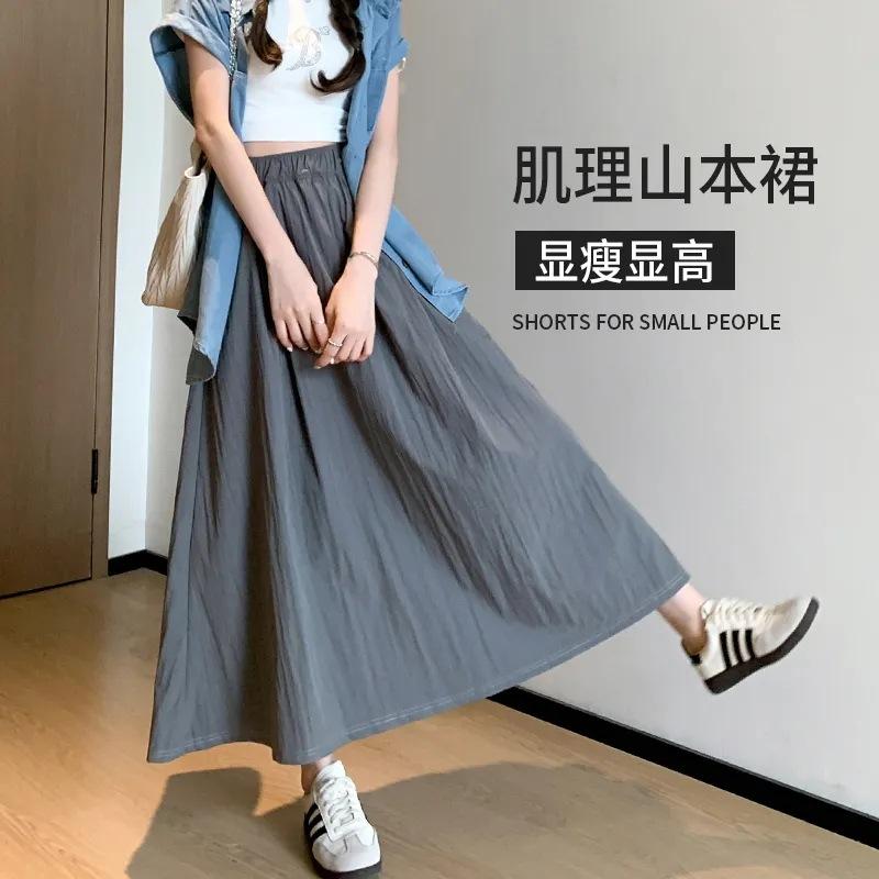 Primavera y Verano Nueva Falda Yamamoto A-line Adelgazante de Cintura Alta con Pliegues y Bolsillo 2025 Falda Larga Fresca para Mujer