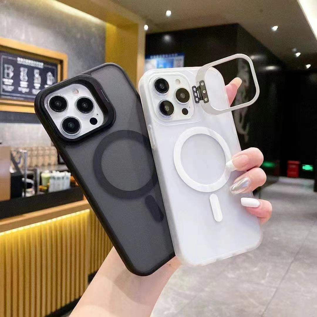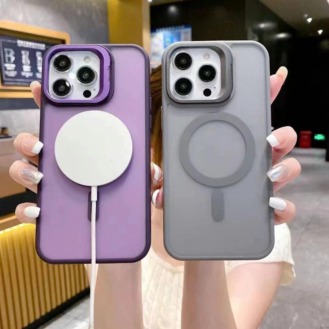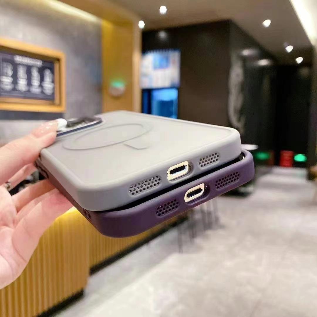 Adecuado para Funda de Teléfono Móvil Apple 15Pro iPhone14Promax con Soporte para Lente Cubierta Protectora Sensación de Piel Funda de Succión Magnética