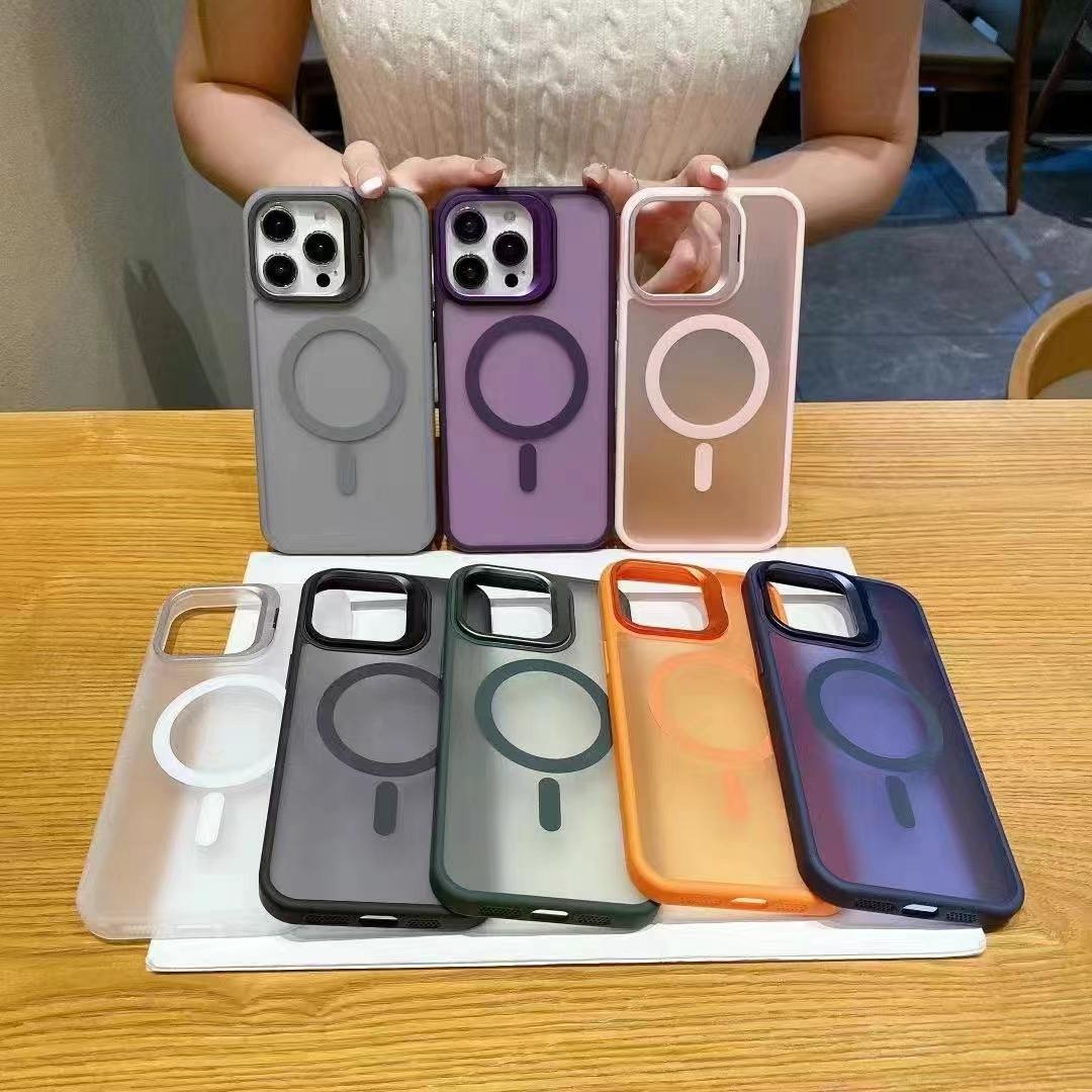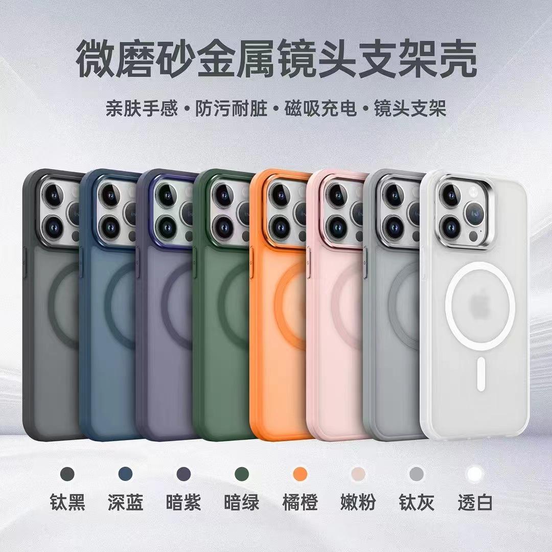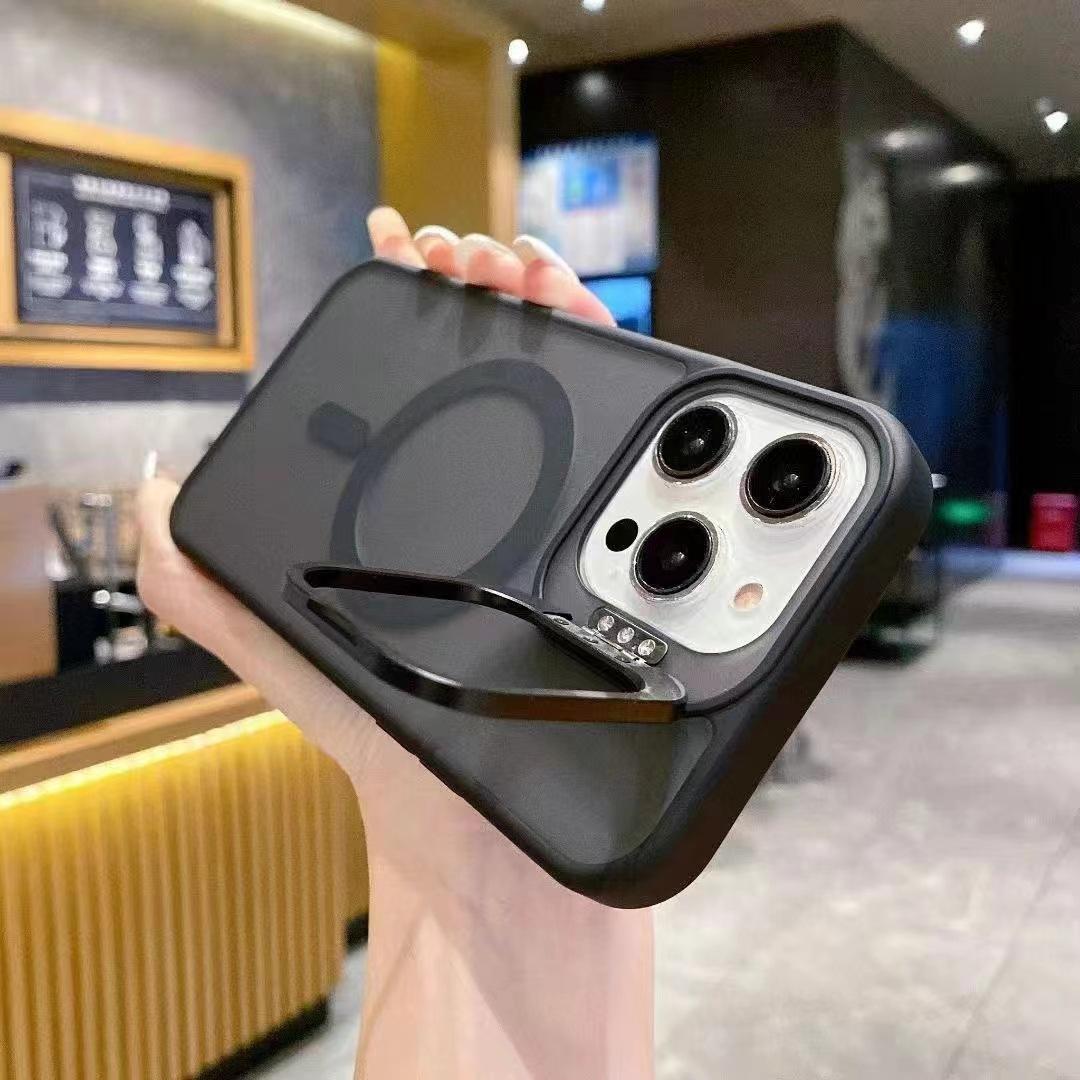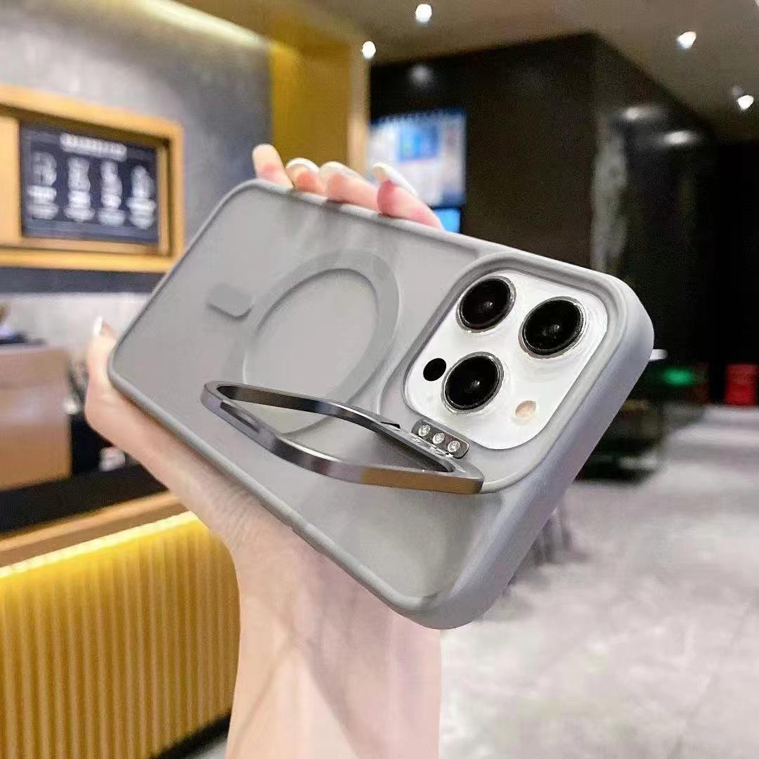 Adecuado para Funda de Teléfono Móvil Apple 15Pro iPhone14Promax con Soporte para Lente Cubierta Protectora Sensación de Piel Funda de Succión Magnética