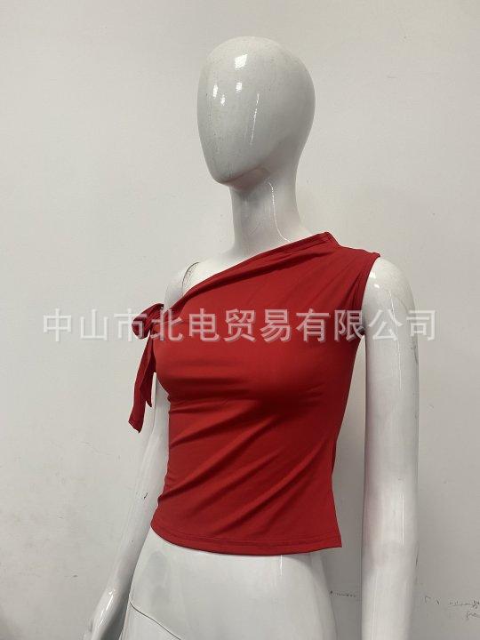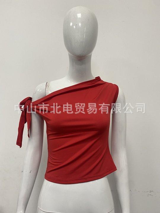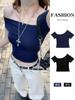 Disponible Verano 2025 Nueva Camiseta Sexy Combinable con Hombros Descubiertos Estilo Europeo y Americano Top Dorado con Tirantes para Mujer