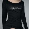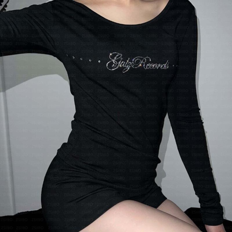 Nueva Moda Japonesa y Coreana Casual Diario Ins Letras de Diamante Sexy Spice Girls Puro Deseo Maduro Slim Manga Larga Camiseta Mujer