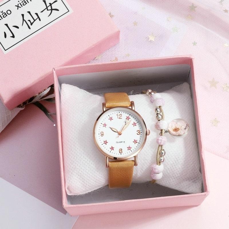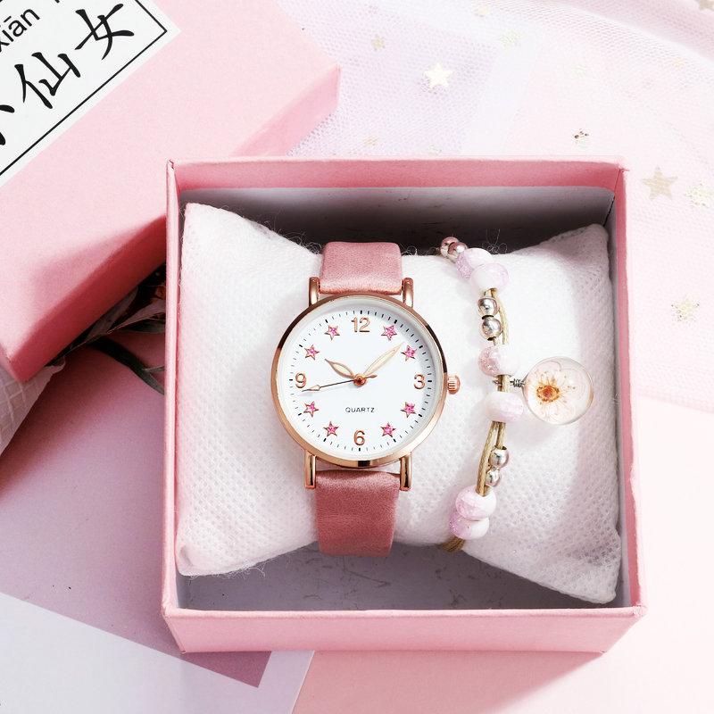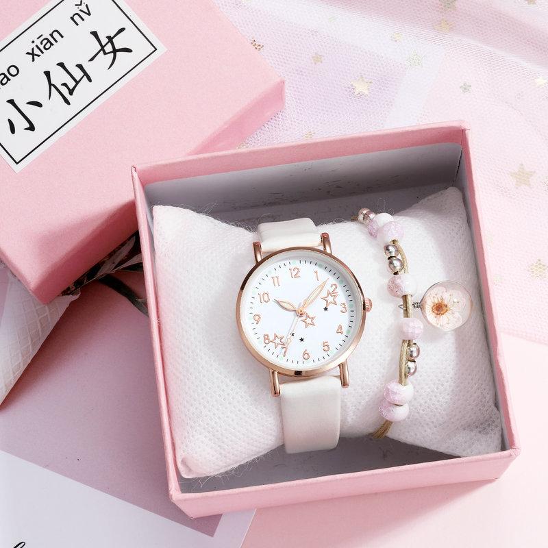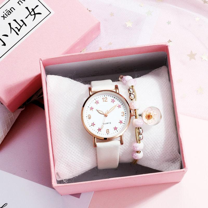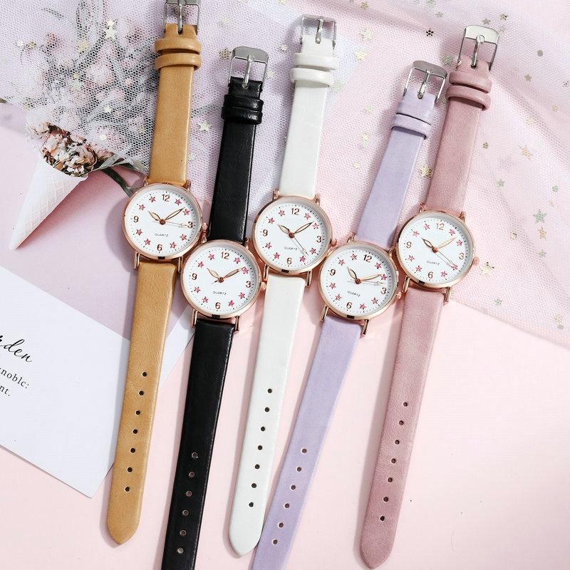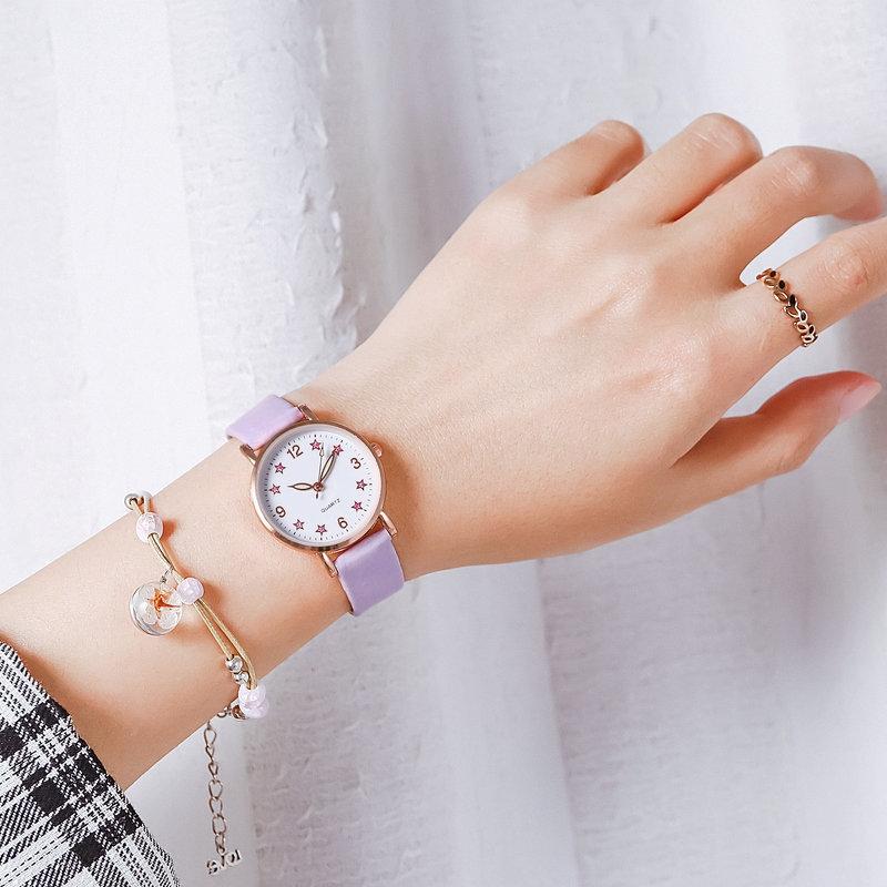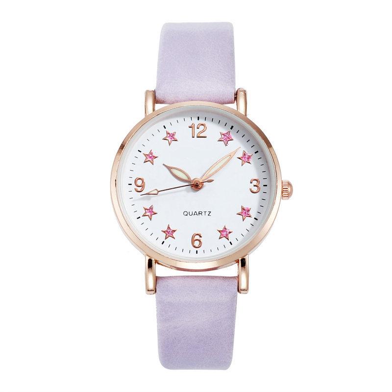 Silver powder five-pointed star watch