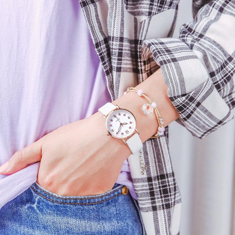 Reloj de Pulsera para Estudiante de Mujer Estilo Coreano Simple Moda Combinable Corazón de Chica a la Moda Luminoso Resistente al Agua para la Vida Reloj de Cinturón para Mujer Estilo Mori