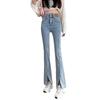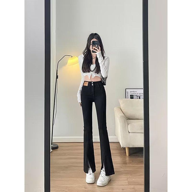 Jeans Micro-Acampanados de Cintura Alta con Abertura para Mujer 2025 Otoño Nuevo Ajuste Slim Versátil Look Adelgazante Pantalones con Abertura hasta el Suelo