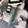 Pantalones vaqueros holgados de primavera para mujer 2023, nuevos pantalones de estilo coreano de cintura alta, versátiles, ajustados, de nueve puntos, rectos y rizados.