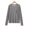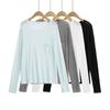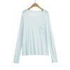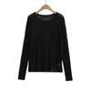 Principios de Primavera Estilo Francés Microtransparente Cuello Redondo Manga Larga Top Base Blusa Femenina Pura Delgada Protector Solar Camiseta Holgada Sentido de Alta Gama