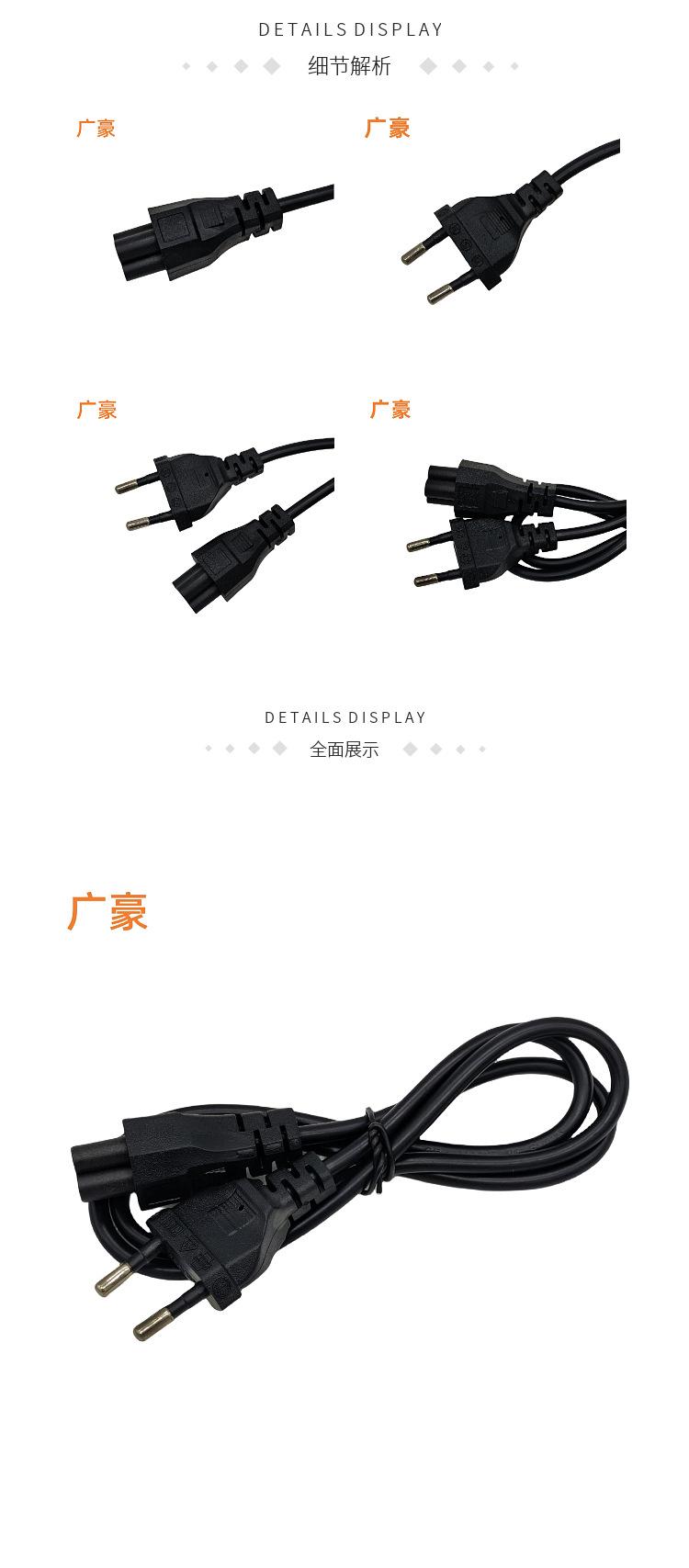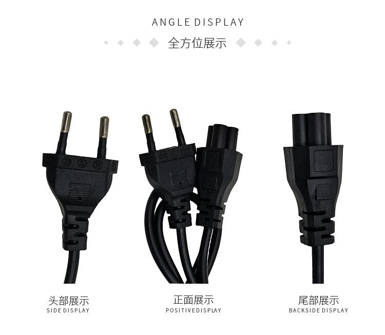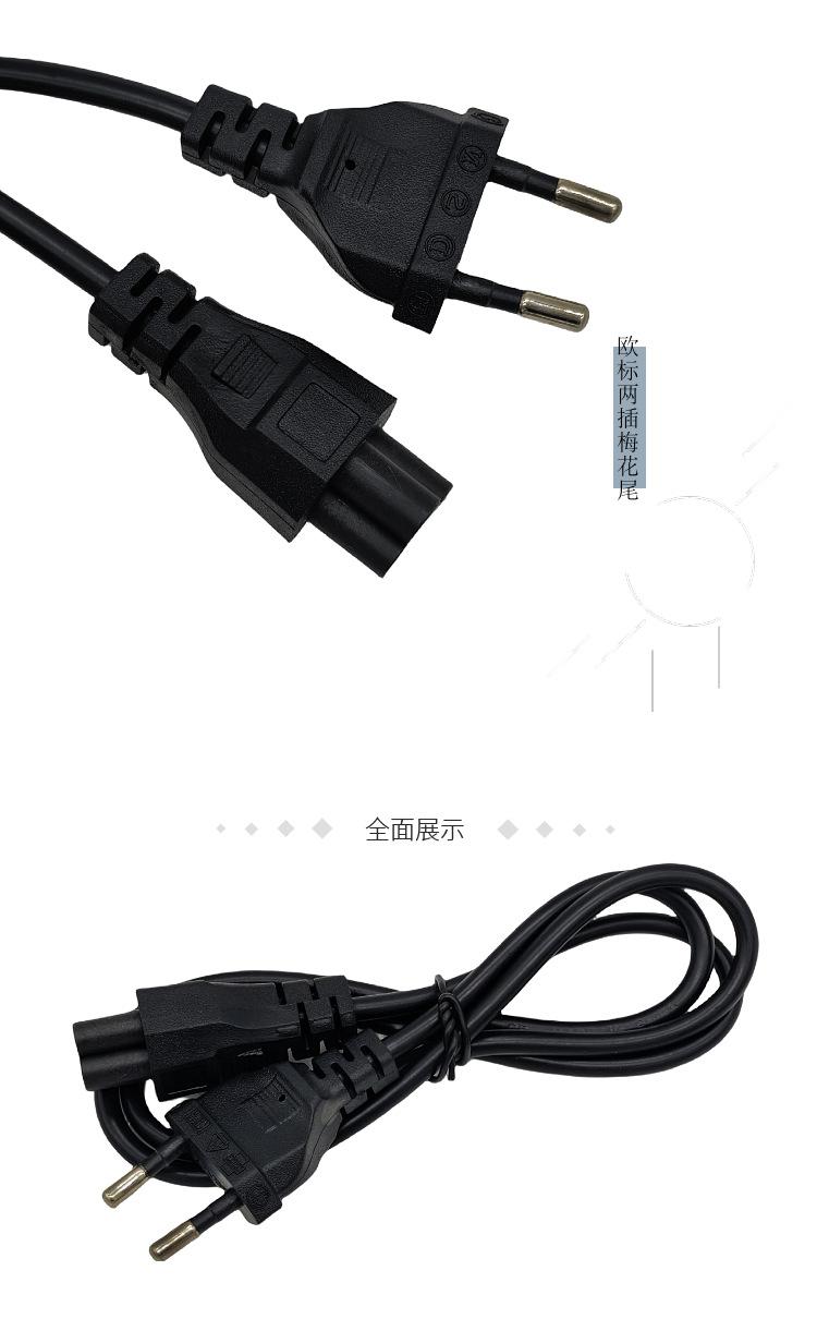 Adaptador para computadora portátil estándar europeo cola de flor de ciruelo dos clavijas redondas cable de alimentación estándar europeo de tres orificios 1.0 metros