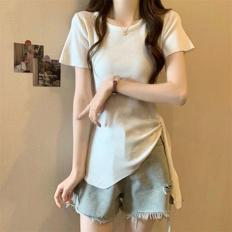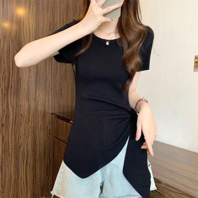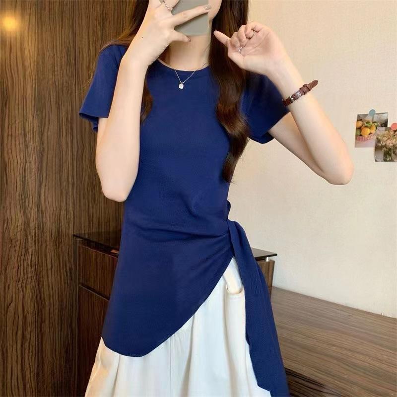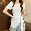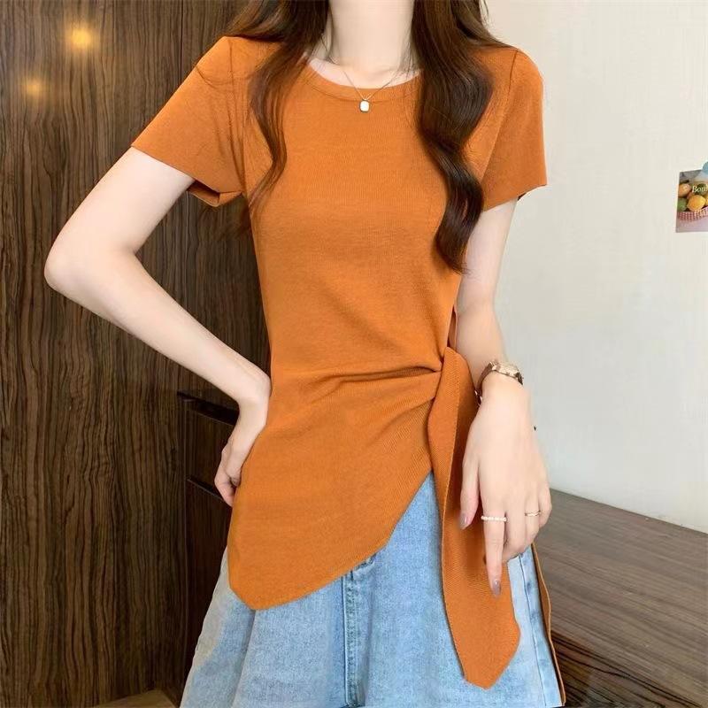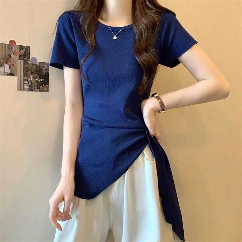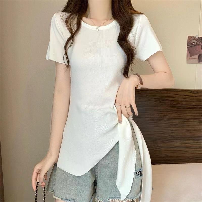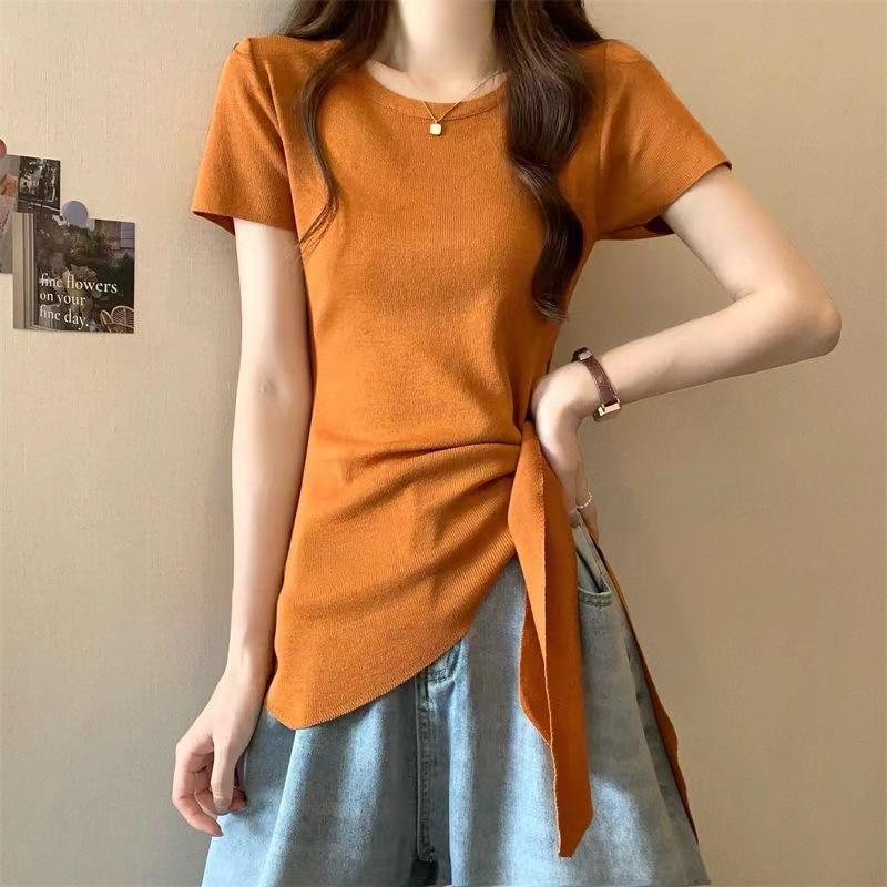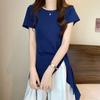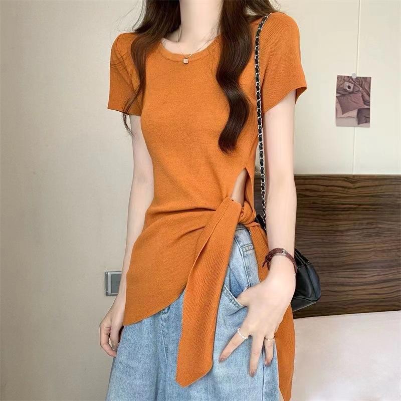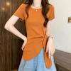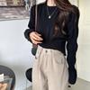 Suéter de Punto para Mujer Diseño de Color Sólido Estilo Coreano Abertura Cuello Redondo Verano Delgado Versátil Jersey Dulce