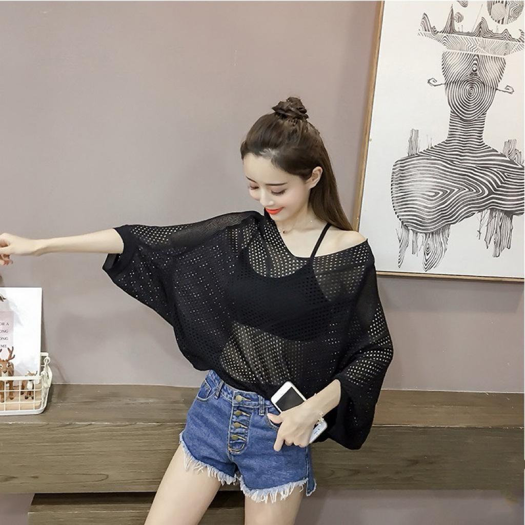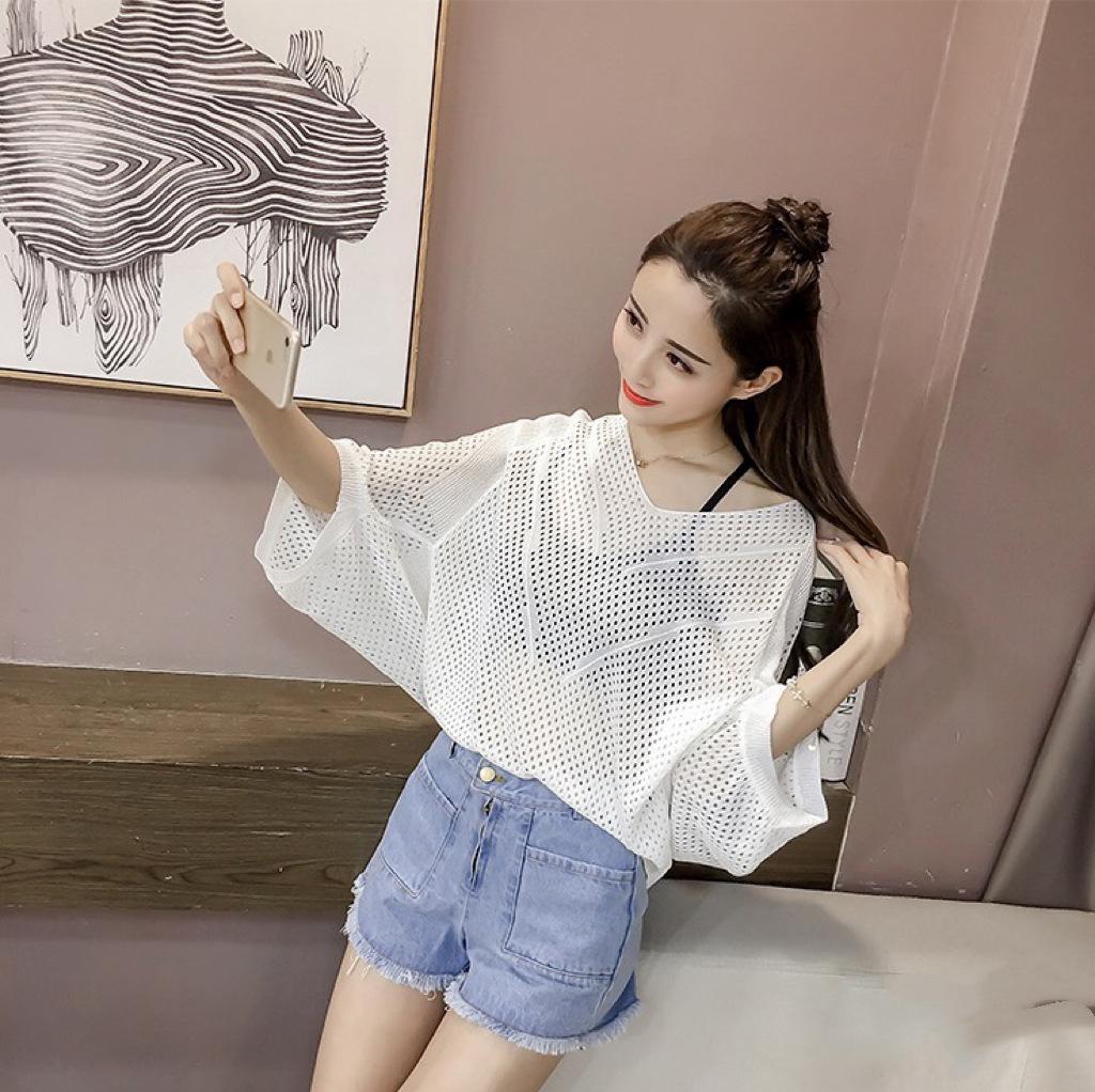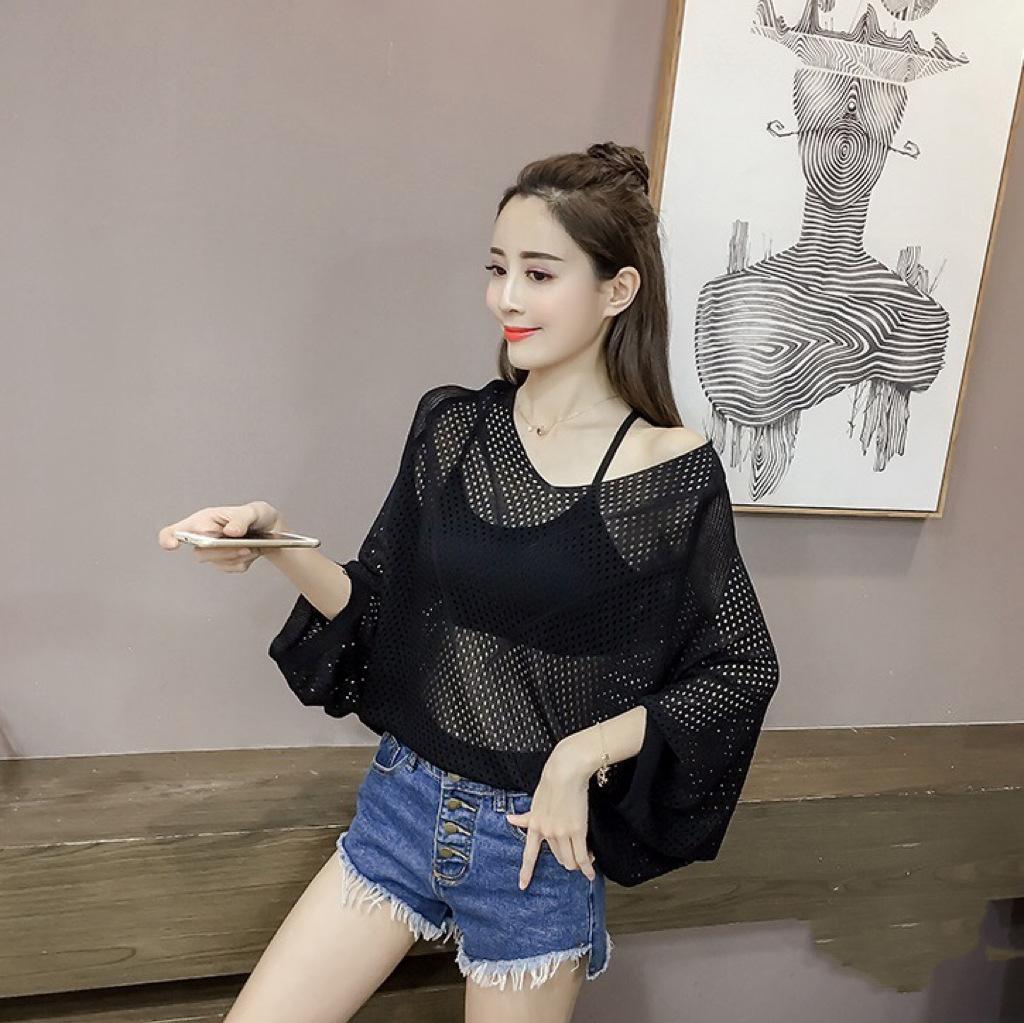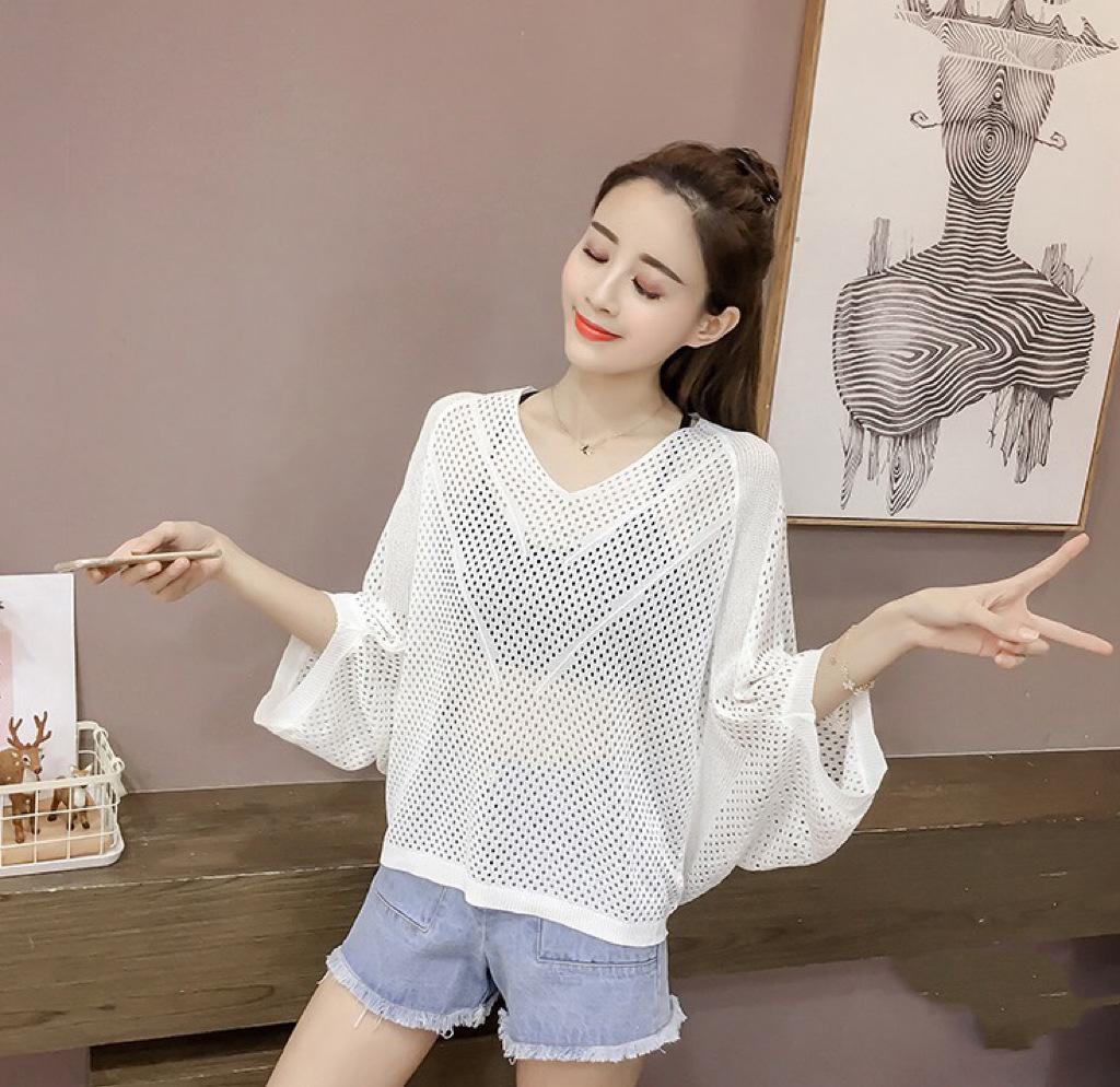 Blusa Hueca para Mujer 2026 Verano Nuevo Estilo Coreano Suelta Talla Grande Camisa Murciélago Tejido de Punto Versátil Top Delgado Moderno
