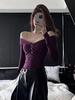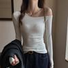 Camiseta Blanca con Hombros Descubiertos para Mujer Manga Larga Verano 2025 Nuevo Estilo Holgada Adelgazante Cubre Carne Hombros Descubiertos Top Chica Hot