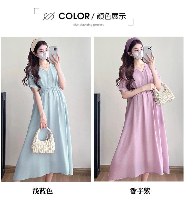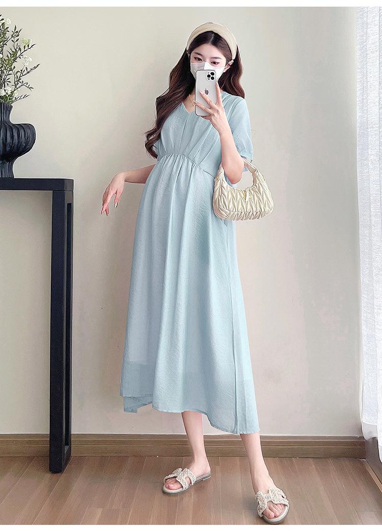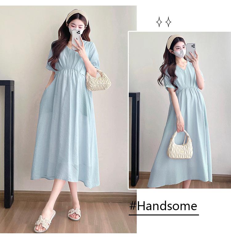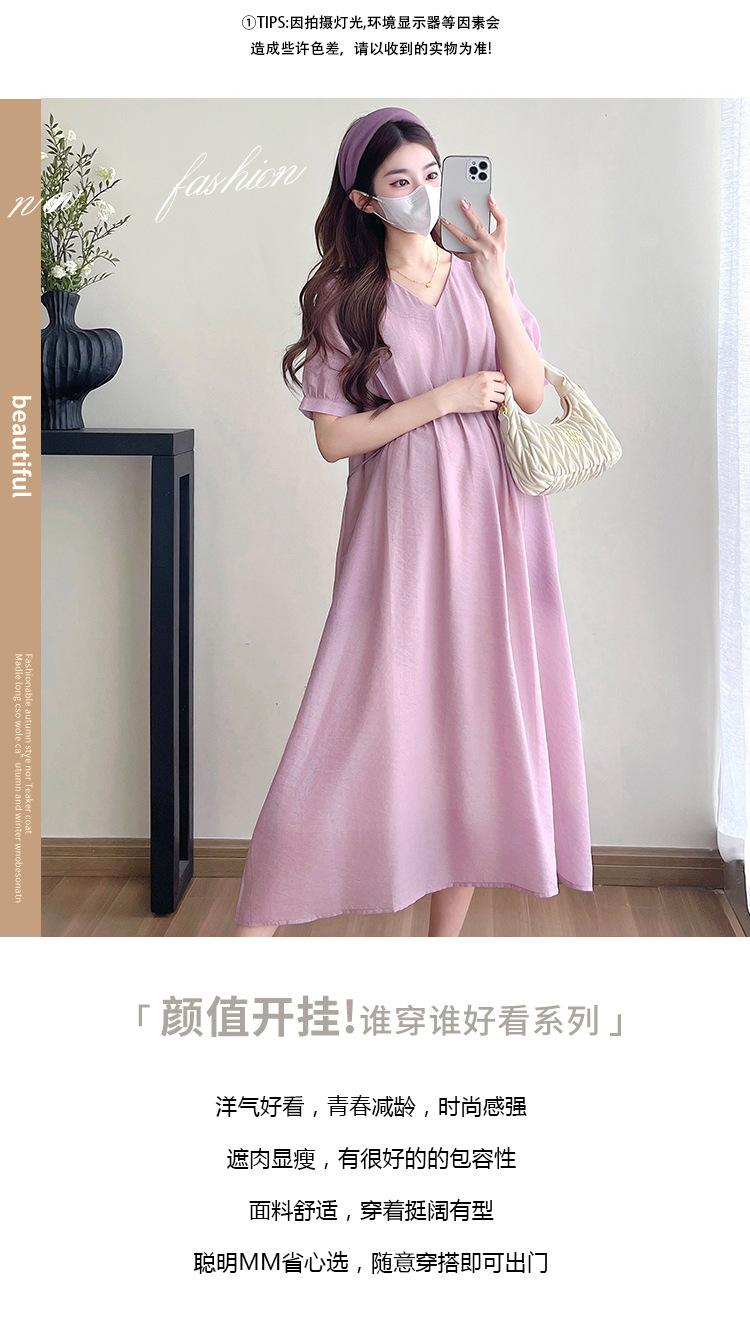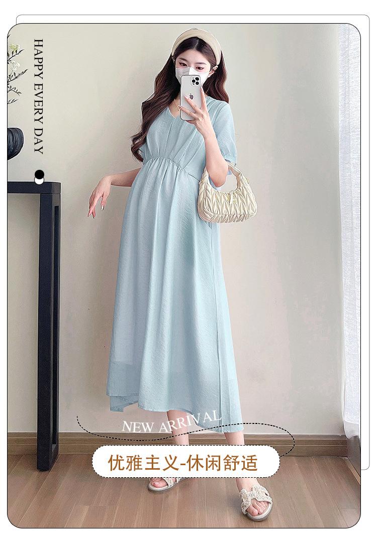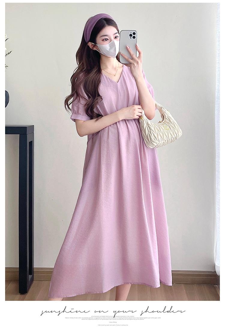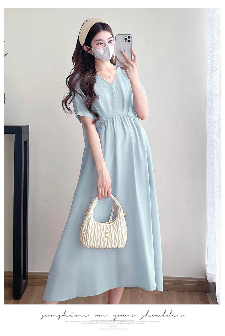 Maternidad 2025 Verano Nuevo Tencel Suelto Moda Manga Corta Cuello V Adelgazante Vestido Midi para Mujeres Embarazadas