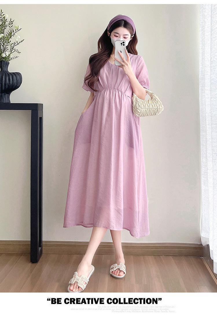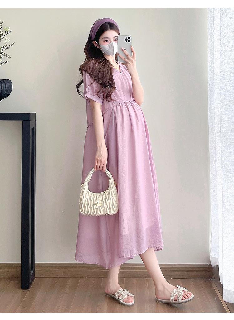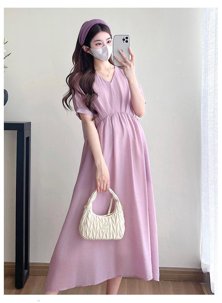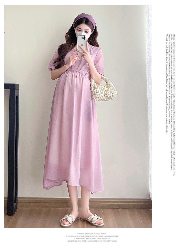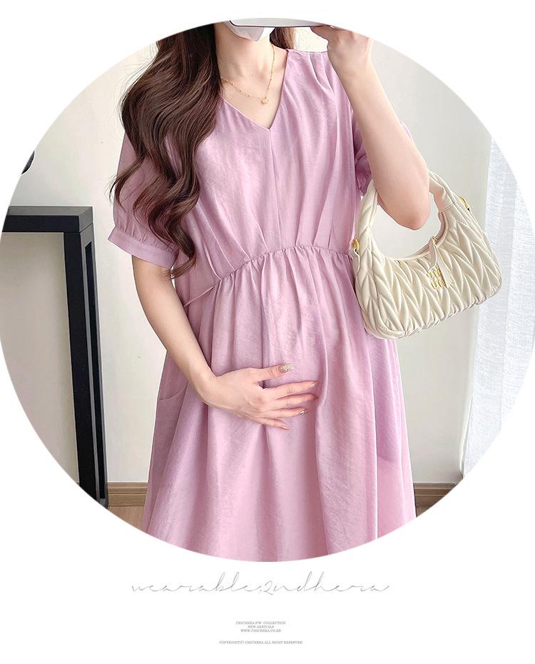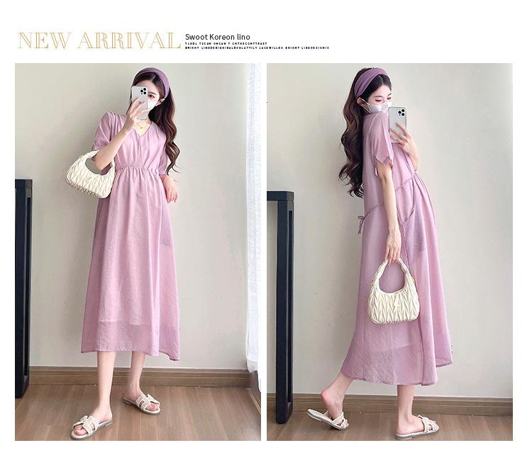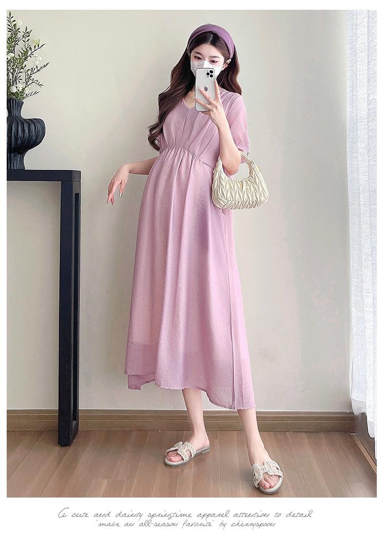 Maternidad 2025 Verano Nuevo Tencel Suelto Moda Manga Corta Cuello V Adelgazante Vestido Midi para Mujeres Embarazadas