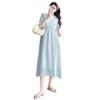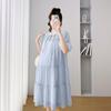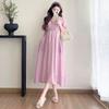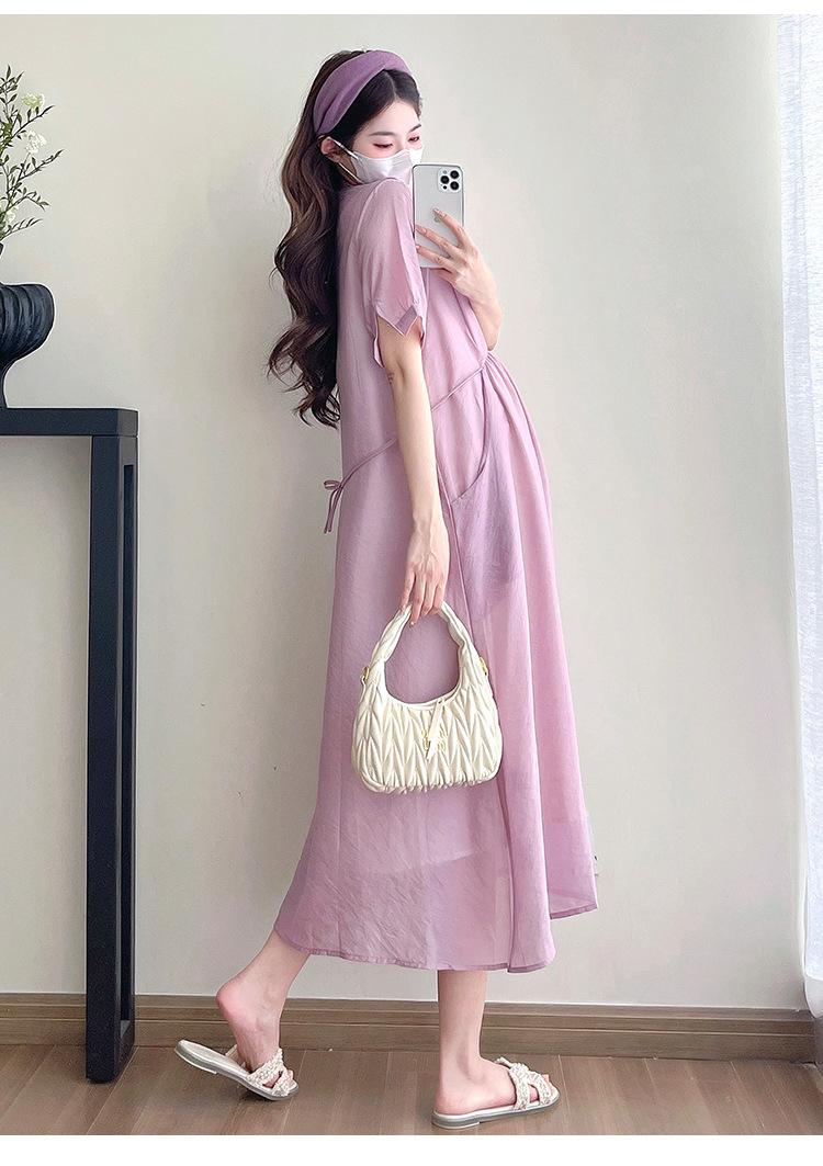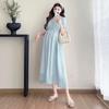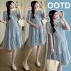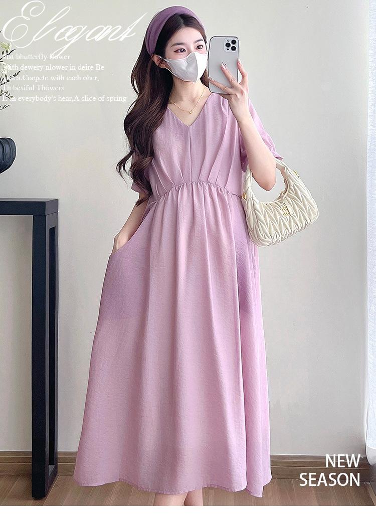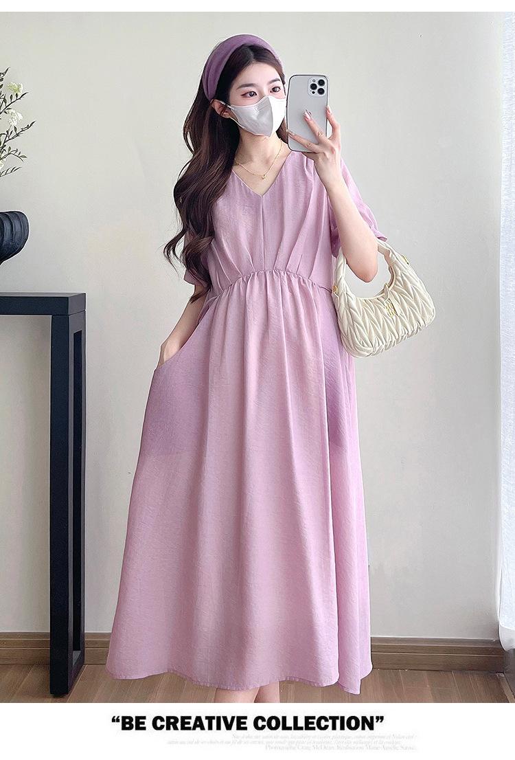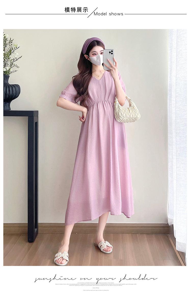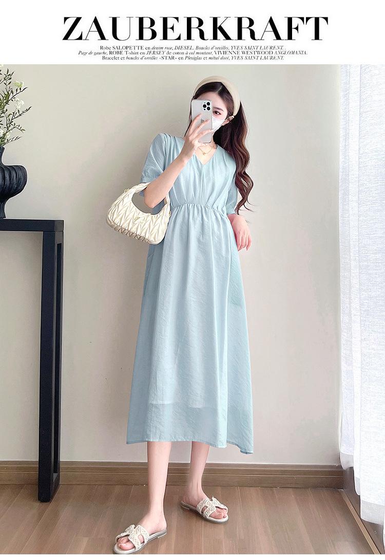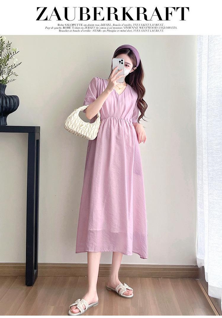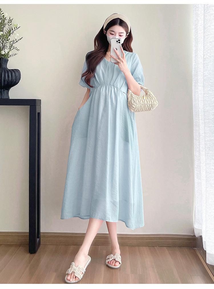 Maternidad 2025 Verano Nuevo Tencel Suelto Moda Manga Corta Cuello V Adelgazante Vestido Midi para Mujeres Embarazadas