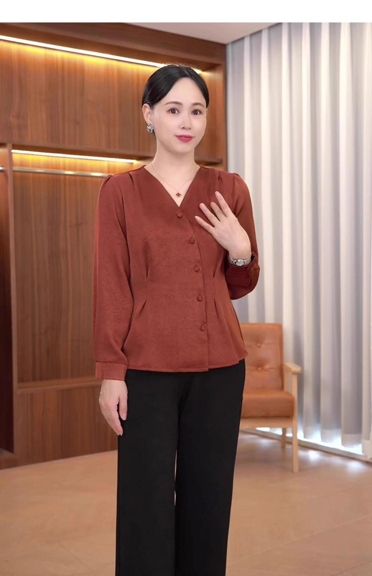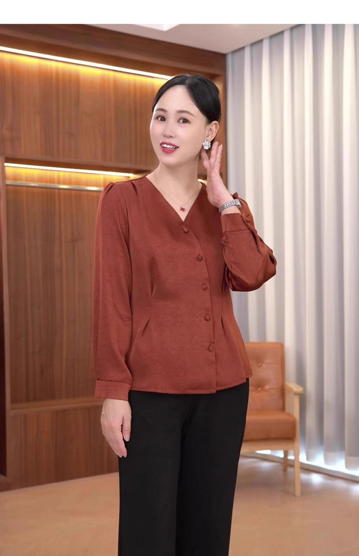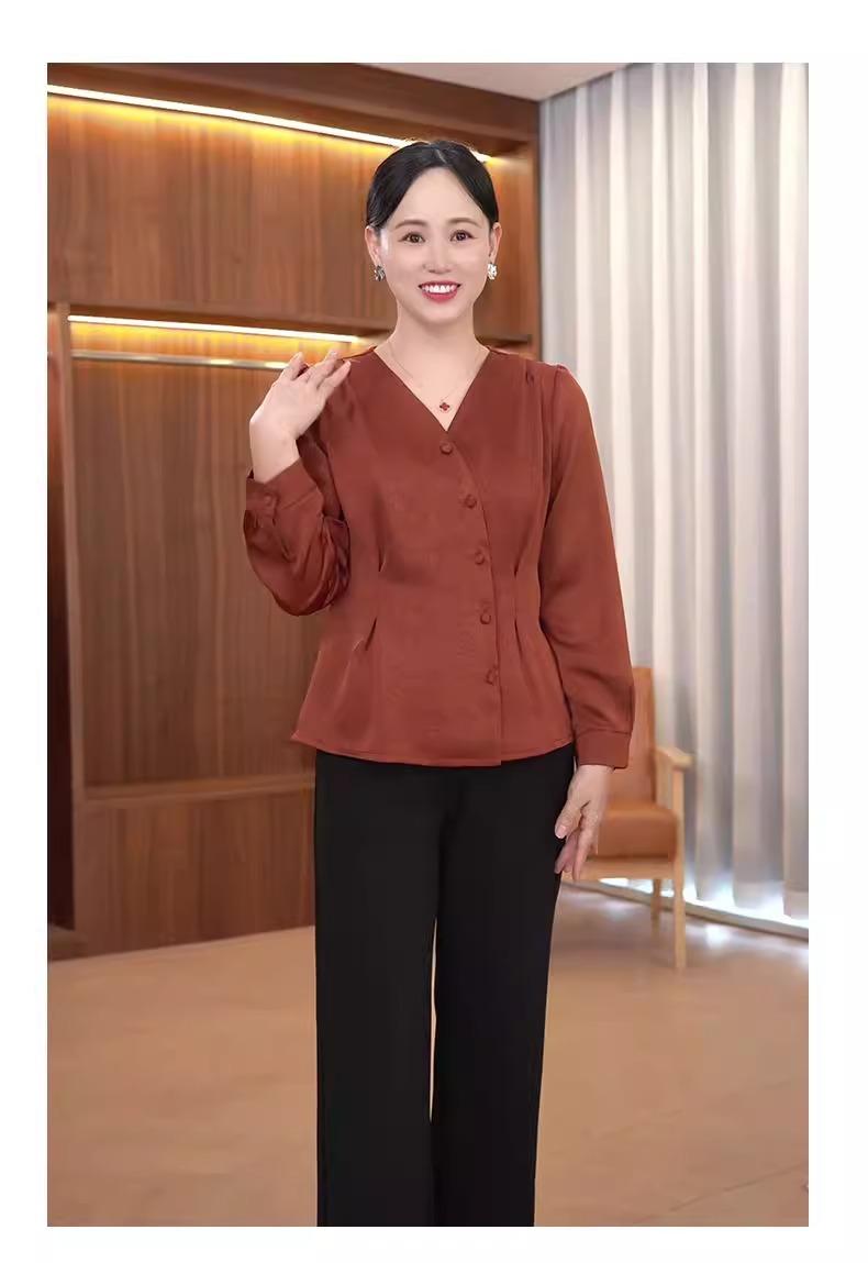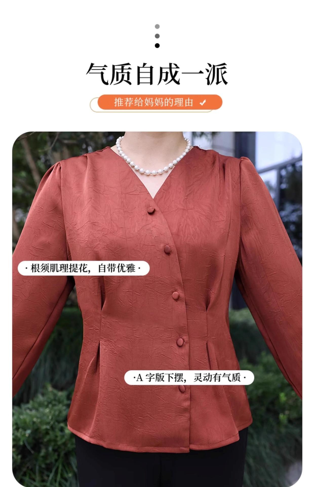 Madre de mediana edad moda primavera temperamento camisa pequeña 2025 nuevo damas de mediana edad y mayores primavera y otoño esposa rica top versátil